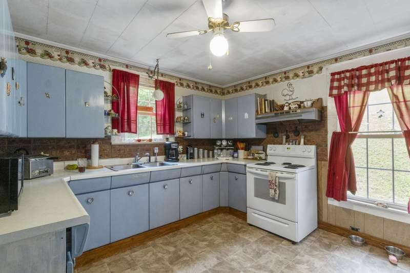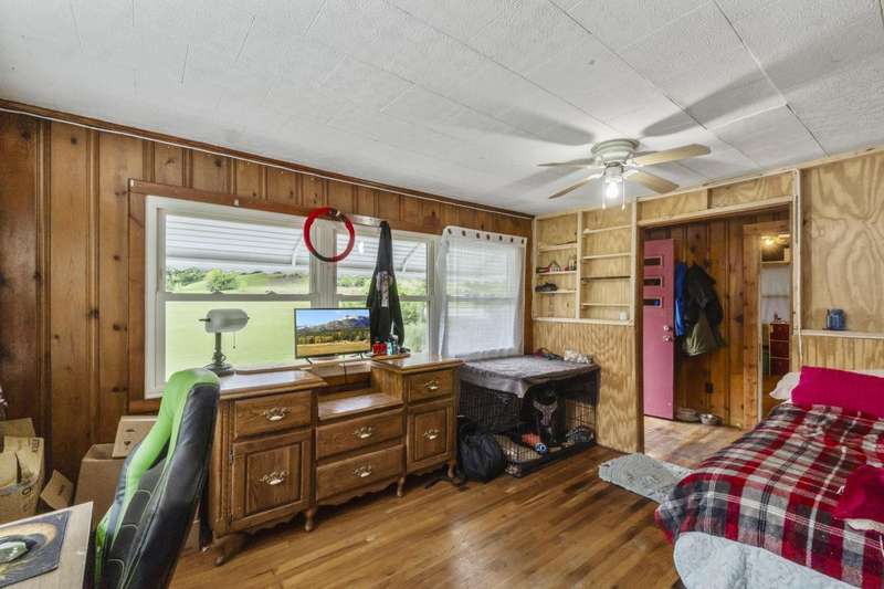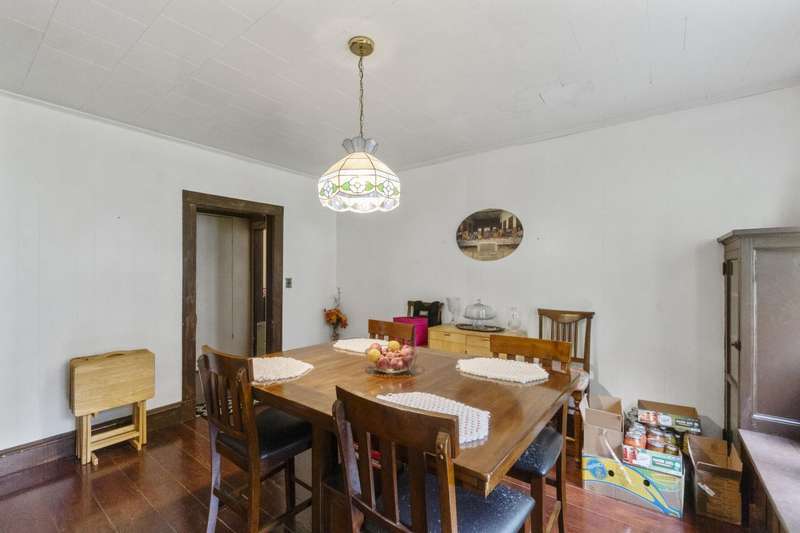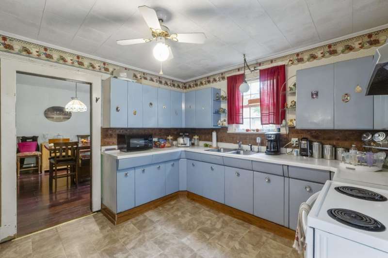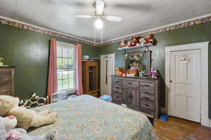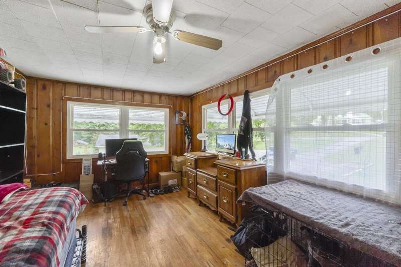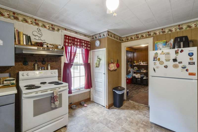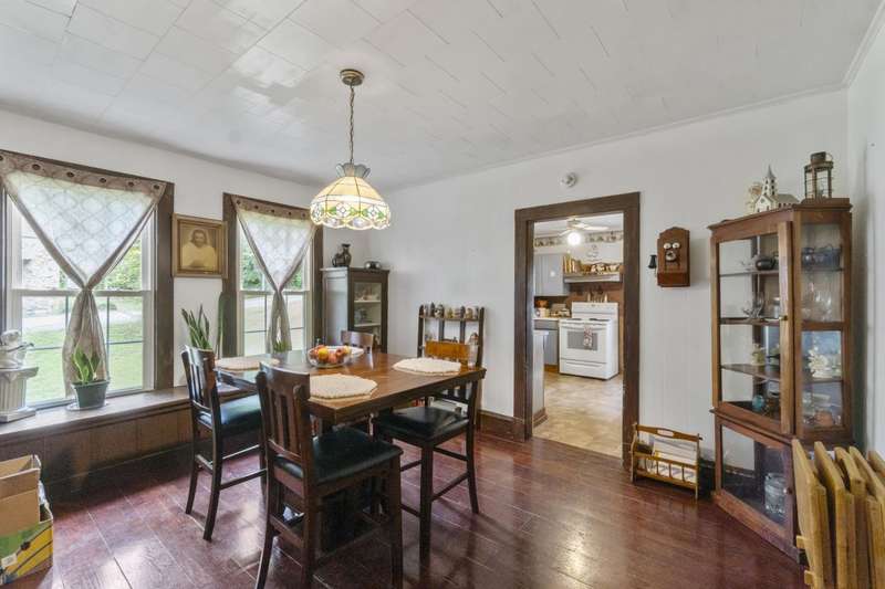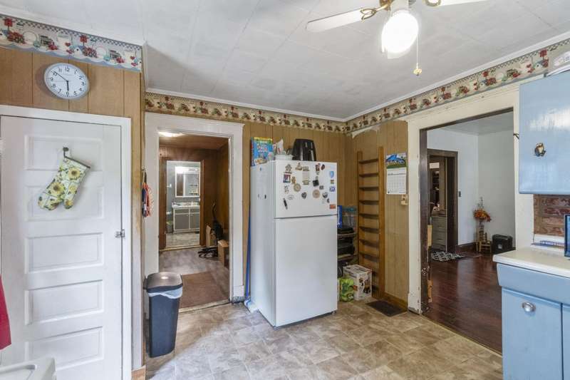 Welcome Home!featuring 10 foot ceilings, original hardwood, original kitchen cabinets this home is ready for its new owner! The roof is approximately 12 years old, HVAC was replaced in 2021 with a 10 year warranty. This 3 bedroom home is currently being used as a 4 bedroom with ease. Large back deck and lots of room for parking! This home sits on almost an acre lot- could make a great rental property as well!