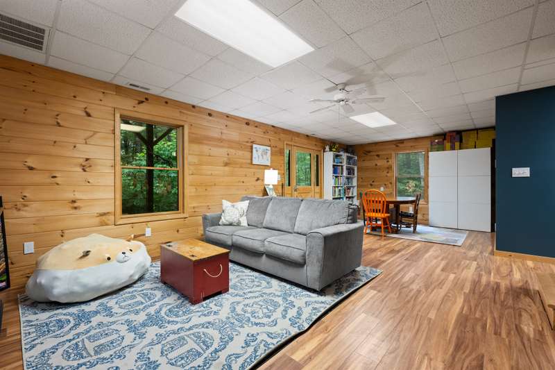 Immerse yourself in the beauty of this remarkable home, ideally situated on a generous 5-acre unrestricted tract in a tranquil and secluded neighborhood surrounded by lush woods. A picturesque creek gently winds through the property, enhancing its serene and natural allure. This exceptional location is adjacent to Blackburn Vannoy Farm, a preserved 369-acre expanse safeguarded by the Blue Ridge Conservancy. Residents enjoy unique access to scenic hiking trails that highlight the area's rich history, including its original logging routes. Step inside this inviting home, where an open-concept layout harmoniously blends living spaces, creating a warm and welcoming atmosphere. Beautiful hardwood flooring flows seamlessly throughout, adding an elegant touch to the interior. The home features a spacious two-car garage for convenient storage and protection of vehicles. Gather around the cozy, wood-burning freestanding fireplace on cooler evenings to create cherished memories with family and friends. With four generously sized bedrooms and two family rooms, this layout is ideal for both everyday living and hosting guests. The kitchen serves as a charming focal point, boasting maple cabinets that lend a touch of rustic elegance, granite countertops, and stainless steel appliances. The primary bath has been tastefully remodeled, showcasing a sleek modern shower, stylish tile flooring, and upgraded fixtures that enhance both functionality and aesthetics. Additional enhancements to the property include brand-new luxury vinyl tile (LVT) flooring in the basement, ensuring comfort and practicality. For those needing extra storage, an outbuilding equipped with electricity provides ample space for tools, outdoor equipment, or hobby projects. Outdoor enthusiasts will appreciate the expansive covered decks that invite relaxation and entertaining amid nature. Nature lovers will enjoy the numerous hiking opportunities and breathtaking mountain vistas surrounding the property, providing a perfect blend of outdoor recreation and peaceful living. Despite its serene setting, essential services are conveniently located just a short distance away. The vibrant town of West Jefferson is a mere 10-minute drive way, offering a variety of shopping options, healthcare services, and local dining experiences. Boone, just 20 minutes away, adds even more activities, including skiing, charming restaurants, and picturesque hiking trails. Furthermore, the proximity to Appalachian State University enhances the location's attractiveness, making it ideal for families, faculty, or anyone who appreciates a vibrant community. This is an opportunity you won't want to miss?envision the extraordinary life you can create in this beautiful and inviting setting!
