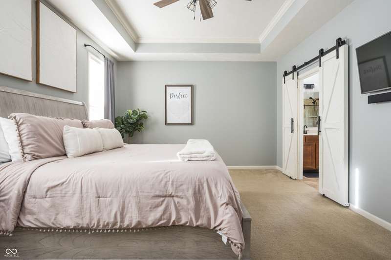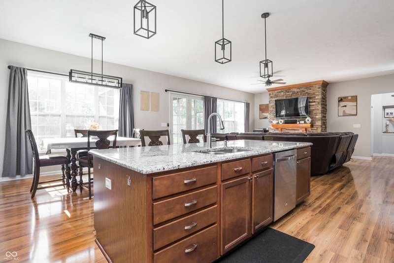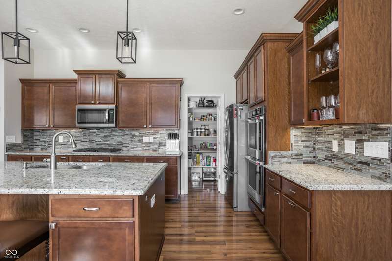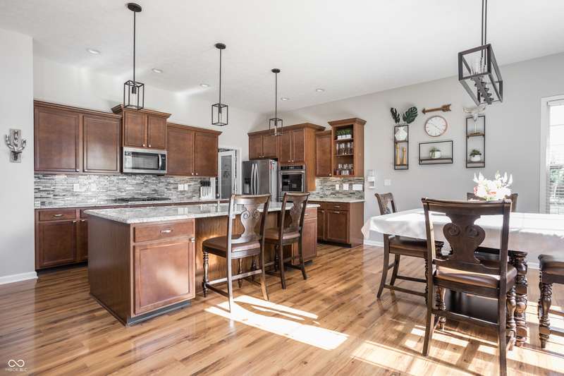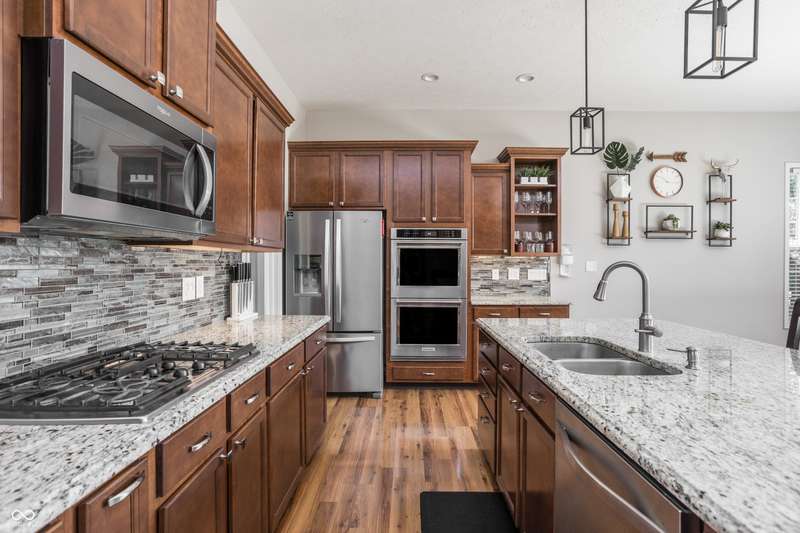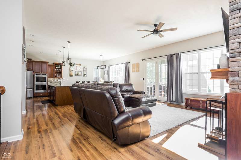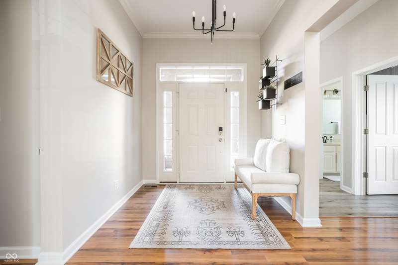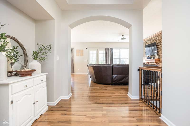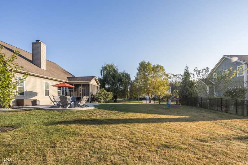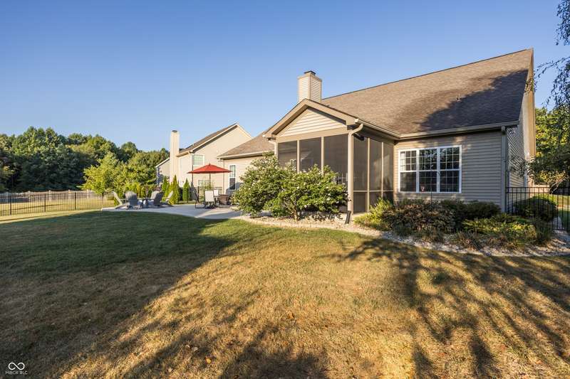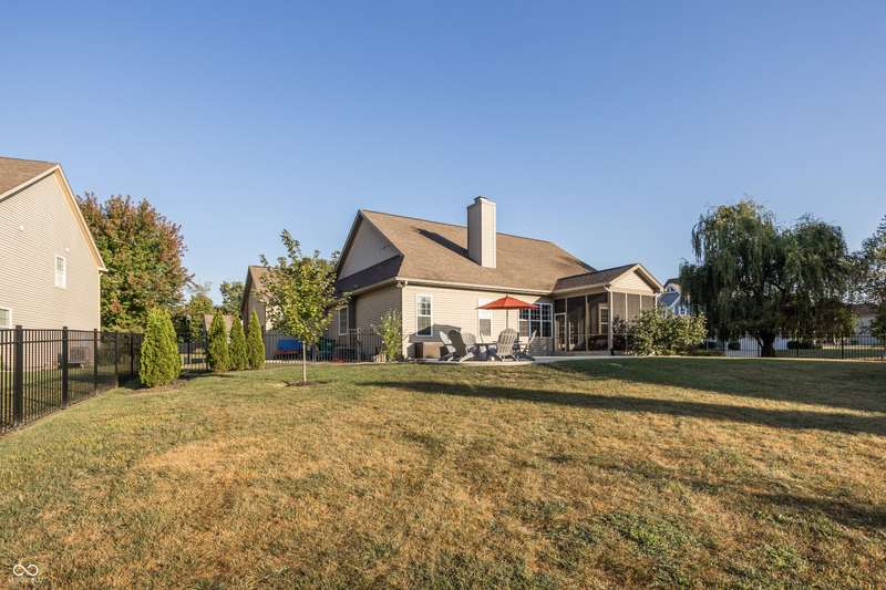 Welcome home to your beautifully maintained ranch with a finished basement in the highly sought-after Avon School District! With 4 bedrooms, 3.5 baths, and a 3.5 car garage (w 12 foot ceilings!), this home has everything you need and more! From the moment you step inside, thoughtful details stand out - 10 foot ceilings on the main floor, arched doorways, a spacious living room with a cozy fireplace, and an open-concept layout designed for today's lifestyle. The primary suite is tucked away on one side of the home for privacy, while two additional bedrooms and a full bath are set on the other, creating the perfect balance of connection and comfort. The kitchen features granite countertops, custom cabinetry, and a walk-in pantry with built-in shelving, all flowing seamlessly into the dining and living spaces for easy entertaining. The primary suite offers a true retreat with a soaking tub, double vanities, a large tile shower, and a walk-in closet with direct access to the laundry room. Everyday living is simplified with a 2nd entry to the laundry room from the mudroom & walk-in closets in every bedroom. Downstairs, the finished basement expands your living space with a private bedroom, full bath, home gym, office, and an open rec area that works perfectly as a playroom, game room, theater, or spot for entertaining. Outdoors, you'll enjoy a screened-in porch, wrought iron fenced in backyard, and custom concrete patio, all surrounded by mature landscaping that creates a private, peaceful setting. Enjoy the neighborhood pool, playground, and tree-lined walking paths! Just minutes away are Washington Township Park and Avon Town Hall Park, where you'll find over 350 acres of trails, playgrounds, splash pads, fishing ponds, and year-round activities for all ages. Award-winning Avon schools are only minutes away. With easy access to downtown Indianapolis, this home offers comfort convenience and lifestyle!