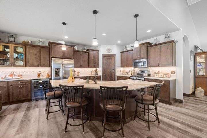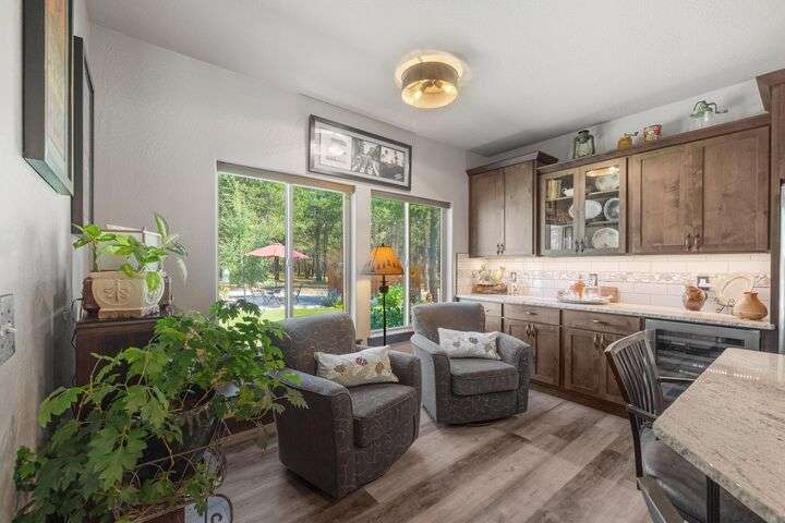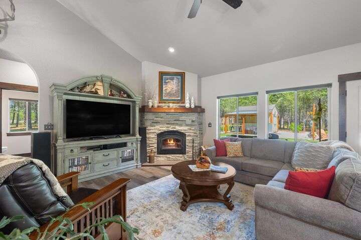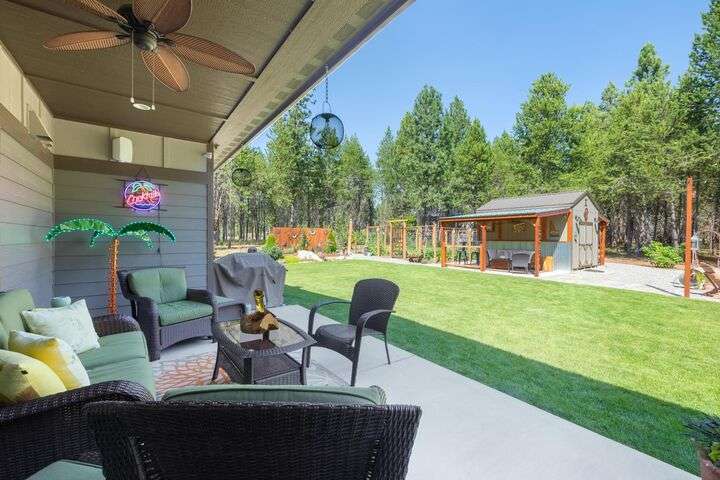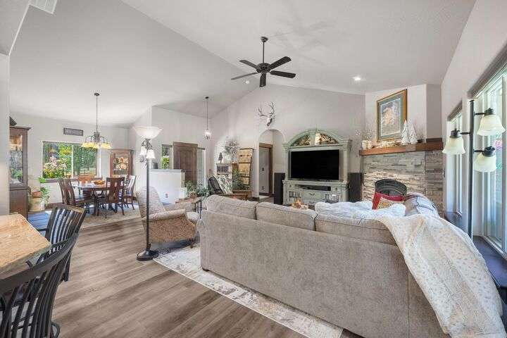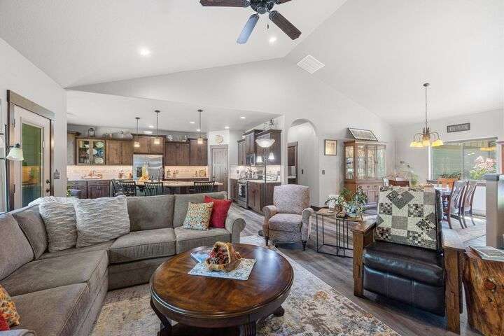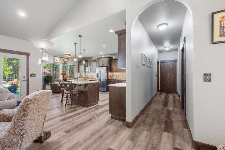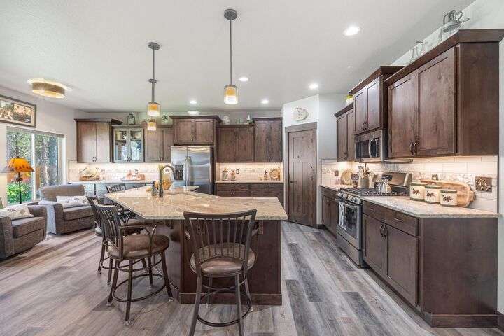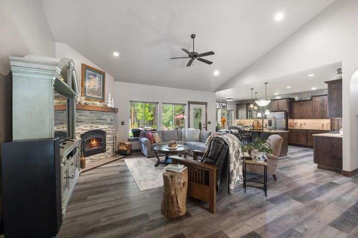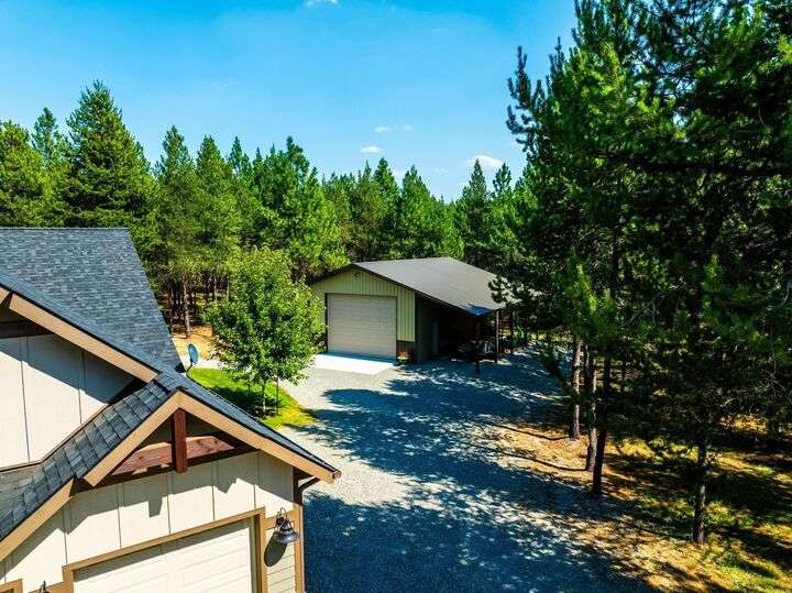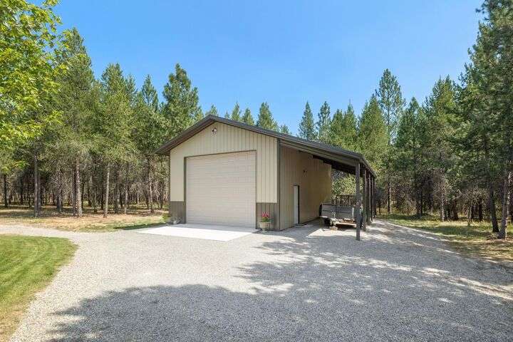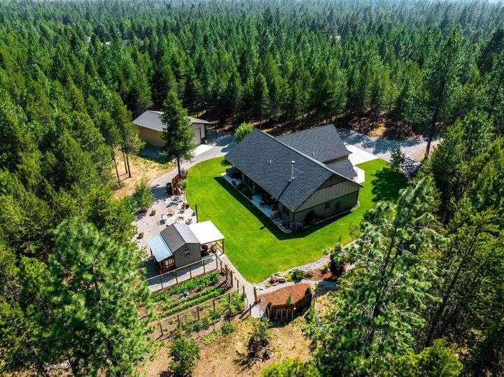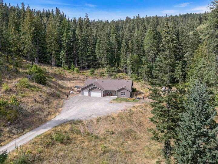 Welcome to Lone Mountain Estates, an exclusive community with 5-acre lots, paved roads, and easy access to Coeur d'Alene, Rathdrum, and Spirit Lake. This 2,359 sq ft single level home with bonus room features an open concept, wood burning fireplace, custom kitchen with stainless gas appliances, wine fridge, granite surfaces and a walk-in pantry. The luxurious master suite offers covered patio access to your hot tub, a spacious walk-in closet, separate vanities, soaking tub, and a beautiful walk-in shower. Additional highlights include vaulted ceilings, covered patio, a versatile bonus/media room and a mudroom/laundry room with sink. Finally, a large 24x40 shop with 12x40 lean too & 14' doors & RV parking complete this residence. The property grounds are manicured with outdoor living space, a luscious fenced in 20’x32’ garden w/irrigation, fire pit, storage shed and barbecue area, making it an entertainers dream. This exclusive location has a private drive offering solitude like no other in the neighborhood.