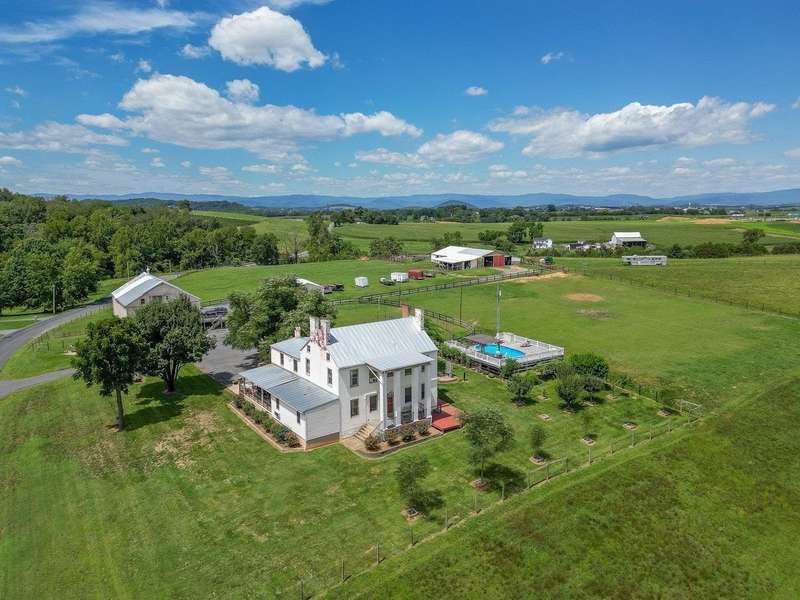UNIQUE HISTORIC PROPERTY! 22-acre farm located across the road from North River, minutes from Rt 11 and I-81. 5-bedroom, 4-bathroom home, originally built in 1780, features unique details: German-crafted mantle, 18-inch thick exterior walls, detailed finishes. Expansions in 1850 and 1998 blend seamlessly with the home's historic charm. Enjoy river views from the front porch, a ground-level primary suite with a step-in jetted tub, and a second-level primary with custom pine finishes. A finished attic offers additional flexible space, while the basement, with plumbing for a bathroom, could serve as a family or game room. The bank barn provides two apartments (currently under renovation) with ample storage and workshop space, plus five stalls. A separate horse barn features 8 stalls, wash bay, tack room, and ample hay storage. Four hog paddocks, fenced riding trail, and riding ring complete the equestrian facilities. Additional features include a 15x32 ft above-ground pool with a deck and pergola, various fruit trees, and several outbuildings, including a 12 x 16 storage building. A variety of heating and cooling options ensure comfort year-round. The roof was replaced in 2023. ENDLESS POSSIBILITIES!