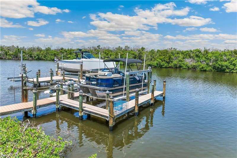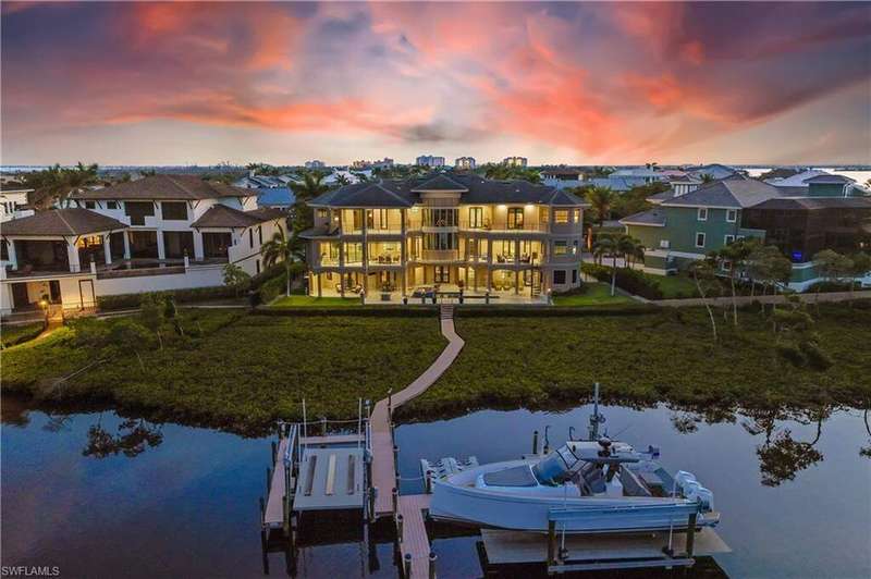 WATERFRONT LIVING AT ITS FINEST....Masterful design & coastal contemporary are uniquely embodied in this luxurious estate on a private island in Jonathan Harbour. Spanning over 13,000 SF, this magnificent waterfront residence is a haven for gazing at bay front views from multiple vantage points. Whether its the gourmet kitchen featuring premium custom cabinetry, quartz counters, large peninsula island breakfast bar, walk-in hidden pantry and stainless appliances; or the two-story sophisticated dining room with volume ceilings and windows; or the cozy great room allowing you to entertain in style while guests spill out to the outdoor living area with built-in BBQ grill + gas fireplace; this 5B/6.5BA home defines true modern day elegance. The fully furnished, multi-level home includes an elevator; exercise room; den; home office; extra large laundry/utility room; pool; spa; gas fire pit; oversized 5-car garage and a non-conforming lower level with 2 bedrooms, full bath, full size kitchen, great room and an impressive full size bar -- allowing space and privacy for the long-term out of town guests. The primary suite features breathtaking sunrise views on its large private balcony, opulent his/her en-suites and dual custom closets. Additional private guest suites - all include en-suite baths, generous closets and bay views as well. Nestled along the serene shores of Connie Mack Island, this stunning coastal retreat comes with two large boat slips w/ lifts (27k lb + 10k lb) with direct access to the Bay and Gulf in minutes. Truly a boater's paradise perfectly situated near Sanibel and Captiva Island. If you are pursuing the ultimate Southwest Florida Coastal Lifestyle....we invite you to view this exclusive waterfront property.