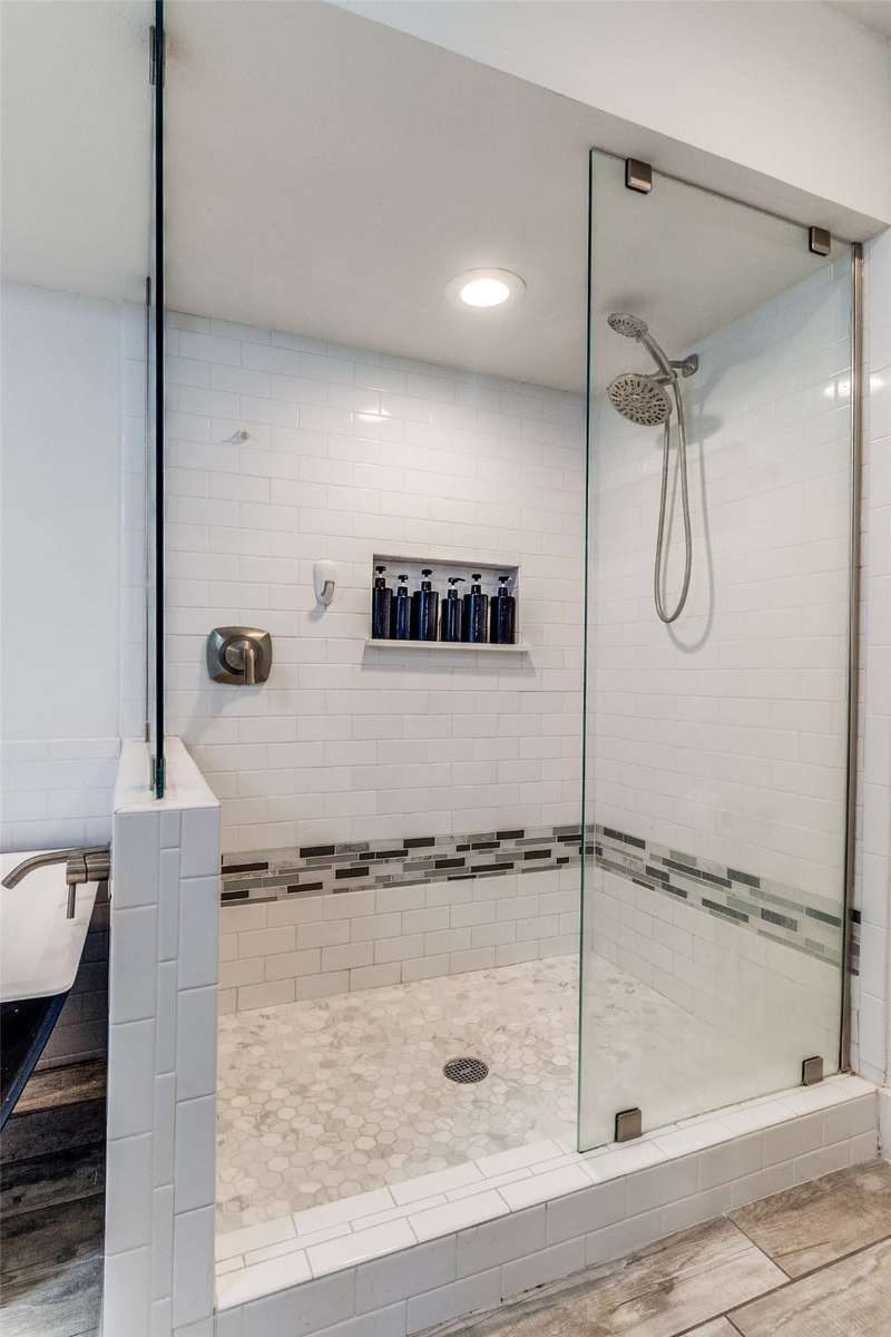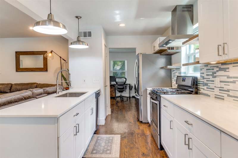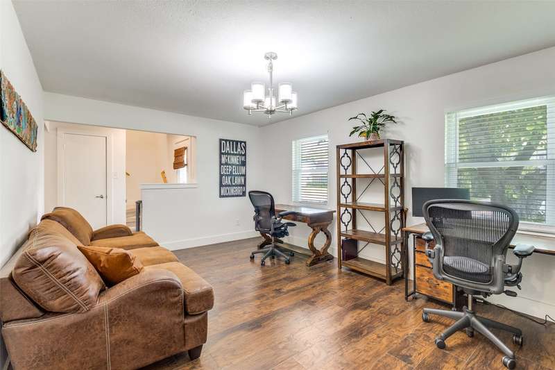 Updated, move-in ready home located just five minutes from the Dallas Athletic Club and neighborhood parks. Off the covered porch is an entry with adjacent office and living room. The office has room for multiple work spaces and is a flexible space that could also serve as a den or library. The living room boasts a fireplace with gas logs and opens to the well-appointed kitchen. Kitchen amenities include a gas range, dishwasher, pantry, breakfast bar, quartz countertops, and an adjoining dining room which overlooks the backyard oasis. The primary suite is located downstairs and features a walk-in closet and an ensuite bath with soaking tub, separate shower, and dual sinks. Rounding out the downstairs are a full-size utility room and a powder bath. Upstairs are three bedrooms which share a hall bath with dual sinks and a shower-tub combo. The backyard offers a covered patio, sparkling pool (including a robotic pool vacuum), pool decking with room for seating, and a grassy side yard. Also outside is a 12 x 20 shed with electricity (30 AMP power) that includes overhead storage, workshop space, and an area laid out for a gym with raised flooring. Carport with room for two cars plus a driveway. Located near 635 and State Hwy 78 for convenient access to downtown Dallas and White Rock Lake.