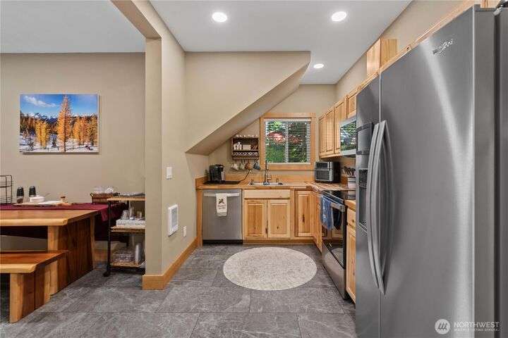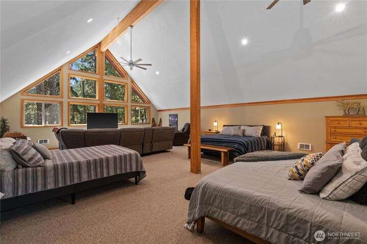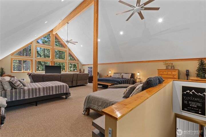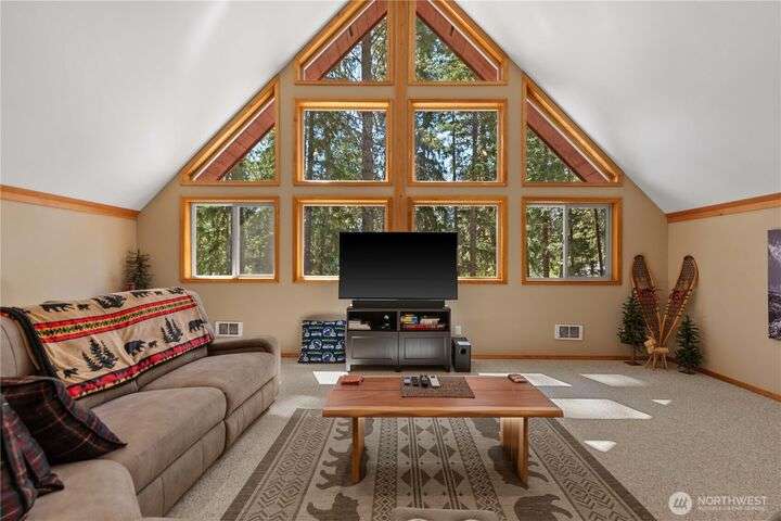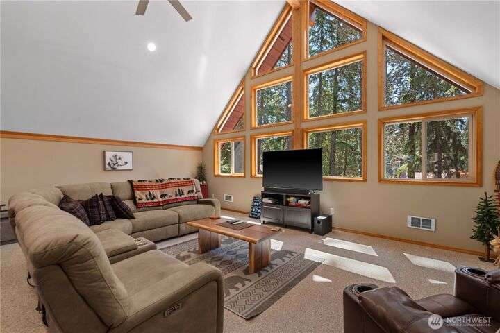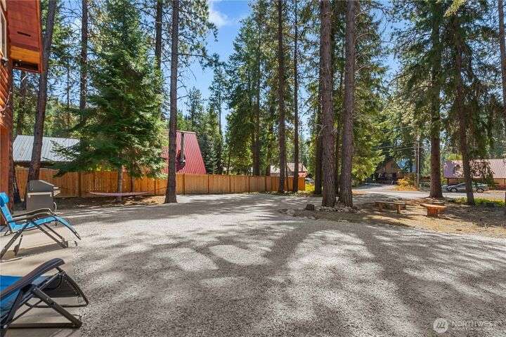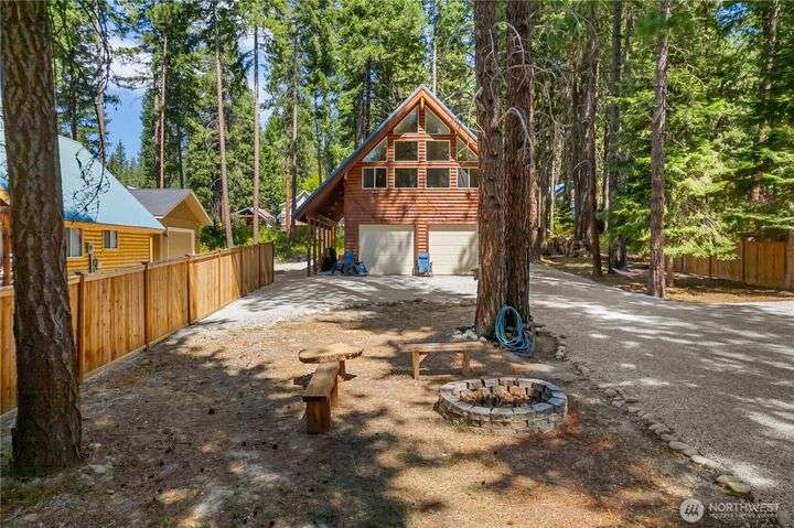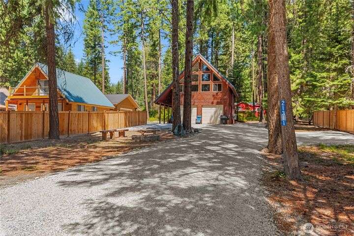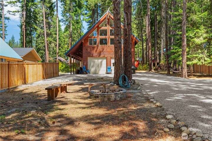 Don’t miss this fully furnished A-frame cabin in the desirable Ponderosa Community along the Wenatchee River. Built in 2006 and beautifully maintained, this home features soaring ceilings, floor-to-ceiling windows, and a flexible open floor plan—perfect for entertaining or accommodating guests. Beautifully remodeled fully furnished kitchen. Set on a spacious 0.26+ acre lot with RV parking and utility hookups. Community amenities include a clubhouse, outdoor pool, park, sports court, and river access. A perfect place to float the river or enjoy the nearby miles of trails on your ATV's. A wonderful opportunity for a primary residence, vacation home, or peaceful retreat in the mountains. Don't miss this