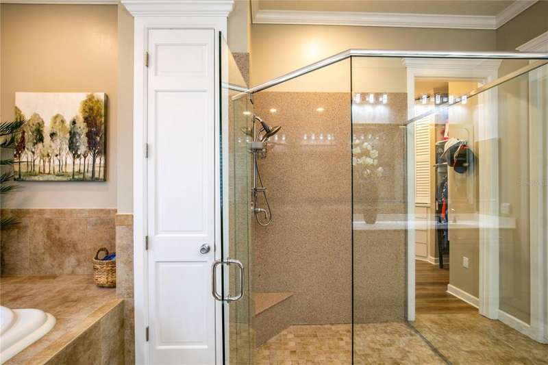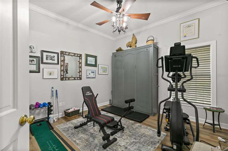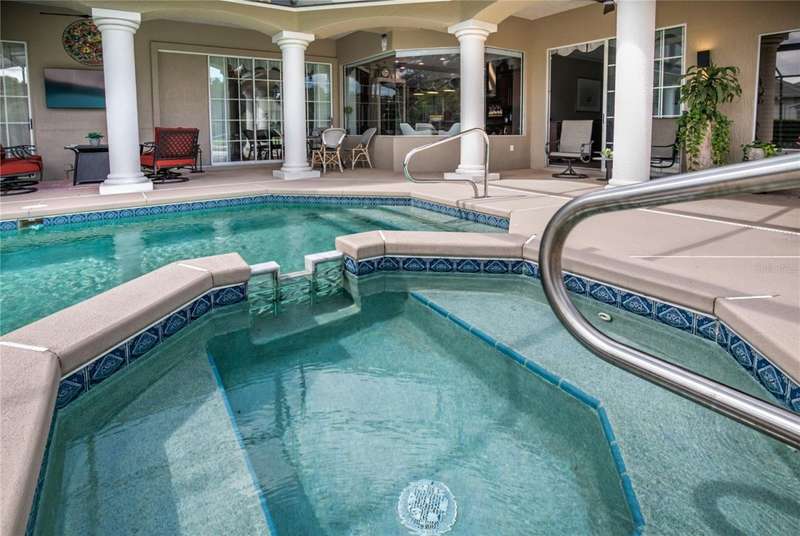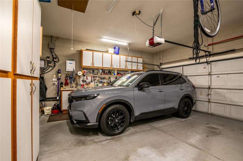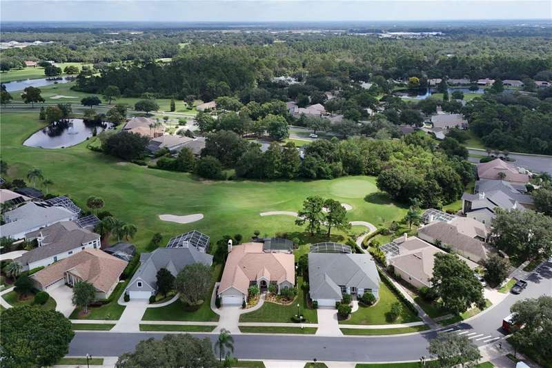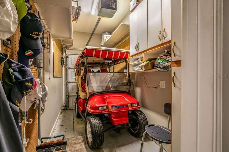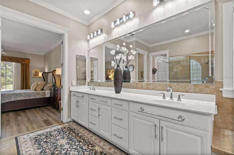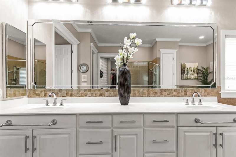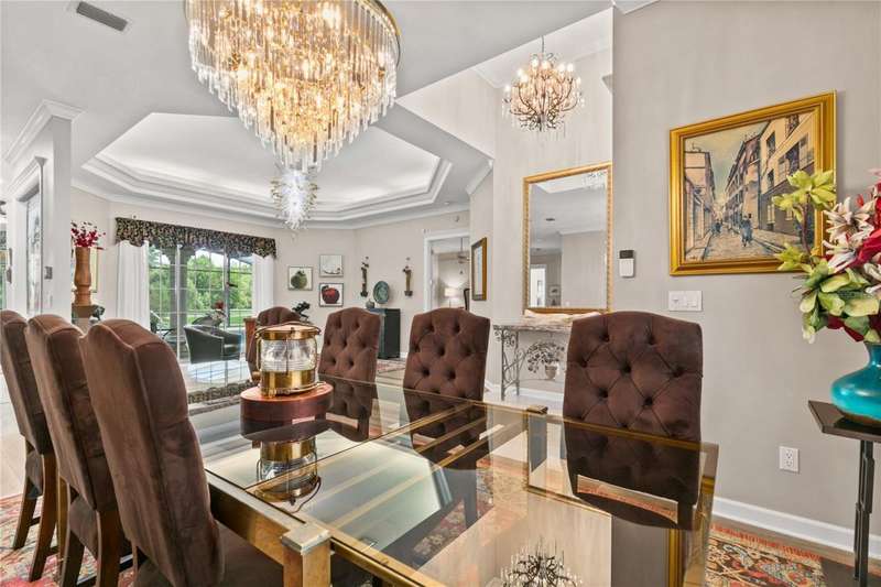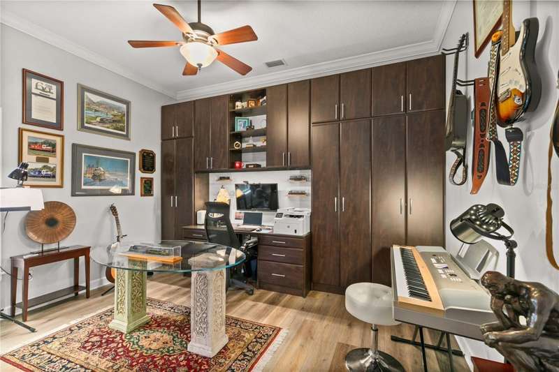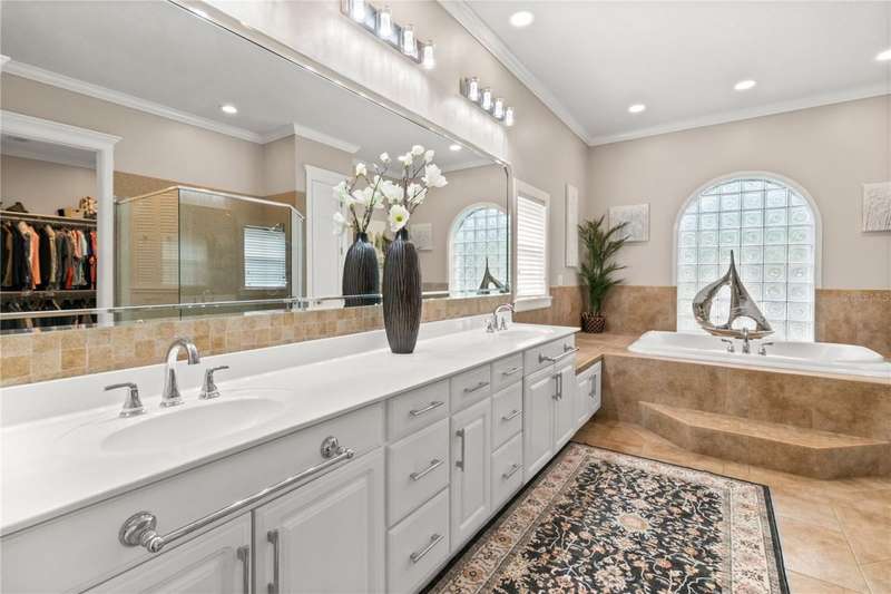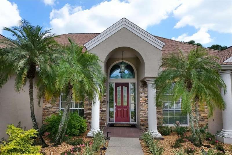 Welcome to an exceptional home in the Country Club of Mount Dora, set directly on the scenic second green with breathtaking golf course views. Designed with both comfort and sophistication in mind, this three-bedroom, two-and-a-half-bath residence has been thoughtfully updated and meticulously maintained, offering over 2,500 square feet of inviting living space.The primary suite is a true sanctuary, featuring a tray ceiling, sliding doors to the pool, a luxurious bath with a jetted soaking tub, an oversized walk-in shower, and a custom-designed closet with built-ins. The gourmet kitchen is a standout, complete with Sub-Zero refrigerator and freezer, KitchenAid ice maker, new Bosch dishwasher, granite counters, upgraded backsplash, and a built-in wine cooler. Just steps away, the family room with its fireplace and expansive windows creates a warm, light-filled gathering space.This home blends timeless elegance with modern enhancements, including luxury vinyl flooring, tall interior doors, crown molding, and striking new lighting-such as a dramatic Chihuly chandelier in the living room and a sparkling crystal fixture in the dining area. A custom office with floor-to-ceiling cabinetry and a built-in desk provides an ideal workspace, while the addition of a Murphy bed wall unit offers versatility for guests.Outdoor living is at its finest here. The heated saltwater pool and spa is enclosed within a refreshed screened lanai, accented by a new fountain and an epoxy-coated deck. The surrounding landscape has been completely redesigned, creating a lush and private retreat for relaxation and entertaining.Practical updates bring peace of mind, including a scheduled installation of a new architectural shingle roof in October 2025, leveled driveway and sidewalks, new plantation shutters and window coverings, and updated light fixtures. A two-car garage with a new opener, separate golf cart bay, and workshop provide convenience, while the tankless hot water system and 2019 HVAC ensure everyday efficiency.From the stunning golf course backdrop to the thoughtful upgrades inside and out, this home offers a perfect blend of style, functionality, and luxury living in one of Mount Dora's most desirable communities.