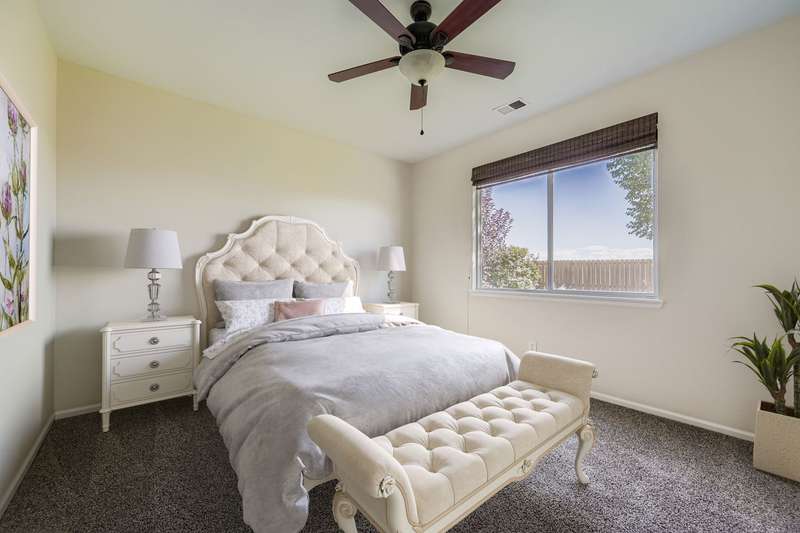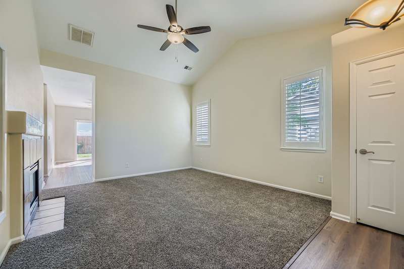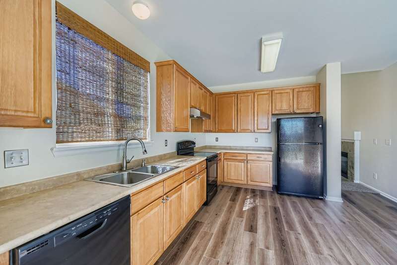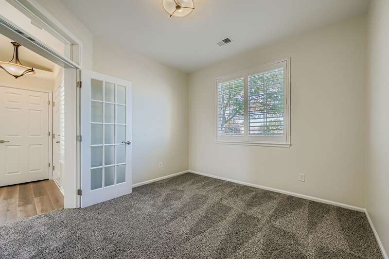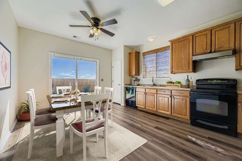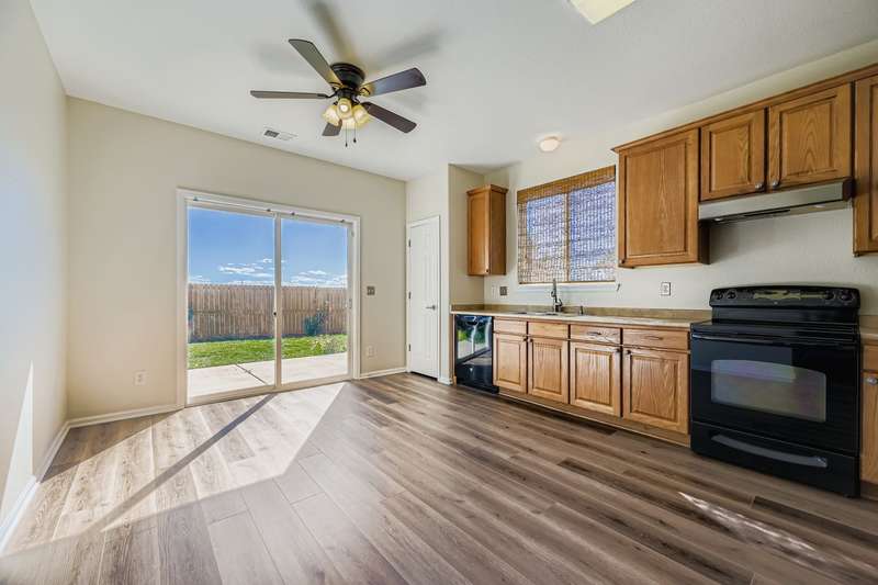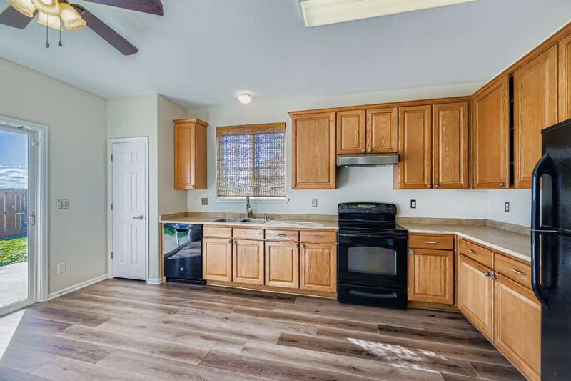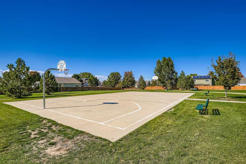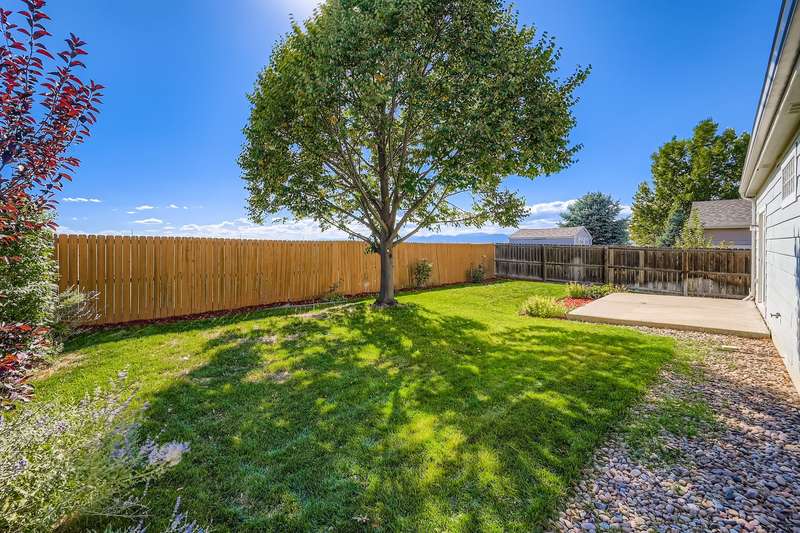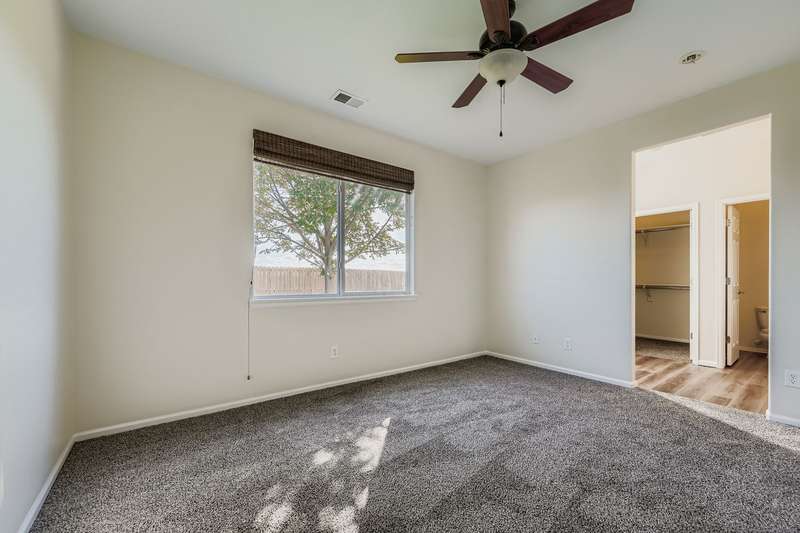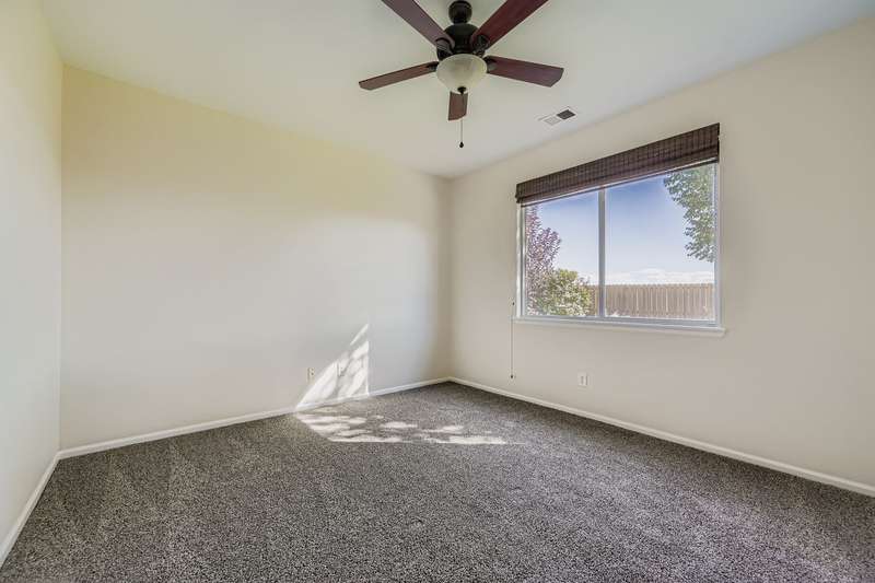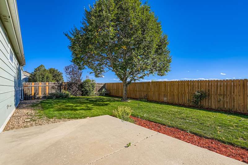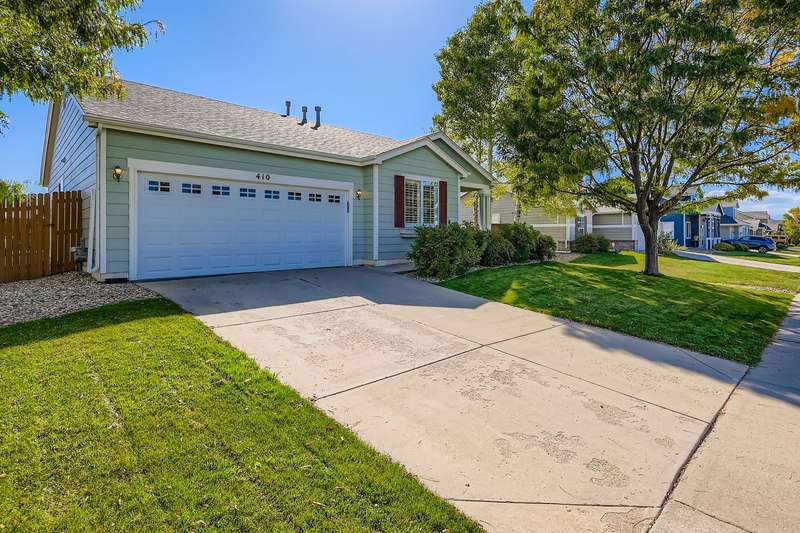 Lovely 3-bedroom, 2-bath ranch home located in the desirable Sharpe subdivision of Dacono, in its own enclave of homes just west of Colorado Boulevard. This freshly updated home features brand-new carpet throughout, luxury vinyl flooring in the kitchen, bathrooms, and entryway, and a freshly painted interior. The inviting living room offers a cozy fireplace and built-in shelves, creating a warm and functional space to relax or entertain. French doors open into the first bedroom, which also makes an ideal home office or flex space. The kitchen offers ample space for a small dining table or breakfast nook. The primary bedroom includes a 4-piece en-suite bathroom and a spacious walk-in closet. Situated on the south end of Sharpe, the property backs to open space and sits directly across from a large neighborhood park-perfect for outdoor enjoyment. Conveniently located less than a mile from the new King Soopers Super Store and just 2 miles from I-25, this home offers both tranquility and easy access to amenities.