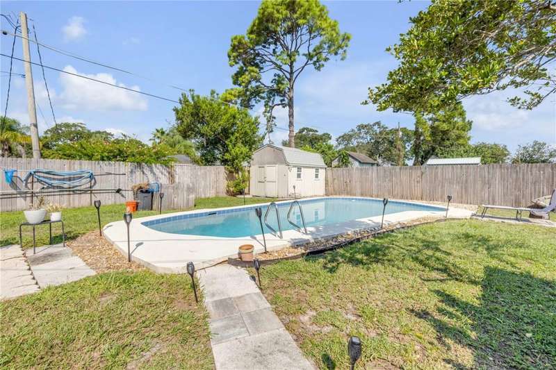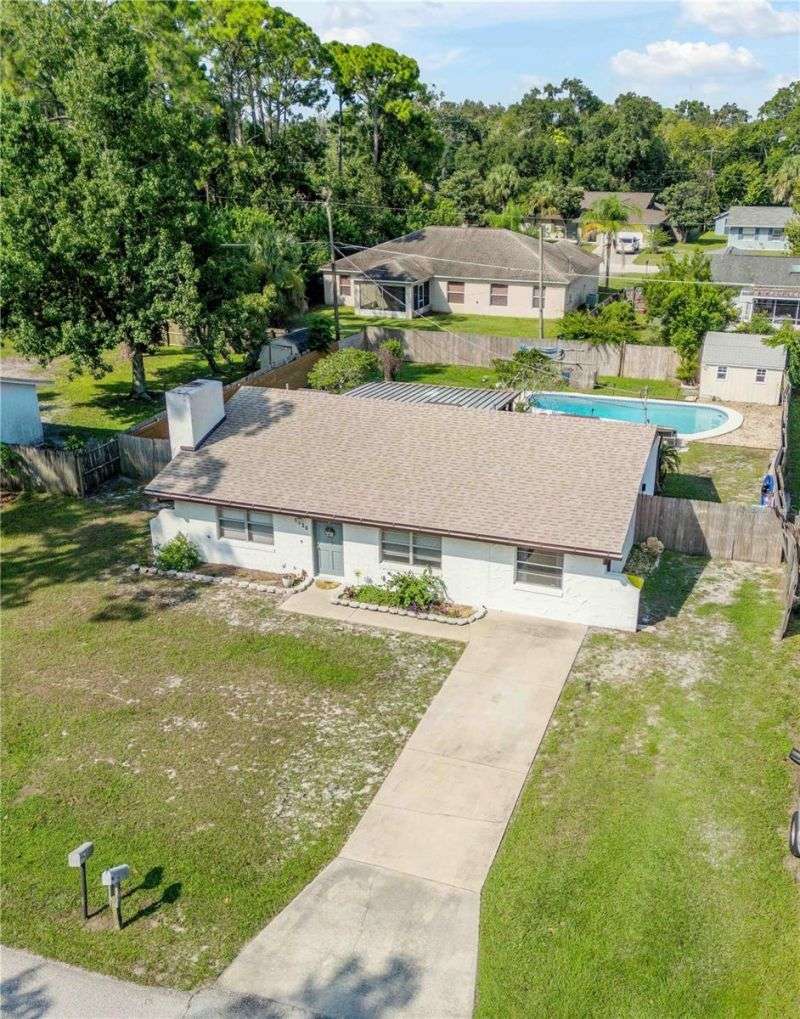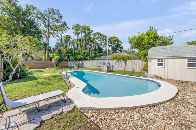 Under contract-accepting backup offers. *** Discover this hidden gem in Florida Shores! This delightful 2-3 bedroom, 2-bathroom pool home exudes character and offers the perfect blend of comfort and potential. With a beautifully renovated kitchen, a cozy wood-burning fireplace, and a versatile den that can easily serve as a third bedroom, this home is designed for both relaxation and entertaining. Step outside to the expansive screened-in patio, ideal for hosting friends and family, or unwind by the sparkling inground pool. The home has been thoughtfully updated with a new roof in 2022, pool resurfaced in 2024, and a remodeled kitchen in 2024, making it move-in ready. While it may need a little TLC, the major updates are already taken care of. *** This home is located in a prime area, just 15 minutes to the beach, 5 minutes from fishing spots and the river, and close to shopping, dining, banking, and parks. Plus, the East Central Eco Bike Trail is just around the corner for outdoor enthusiasts. Best of all, this home has never flooded. Don't miss out on this rare find-schedule your tour today!!All information deemed to be correct buyer and buyer agent to verify.