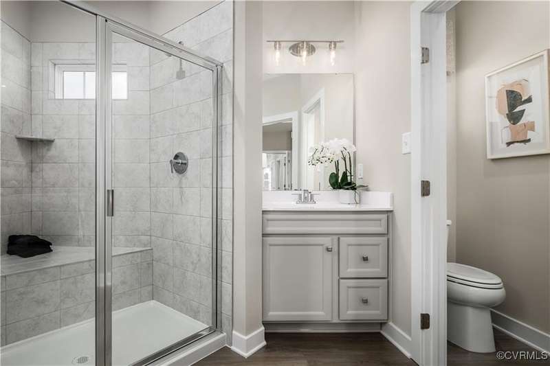 Have you seen the Picasso? This luxury townhome style condo lives like a single-family home with over 2600 sqft of living space. Words cannot describe the elegance that this multi-level home offers. Entertaining will be a dream in your chef's kitchen with oversized island, quartz countertops, stainless steel appliances and LVP flooring throughout. A large open great room with 9-foot ceilings throughout leads to your oasis in the sky as you step out to your covered porch with enough space for outdoor dining, morning coffee, or family game night. Looking for peace and quiet. Retreat to your grand owner's suite equipped with sitting area, trey ceiling, 2 large walk-in closets and spa like owner's bath. Just down the hall from your bedroom, is your laundry room with front load washer and dryer included. Two additional spacious secondary bedrooms provide the perfect space for the kids or home office. With an attached garage, private driveway and plenty of additional parking hosting family and friends for your next pickleball or cornhole tournament will be a breeze. Start putting more time back in your day at Moore's Lake. With all exterior maintenance included you can start living the lifestyle you have always dreamed of. Location, location location.....with easy convenient access to restaurants, shopping, entertainment and major interstates 95,295, and 288 as well as downtown Richmond, everything you need will be right outside your doorstep. So, what are you waiting for? Move into Moore's Lake and enjoy living the lifestyle you deserve!