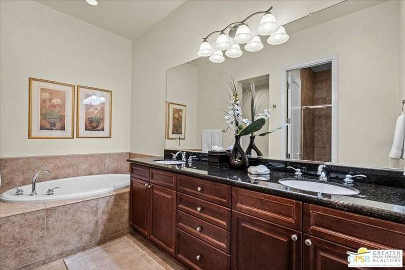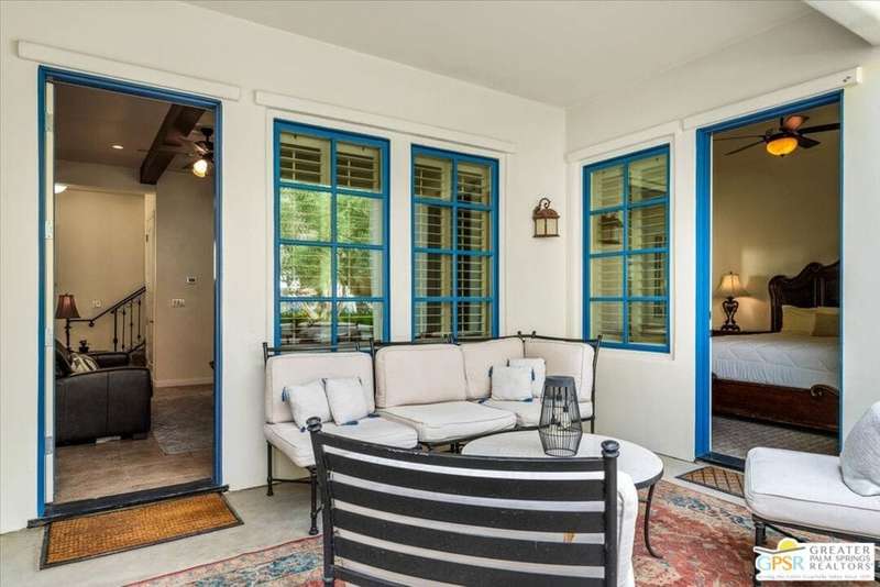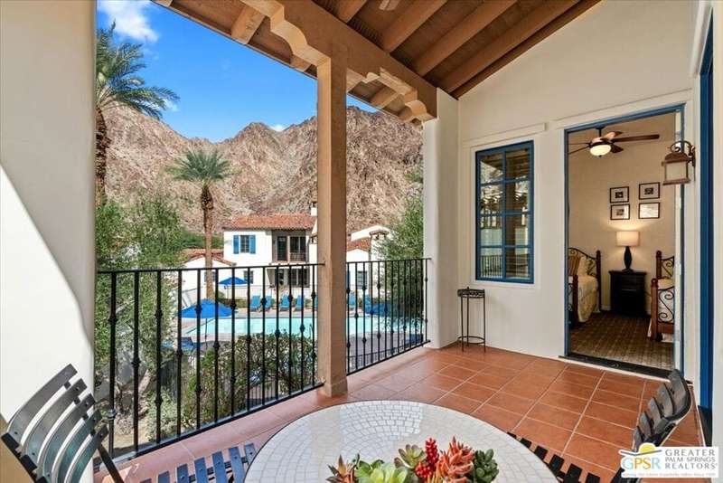 Rare Single-Family Townhome in Legacy Villas - Turnkey & Ready to Enjoy! Discover resort-style living at its finest in this beautifully appointed single-family townhome in the sought-after Legacy Villas community. This rare 3-bedroom, 3.5-bath residence offers 1,961 sq. ft. of thoughtfully designed space featuring two patios - one upstairs and one down - perfect for enjoying morning coffee or sunset views of the majestic Santa Rosa Mountains. Set in a quiet location, your downstairs private patio opens directly to a sparkling pool and spa framed by lush landscaping. Inside, a bright and inviting open floor plan welcomes you, complete with a first floor primary suite with a soaking tub and separate shower. Upstairs are two more ensuite bedrooms, both access the second floor patio. The updated kitchen includes a gas range, stainless steel appliances, and granite countertops with counter bar seating. Fireplaces in both the master suite and family room add warmth and ambiance. Revel in the unmatched amenities of Legacy Villas including 12 saltwater pools (including 2 lap pools), 11 spas, 19 fountains, fitness center, and a clubhouse featuring the Legacy Grill. Community BBQs, outdoor fireplaces, and hammocks can be found throughout the grounds. Whether you're seeking a full-time residence, weekend getaway, or an income-producing vacation rental, this home checks every box. All just minutes from the La Quinta Resort & Spa, Old Town La Quinta, and the Cove hiking trails. The best of La Quinta living at your doorstep!
