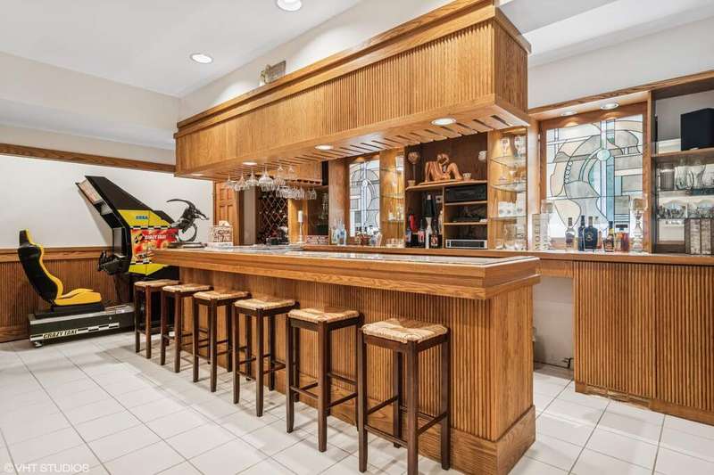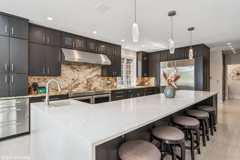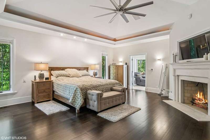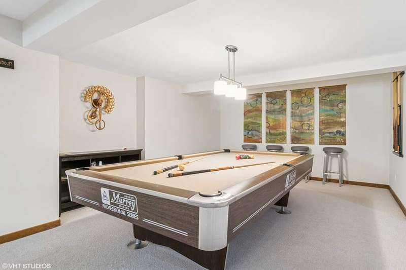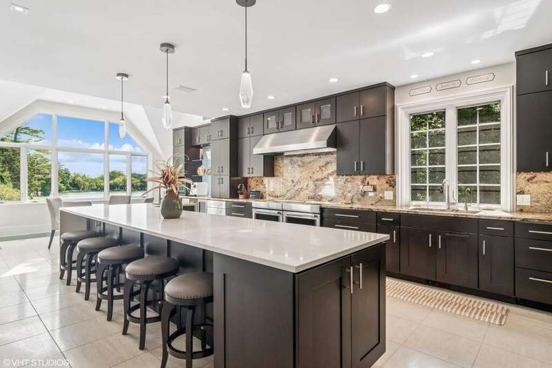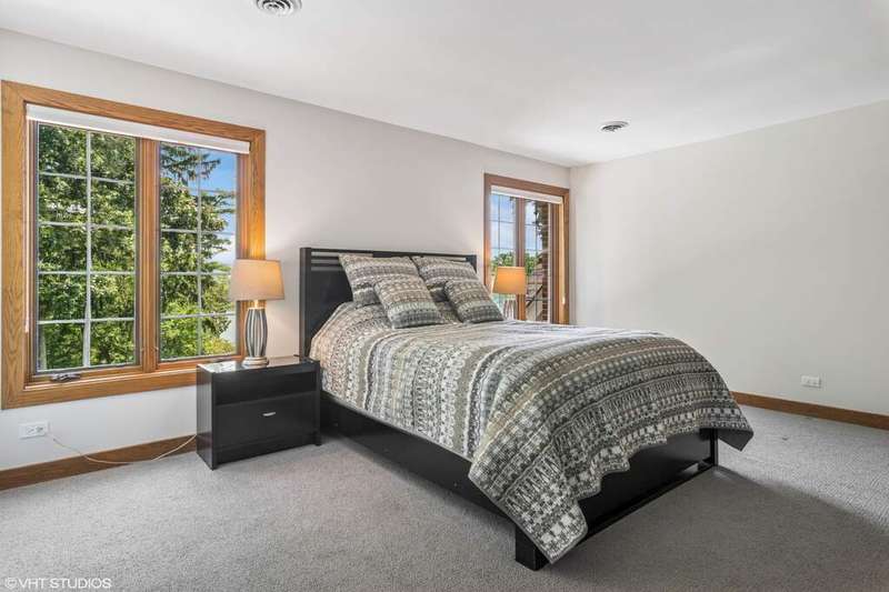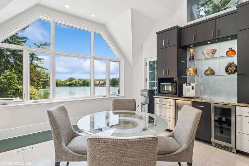 An extraordinary retreat on Bishop's Lake in Kildeer, this 5.5-acre estate blends rugged nature with sophisticated luxury. Just minutes from downtown yet worlds away in serenity, it offers sweeping lake views, mature trees, and a private resort lifestyle. Inside, the home stuns with a grand stairwell accented by a 20-foot stone waterfall, custom millwork throughout, and four fireplaces that create warmth and character in every season. The dramatic great room features soaring ceilings and walls of glass that frame ever-changing lake vistas and flood the space with natural light. At its center is a true highlight-an extraordinary $300K walnut kitchen, showcased on HGTV's "I Want That." Recently enhanced with new quartz counters and top-tier stainless appliances, it blends striking design with everyday functionality. Resort-style amenities extend beyond the walls: a treehouse-style gazebo, private beach with lake access for swimming and kayaking, and a year-round indoor pool with a waterfall that feels like a world-class spa. Wildlife is part of the daily rhythm here-swans gliding across the water, deer along the treeline, egrets soaring overhead, and excellent fishing right from your shoreline. Whether entertaining by the lake, enjoying quiet mornings on the beach, or relaxing fireside after a swim, this estate delivers a rare balance of natural beauty and sophisticated design in one of Kildeer's most coveted settings.