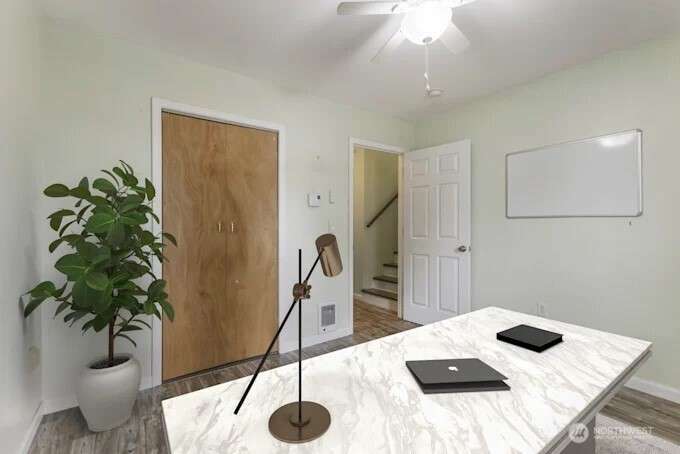 Welcome to this charming and affordable 3-bedroom, 2-bath home, situated in a prime Central Tacoma location. This home offers a fantastic blend of comfort, convenience, and potential. Inside, you’ll find a functional and flexible layout with one bedroom conveniently located on the main floor, ideal for guests, a home office, or those seeking easy accessibility. Two additional bedrooms are located upstairs, along with a second full bathroom. The main living areas feature durable laminate flooring, and the overall layout provides a nice flow, making the home feel both cozy and practical. 12x16 shop and 12x8 shed too! Located just minutes from major freeways, this home provides easy access to downtown Tacoma, JBLM, and surrounding areas.