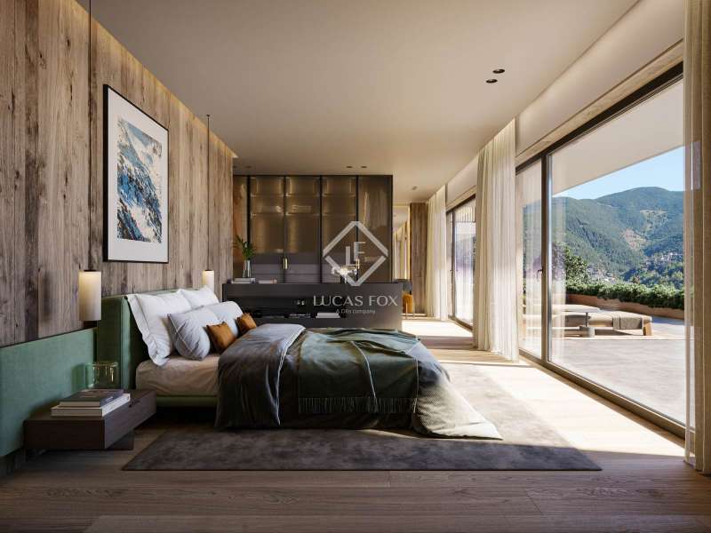 Lucas Fox presents Les Llars de la Font, an exclusive new build development with three beautiful homes in a prime location in the historic centre of Sispony. The Blauet house has a surface area of 547 m², which is distributed over three floors, plus the lower ground floor. Exterior, the property boasts a traditional Andorran design, with a stone, wood, and slate facade that blends seamlessly into its surroundings. It also features large floor-to-ceiling windows that let in plenty of natural light and offer incredible views of the wooded surroundings. Inside, the space is open-plan and maximizes spaciousness. The various spaces boast a modern design with contemporary decor, materials like wood, and neutral tones. The kitchen, while maintaining a modern aesthetic, features colors like the trendy sage green combined with black marble. The main floor houses the day area, with a spacious living-dining room and open-plan kitchen access to a magnificent southerly aspect terrace, which receives abundant natural light. The floor also includes a guest toilet. On the -1 floor , we find the night area, with three bedrooms with their respective private bathrooms, with access to another terrace, also southerly aspect. The second floor , at garden level, houses the main bedroom with its private bathroom and a utility room. This ground floor can be kept as a main bedroom or divided into a multipurpose room. This offers several customization options to suit your needs. There is also the option of adding a Jacuzzi in the main bedroom. On the lower ground floor, there is parking space for several vehicles. The development offers the latest in technology to achieve great energy efficiency. To achieve this, it maximizes natural light and offers excellent thermal insulation. In fact, the property has CTE certification and an A energy classification, which regulate the energy efficiency of homes. It also includes an aerothermics system for hot water production and supplying the underfloor heating heating and air conditioning, as well as aluminum frames with triple low-e glazing. Among its features, the parquet and porcelain floor in the stairs and bathrooms, LED lighting, and a home automation system for controlling various systems such as aerothermics are noteworthy. The kitchen comes fully equipped with wall and base cabinets, marble countertops, and Bosch appliances , among others. The bathrooms also include all the necessary equipment, in materials such as porcelain. The property has an elevator and parking with pre-installed electric vehicle charging stations. Finally, there is a communal garden landscaped with trees. Contact us for more information.
