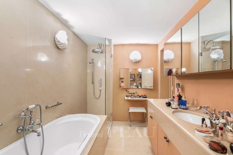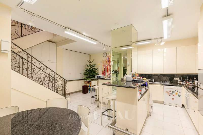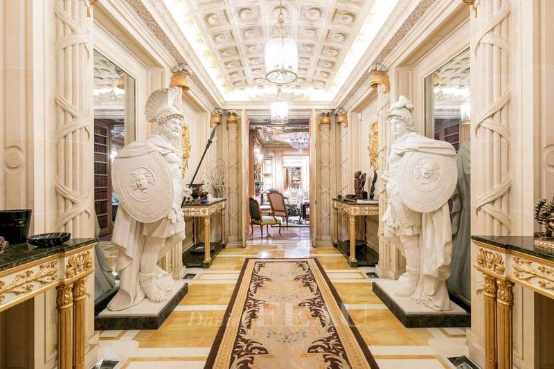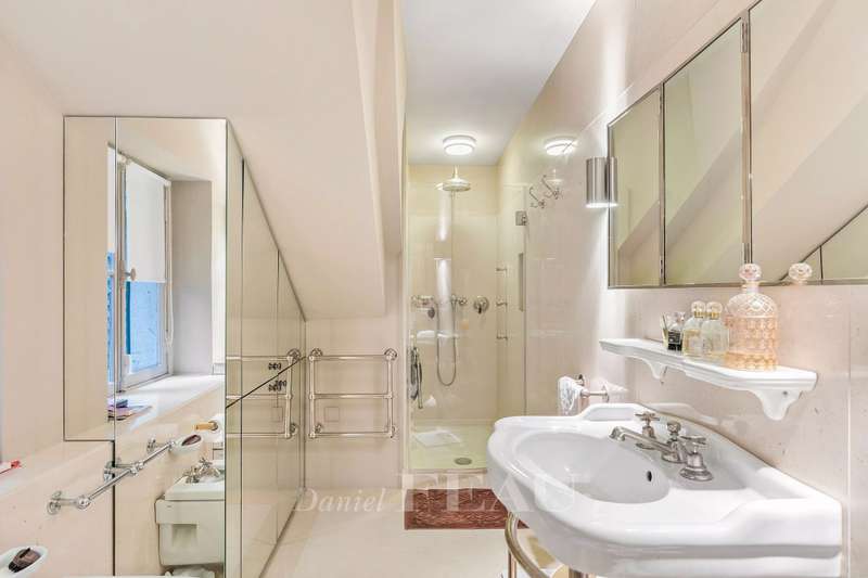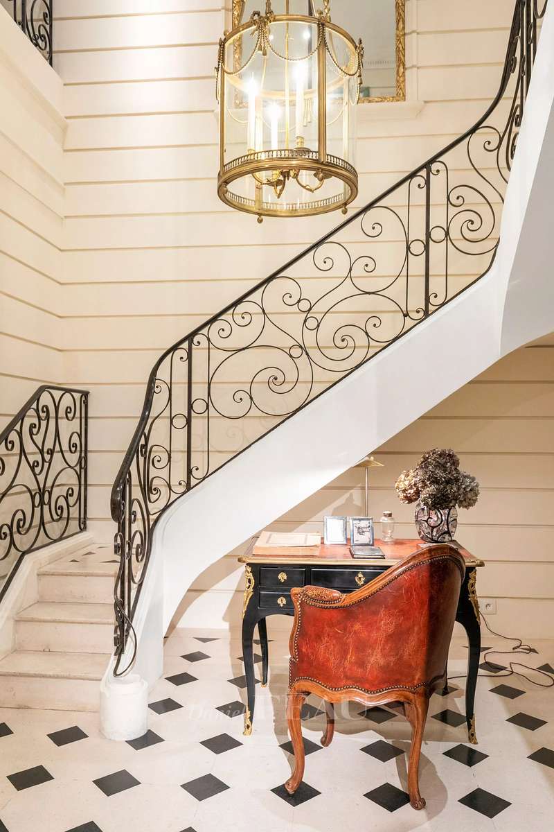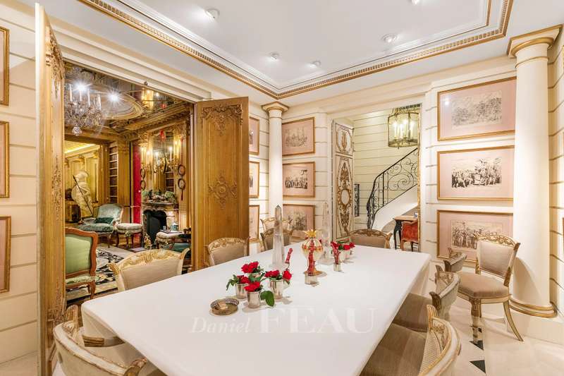Rue de Rivoli, a stone’s throw from Place Vendôme. Hidden from view to the rear of an elegant building, this remarkable apartment on three floors benefiting from lift access overlooks a beautiful leafy paved courtyard. With the feel of a private house, it offers 300 sqm of living space which has been entirely remodelled in the ornate style of the 18th century. Superb features including panelling, mirrors, plasterwork, marble, wrought iron and Versailles-style parquet flooring ally with the latest in contemporary comfort. The garden level includes an entrance hall with a vestibule, a panelled living/reception room, a study, a dining room, and a library area. On the entresol, a 28 sqm terrace hidden from view is set between two complete master suites each with a bathroom and a dressing room. Accessed both by an interior staircase and the buildings common areas, a renovated 30 sqm apartment on the 1st floor comprises a living room with a kitchen, a bedroom and a shower room. The basement comprises a spacious kitchen/dining room, a utility room and a staff bedroom. An exceptional apartment in a prime location.