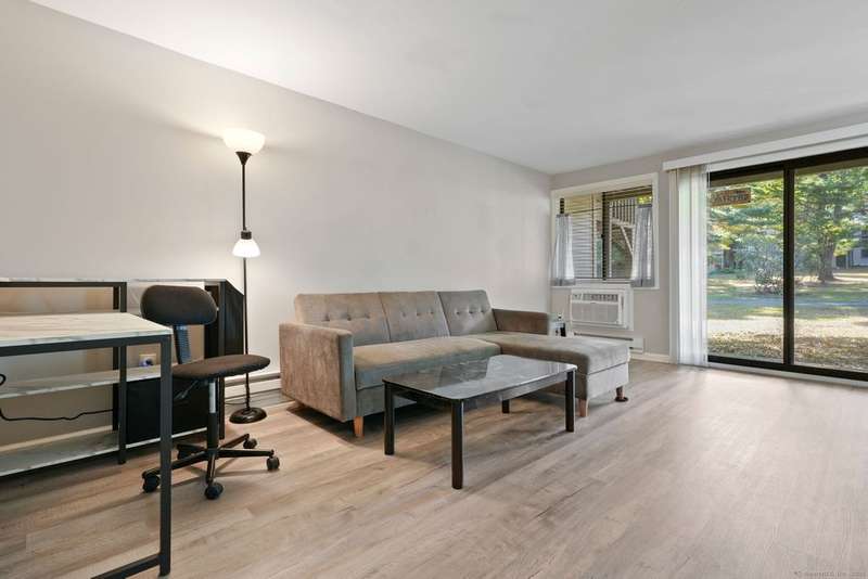 Renovated kitchen, bathroom and floors grace this immaculate one bedroom ranch style unit on the 1st floor in Brookside Condominiums. Large living room/dining area with sliding doors to the patio looking out on an expansive lawn. Bright sunny kitchen with new refrigerator and nearly new electric range, microwave and dishwasher with space for a small table or desk. Convenient location close to I-84, shopping, parks, hospitals and entertainment.