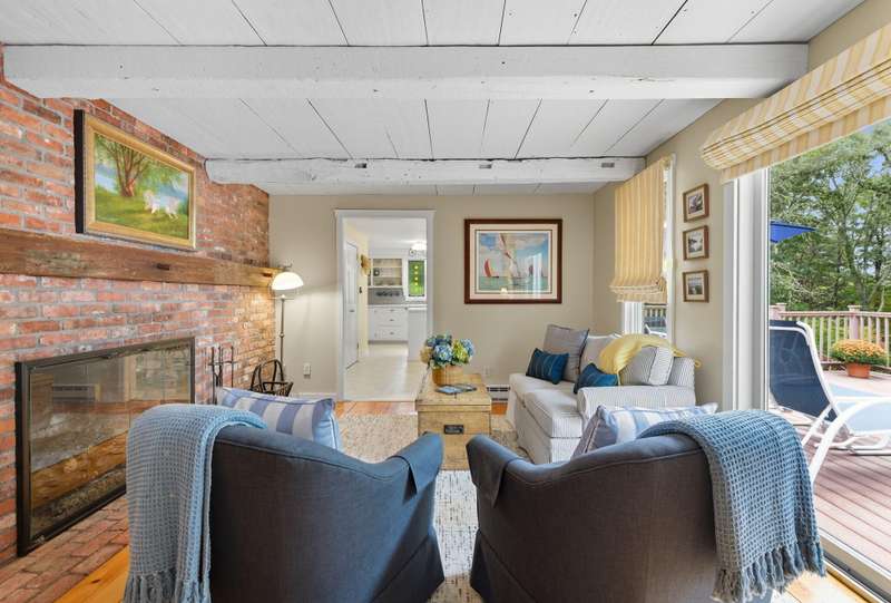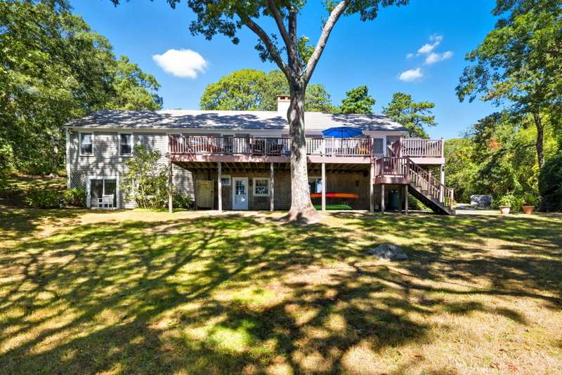Waterfront Living on Lower Mill Pond!Set on 2.27 private acres, this 3-bedroom, 3.5-bath ranch-style home offers serene pond front living with direct access and your own private dock. Wake up to peaceful water views and enjoy al fresco dining on the expansive deck. Launch your kayak or paddle board right from your backyard and explore the calm waters of Lower Mill Pond. The spacious yard offers plenty of room for lawn games, cookouts, and making lasting memories with family and friends. Inside, cozy up by one of the two fireplaces, with comfortable, single-floor living on the main level. The finished walkout lower level adds versatility and endless possibilities, ideal for a guest suite, home office, or recreation space. With 2,160 sq ft of living space and a 5-bedroom septic system, there's room to grow. Perfect for year-round living or a Cape Cod escape. Offered turnkey if desired.