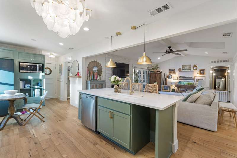 What a find! Designers home with an open, inviting floorplan featuring stunning hardwood floors and high-end finishes throughout. The kitchen boasts a large island, beautiful designer lighting, and an oversized pantry with space for a second refrigerator and extra storage. Situated on a large lot with pier and beam foundation, this home offers generous storage and spacious bedrooms.The primary suite includes built-in shelving, a cozy fireplace, ensuite bath, and dual closets. The living room showcases vaulted ceilings, a timeless fireplace, and open flow to the kitchen and formal areasperfect for entertaining. Step outside to enjoy upgraded landscaping, refreshed pool finishes, and a large backyard with plenty of room to play and relax.Dont miss this gemits the perfect blend of style, comfort, and functionality!