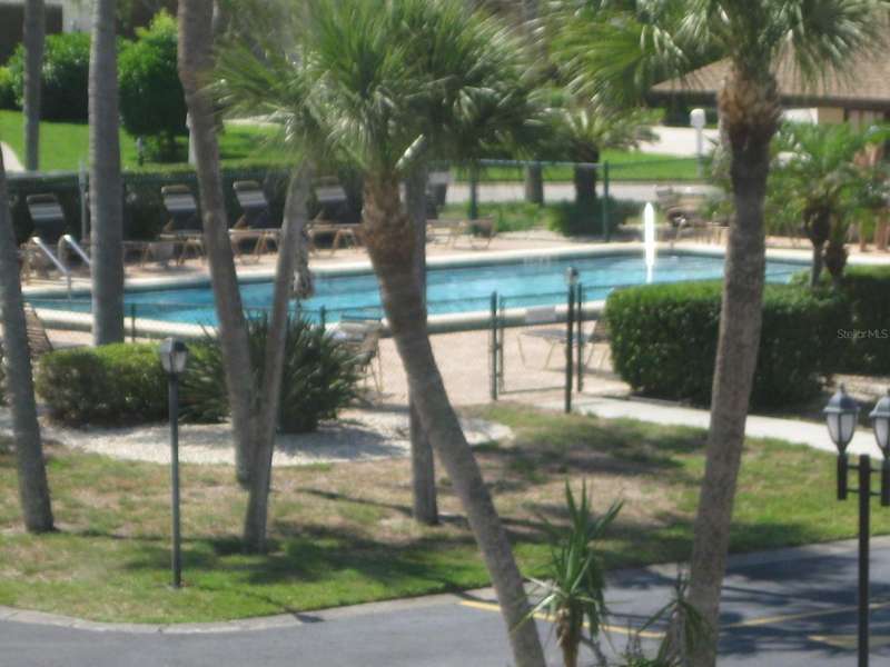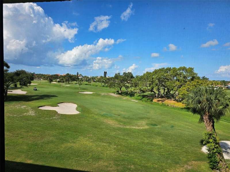 Welcome home to your top-floor retreat! Enjoy relaxed living in this 2 bedroom, 2 bath condo located on the top floor of a secure 4-story building with a lovely golf course view. The open living/dining combination feels bright and comfortable, with wood laminate flooring in the main areas and carpet in the bedrooms. The main bedroom offers a king-size bed and en-suite bath with a tub/shower combo, while the guest bedroom has a queen bed, small walk-in closet, and its own bath with a shower-perfect for visiting family or friends. Step outside to the screened and covered patio, where you can sip your morning coffee while taking in the peaceful golf course scenery. There's also a little extra storage for your convenience. The community laundry room with coin-operated washer/dryer is just across the hall, making laundry days easy. This friendly community offers a clubhouse, heated swimming pool, and even a restaurant right in the El Conquistador neighborhood that's open to the public. Plus, you're just a short drive from the area's beautiful beaches, great shopping, restaurants, and more.
