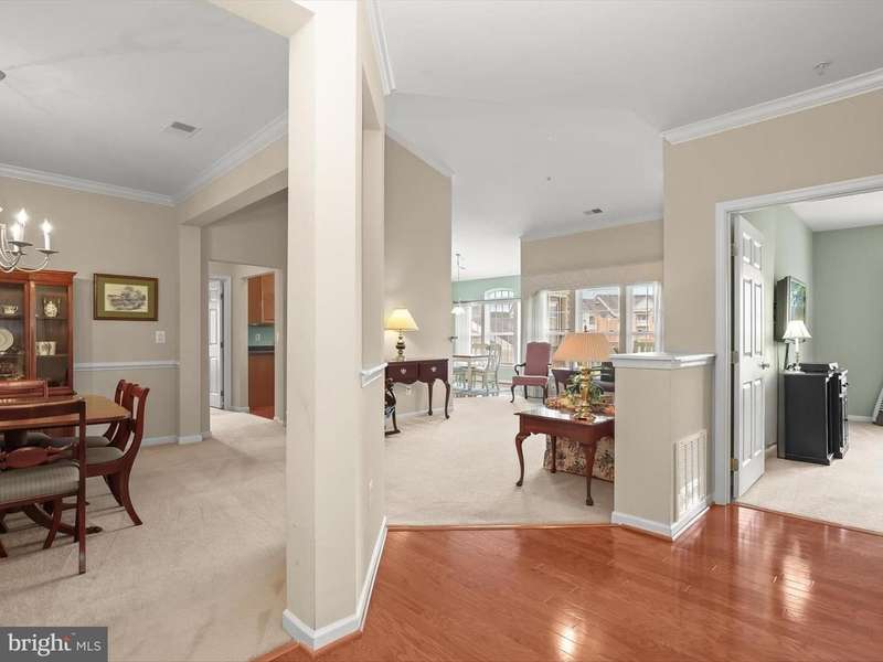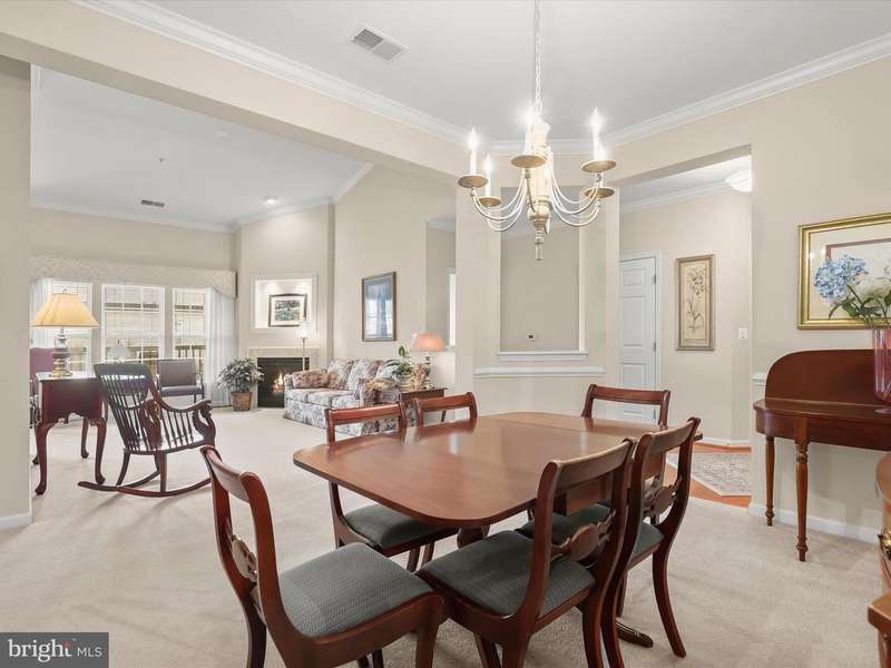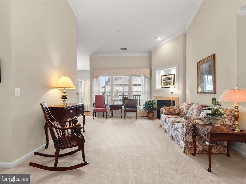 Welcome to 8245 Stone Crop Drive, Unit R, a stunning top-floor condominium in the amenity-rich 55+ community of Hearthstone at Village Crest in Ellicott City. Soaring vaulted ceilings, abundant natural light, and an open, airy floor plan create a truly impressive living space. The inviting living room is enhanced by dramatic ceilings and a cozy fireplace, while the dining room is framed with classic moldings. The chef's kitchen offers 42-inch cabinetry, stainless steel appliances, a pantry, and a sunny breakfast room with direct access to the private balcony. The primary suite is a serene retreat, featuring a sitting area, walk-in closet, and a spa-like bath with a dual vanity, glass-enclosed shower, and linen closet. A second generously sized bedroom, full bath, laundry area, and ample storage complete the interior. Recent HVAC & Hot Water Heater Replacement. Residents of Hearthstone enjoy plentiful parking and access to outstanding amenities, including a clubhouse, pool, tennis courts, fitness center, and meeting spaces. Ideally located just minutes from downtown Ellicott City, US-29, MD-103, and the Long Gate Shopping Center, this home offers both comfort and convenience in a vibrant community.