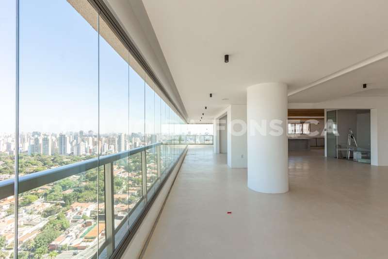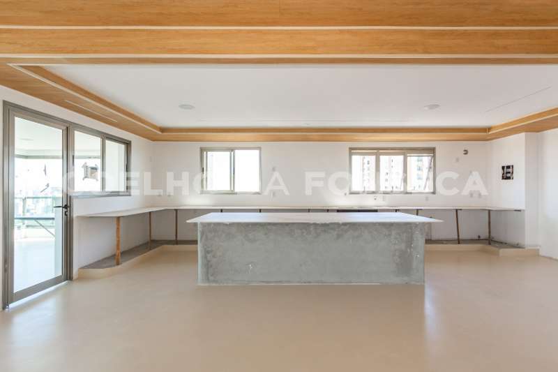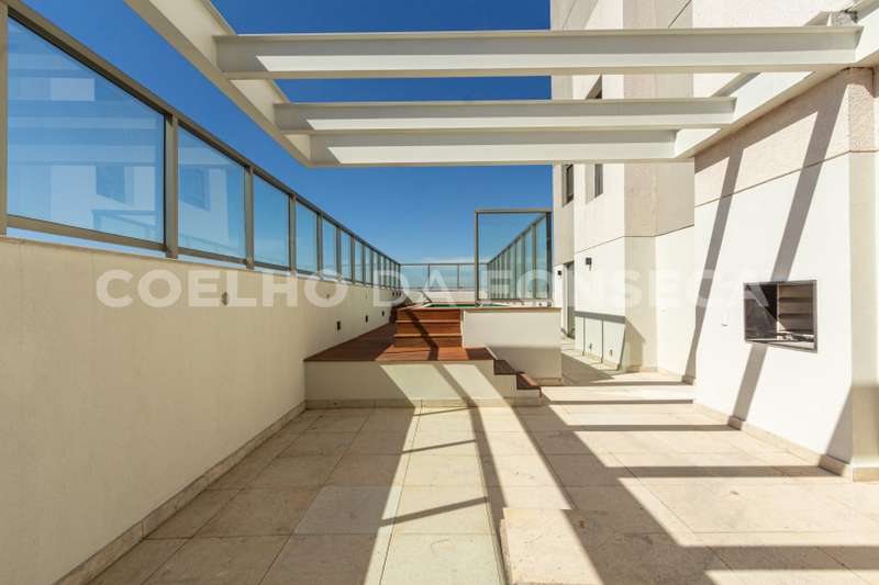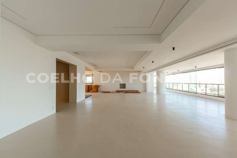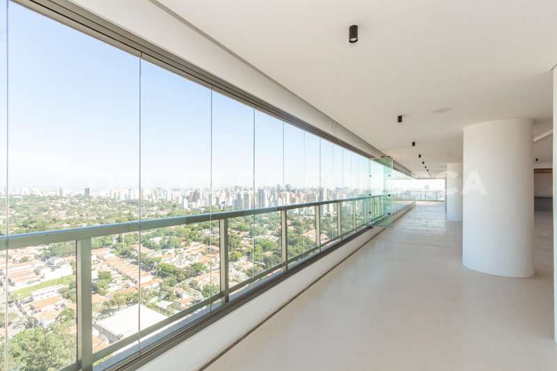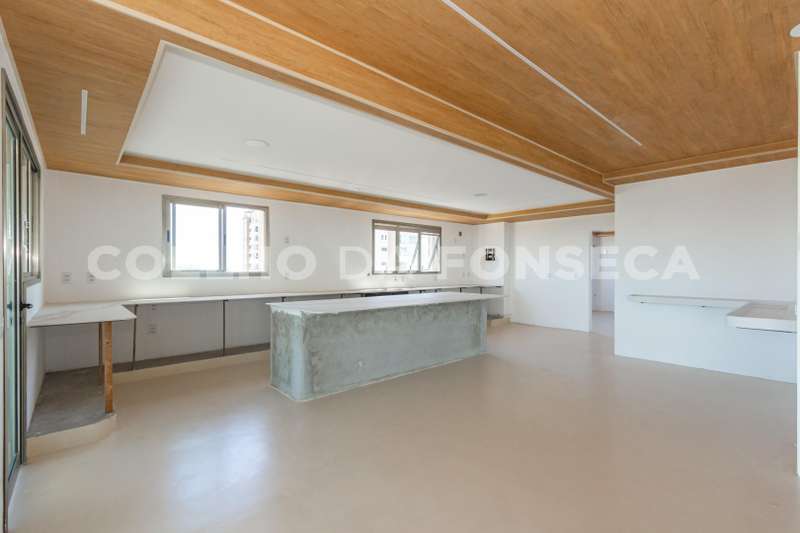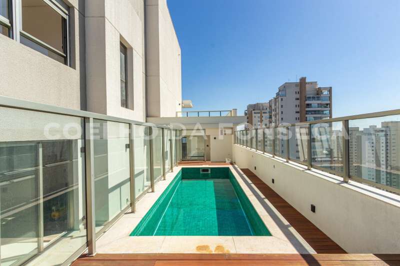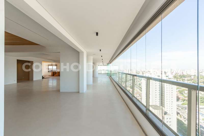 Cobertura no bairro Campo Belo com 838 m2 de área útil, 5 suites, 7 vagas, nova nunca habitada, varanda ampla com vista panorâmica, living para 3 ambientes, elevador com acesso aos dormitórios, suite principal com banheiros senhor e senhora. Ótima localização: próximo ao conceituado Colégio Vértice. Área gourmet com piscina e churrasqueira. Edifício com lazer completo.