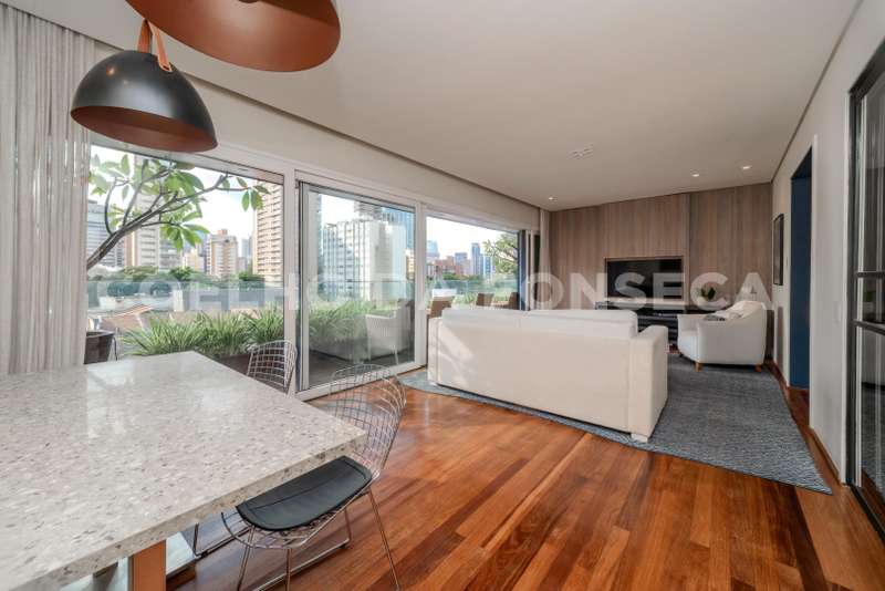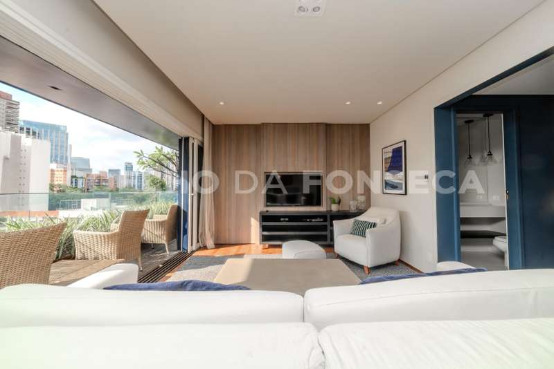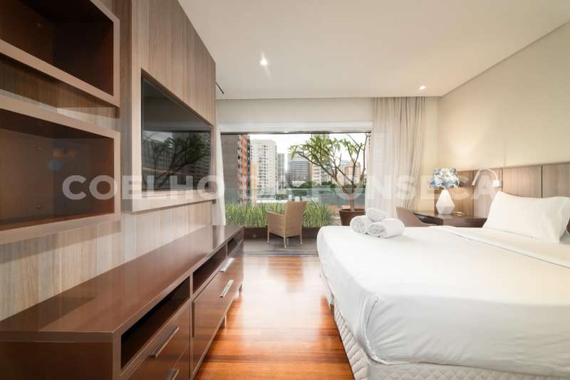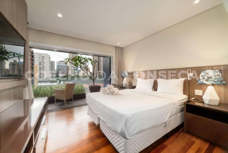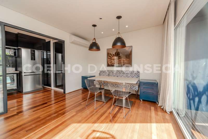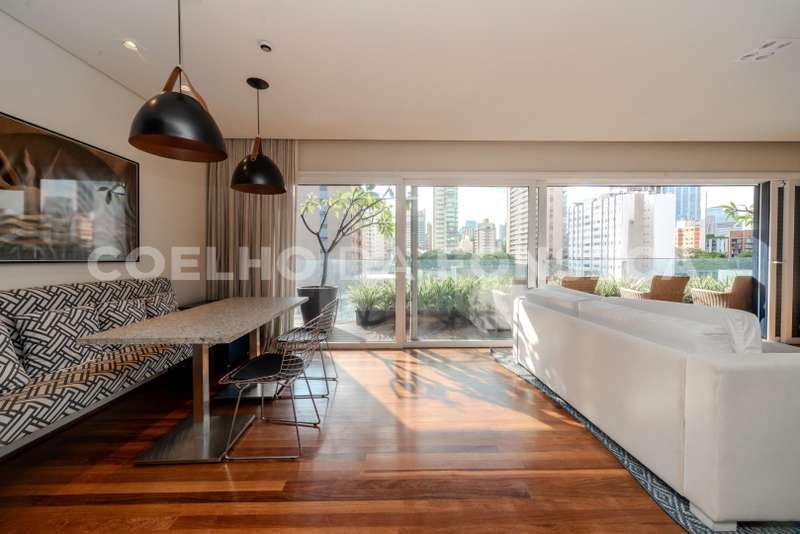 Apartamento no bairro Vila Olímpia com 89m² área privativa/útil, 1 dormitório(s), 1 suíte(s), 2 vaga(s), 2 banheiro(s), terraço, mobiliado (a), ar condicionado, reformado (a).