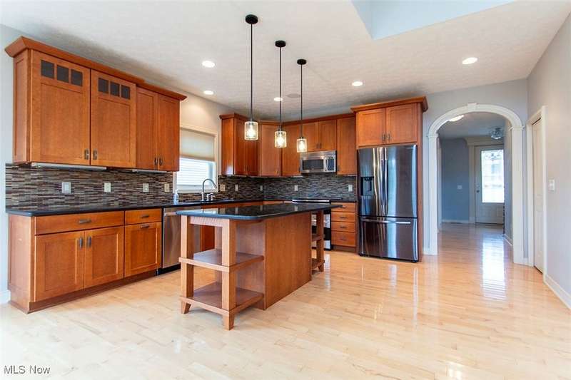 An inviting front porch welcomes you to this spacious cluster home in the beautiful Blue Heron/Lookout Pointe subdivision. You will appreciate amenities offered that include walking trails, a pool, tennis courts plus a neighborhood brewery. The gourmet kitchen features custom cabinets with premium Zodiac quartz countertops, an island breakfast bar, glass tile backsplash, and includes appliances. Patio doors open to a nice deck. The great room is complimented with a gas log fireplace. The deluxe first floor owners suite offers a double tray ceiling with rope lighting and walk-in closet. A remodeled bath includes a shower and garden tub. An office and laundry room complete the first level. Upstairs you will find two additional bedrooms with a convenient jack-n-jill bath. There is also a loft and great attic storage. Extra living space is offered with a professionally finished lower level that includes a recreation area with a custom bar, half bath, and a storage room. Newer roof in 2024. Immediate occupancy is available. Call today!