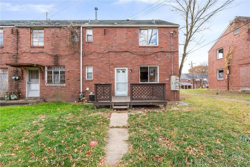 Heart of Clairton- Great Rental! This solid brick end unit Townhouse is conveniently located near local shopping and public transit. This is perfect for an investor who wants to inherit a rental and collect income quickly. Some minor cosmetics will go a long way here! First floor has Living Room, Dining Room, Kitchen, and Laundry Room. Second Floor has 3 Good Sized Bedrooms and a Full Bathroom. Back Deck and Yard are great for entertaining, children, or pets and there is one assigned parking space for this unit. Perfect for any investor!