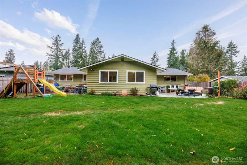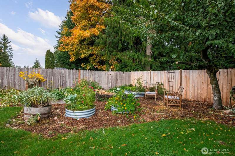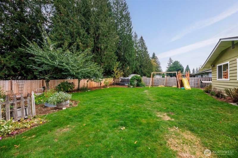 Welcome to this inviting rambler that perfectly blends charm, and functionality! Enjoy a bright open floorplan with abundant natural light and two spacious living areas—ideal for relaxing or entertaining. The kitchen and main living spaces flow seamlessly to a large, fully fenced backyard featuring an expansive patio, perfect for outdoor dining and gatherings.The property is a gardener’s dream with fruit trees, vegetable beds, and flower gardens. Thoughtful built-ins in the kitchen provide excellent storage, even more storage in the garage. Additional highlights include a newer roof, efficient heat pump for year-round comfort, and plenty of room to enjoy the outdoors. Home has been preinspected. This is one level living at its finest.
