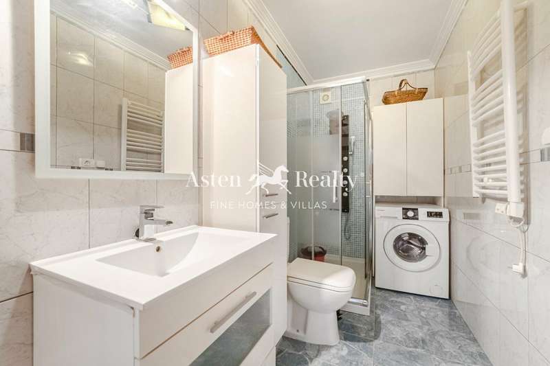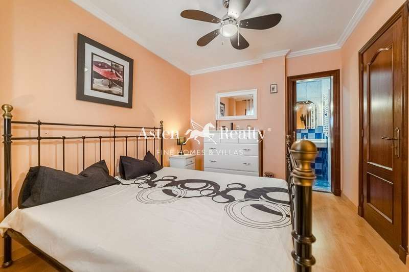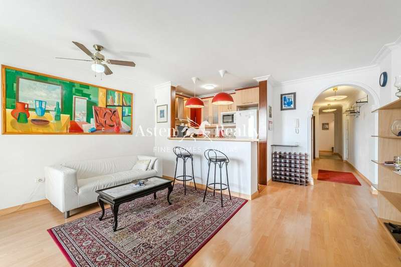 Spacious and welcoming property distributed into a living-dining room with open kitchen, 3 bedrooms and 2 bathrooms, one of them en suite, terrace with sea views and views of the main square. It is located on the top (second) floor of a three-story building without a lift. The apartment is in perfect condition, features air conditioning and is sold partially furnished.