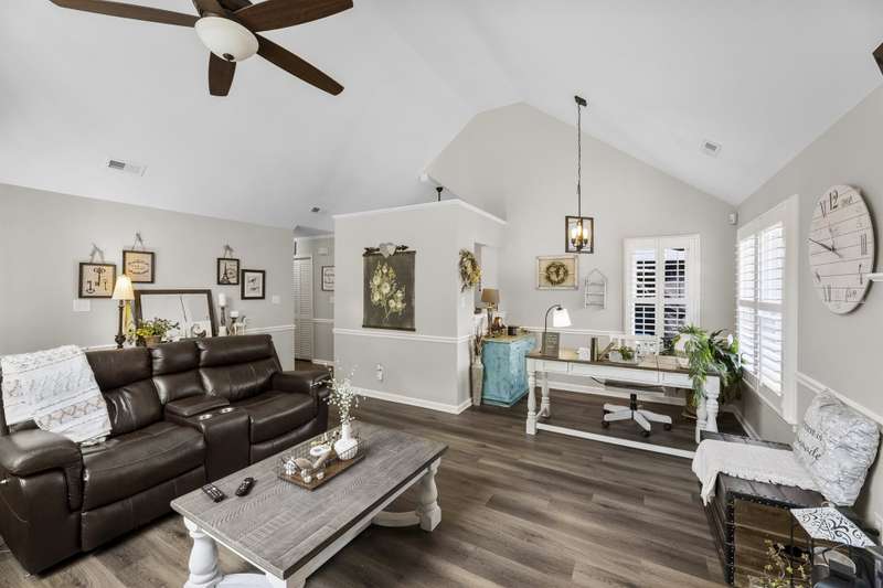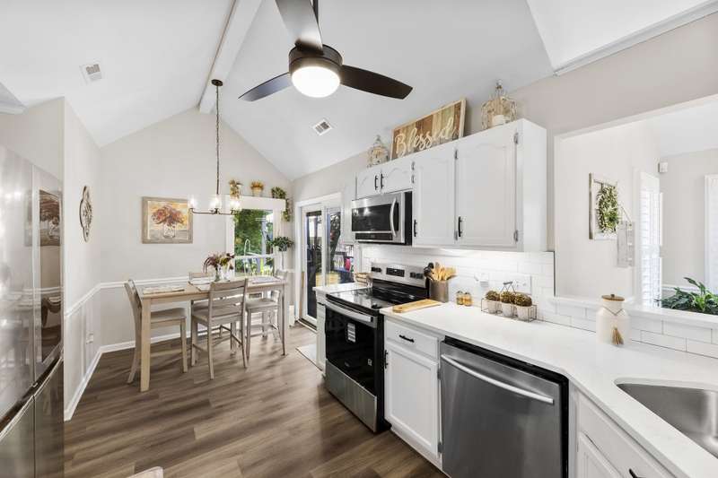 Riverwood Patio Homes, one of the area's most sought-after communities! Ideally located near Martha Rivers Park, top-rated elementary schools, and just minutes from grocery stores and everyday conveniences ? this home puts you right where you want to be. Step inside and enjoy the vaulted ceiling that opens up the spacious family room, creating an inviting and airy feel. The home features updated vinyl plank flooring throughout much of the space, combining style and durability. Love to entertain? The private patio and deck are perfect for relaxing or grilling out ? complete with a gas line for easy grill hook-up! Additional features include, updated kitchen appliances, HVAC system approx. 7 years old, and the roof approx. 9 years old. Access to the neighborhood swimming pool ? included in HOA fees!This low-maintenance gem offers the perfect blend of comfort, location, and community. Whether you're downsizing or just starting out, this patio home is the perfect fit.