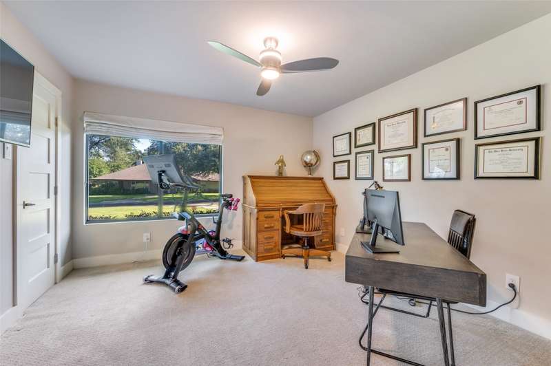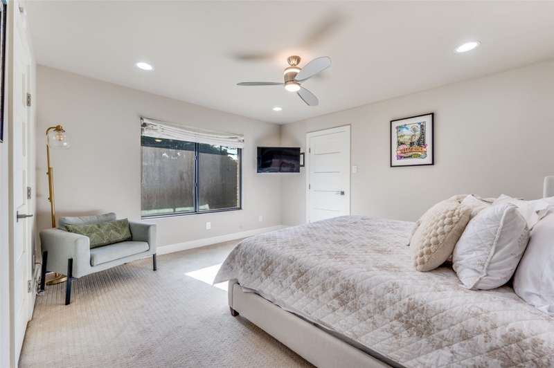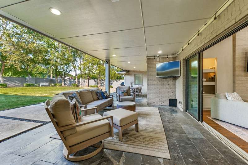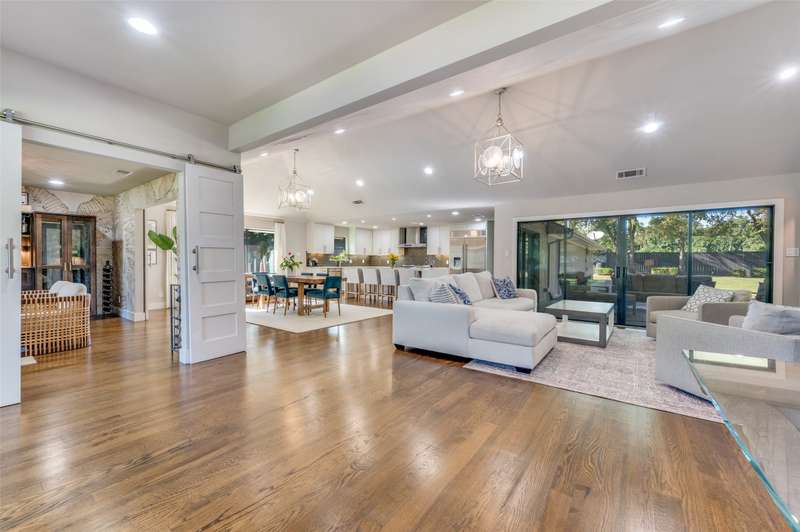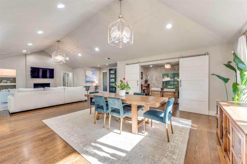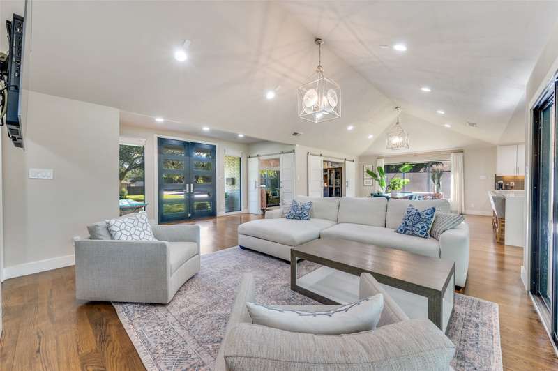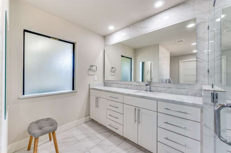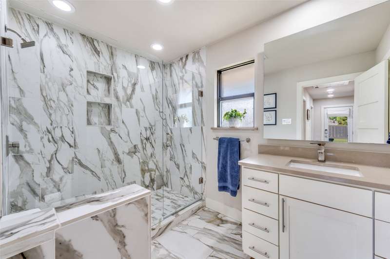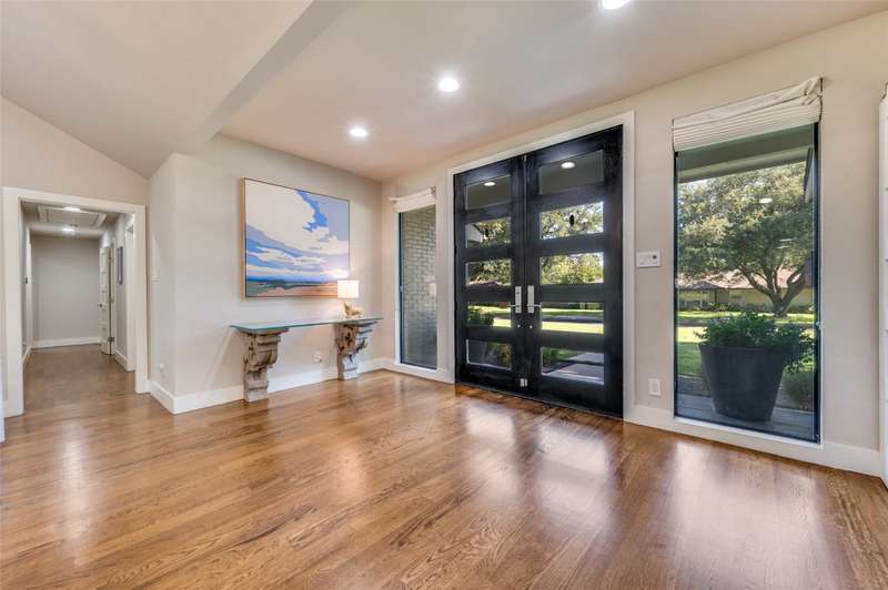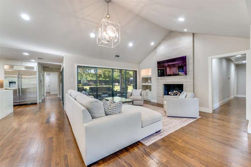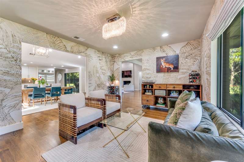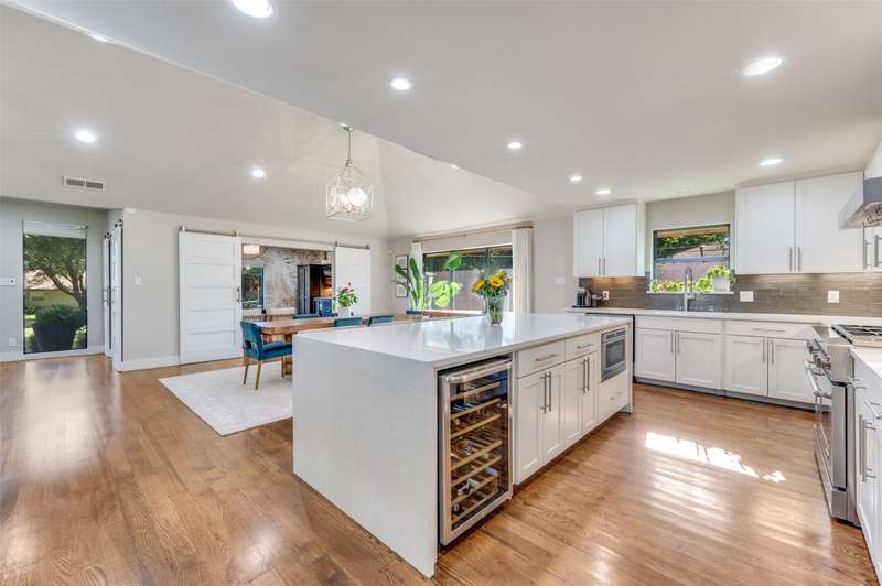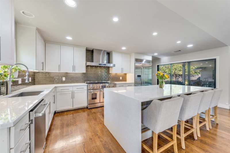Wonderful remodel with a blend of modern design features and a floor plan ideal for family living and entertaining. Vaulted ceiling in the large combination living and dining area. Open kitchen with commercial grade appliances and a large island with seating. Adjacent dining room is perfect for today's lifestyle. All four bedrooms have ensuite bathrooms. Beautiful primary suite with a spacious, completely updated bathroom. Separate tub and shower with double vanities and a large walk-in closet. Nice covered patio with TV overlooking a huge backyard with mature trees and an electronic gate. This home backs to the popular Northaven Trail which is great for walking and biking. Hurry on this one.