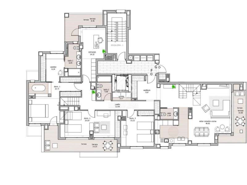 This extraordinary penthouse apartment is a dream home, offering luxury, space, and breathtaking views of Alicante's most iconic landmark—Santa Barbara Castle—along with sweeping views of the Mediterranean Sea. With an expansive 130m² rooftop terrace, this residence combines elegance and modern living, all within a highly desirable community that boasts superb amenities. Located just 2,000 meters from the beach, the apartment is perfectly situated, offering easy access to the sea and just a 5-minute walk from Alicante's largest shopping center. The vibrant city center is only 10 minutes away, providing convenience and lifestyle in one package. Upon entering, you are greeted by a grand entrance hall that immediately impresses with its generous closet space, perfect for keeping everything tidy and organized. To your left, you’ll find the first bathroom, conveniently located near the living area, which opens up into a spectacular living room and an open-plan kitchen. This living space is filled with natural light and leads directly to a large terrace where you can take in the mesmerizing views of the sea, mountains, and the majestic Santa Barbara Castle—an ideal spot for enjoying morning coffee or dining al fresco. A sleek and stylish staircase from the living room ascends to the immense rooftop terrace, offering unlimited potential for outdoor living. Whether you're envisioning a BBQ area, a chill-out lounge, a rooftop garden, or even a private yoga space, this terrace provides a rare and versatile space to make your own. On the other side of the apartment, an additional staircase offers a second access point to the rooftop, adding further convenience. The rest of the penthouse consists of five spacious double bedrooms, each with ample closet space, ensuring comfort and privacy for all. The master suite is a true retreat, featuring a luxurious walk-in closet and a private bathroom. Two additional bathrooms, all designed with modern finishes, serve the remaining bedrooms. Completing this incredible property, the apartment includes two oversized parking spaces in the basement, ideal for larger vehicles, along with two expansive storage rooms for all your extra belongings. The community is equally impressive, offering a beautifully landscaped garden, a swimming pool for those warm Alicante days, a children’s playground, and additional outdoor parking for guests or a third vehicle. This penthouse is more than just a home; it’s a lifestyle of luxury, comfort, and endless possibilities for relaxation and entertainment in one of the most scenic and convenient areas of Alicante. With the beach, shopping, and city center all within close proximity, this stunning residence truly offers the best of both worlds.