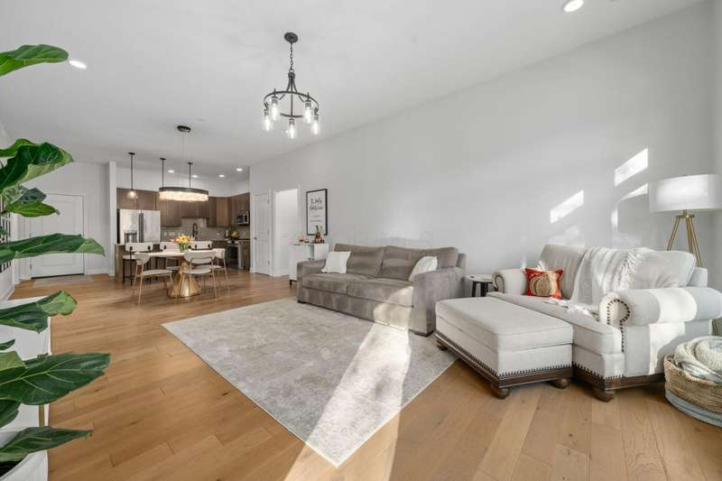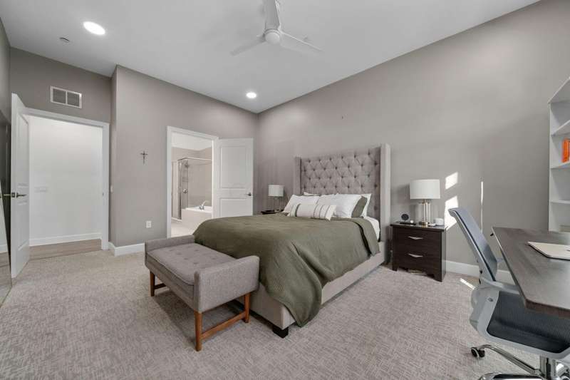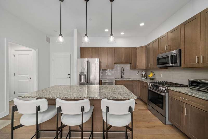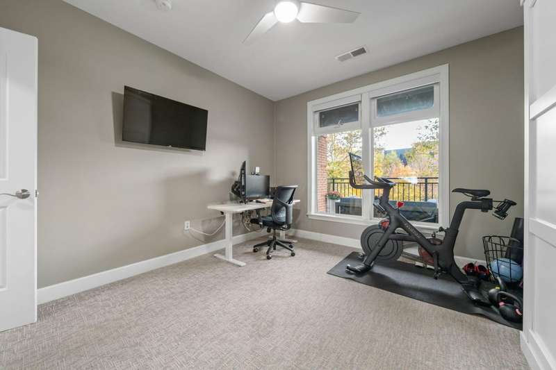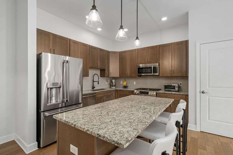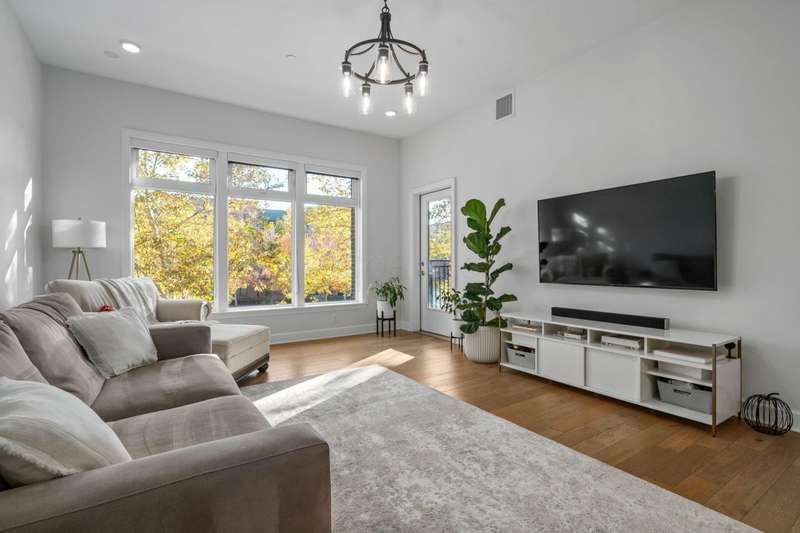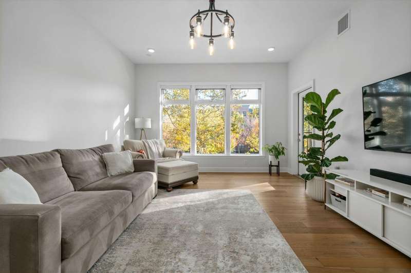 50% tax abatement through 2032! Welcome to this stunning 2nd-floor condo in the highly sought-after 828 at The Yard. Offering 2 bedrooms, 2 full bathrooms and over 1,400 sq ft of single-level living, this home blends modern elegance with everyday comfort. The chef's kitchen boasts shaker cabinetry, granite countertops, stainless steel appliances including high end refrigerator, a center island and tile backsplash. The open-concept great room features oversized windows and direct access to a private, covered balcony overlooking green space. The deluxe primary suite impresses with a spa-inspired ensuite featuring a soaking tub, frameless glass shower, dual vanities, and a walk-in closet. A generous second bedroom with its own large closet and adjacent full bath provides the perfect guest retreat. Current owners have installed a Murphy bed in the second bedroom, chandelier in the dining area, hardwood flooring in the primary closet and smart fans in the bedrooms. Assigned garage parking + large storage unit. Residents of The Yard enjoy premium amenities: pool, fitness center, clubhouse, restaurants, shopping, and vibrant city living. Prime Grandview location with unbeatable convenience and lifestyle. See A2A remarks.