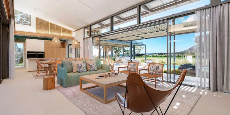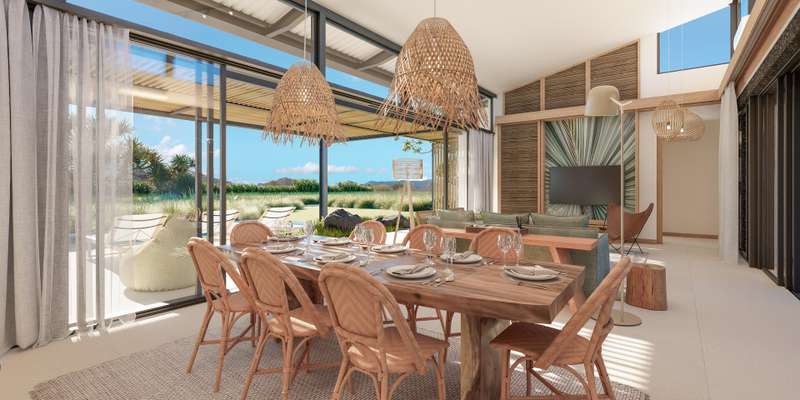 This 204 m2 villa on a 1,897 plot of land is part of a new luxury golf estate on the much-prized West Coast of Mauritius, welcoming a multicultural, diverse area which is graced with the wealth of natural space, perfectly nestled between the beautiful Black River Mountain range on one side and the crystal-clear Indian Ocean on the other. Accessible to both Mauritians and non-citizens, with a residence permit upon acquisition, the estate is based on exquisite, sustainable architecture and infrastructure, with the promotion of local talent and artisanal work at heart. The 73 hectare estate will comprise 220 villas respectfully integrating within the environment and boasting views onto the golf and/or lagoon. The villas are under a VEFA contract (in future state of completion); with strict architectural guidelines for villa construction to ensure that bioclimatic architecture established by the firm JFA Architects are respected. Phase 1 is already underway which will include 81 villas and residential plots, a club house and the first 9 holes of the golf course. Residents will have privileged access to the Estate’s Golf and Beach Resort, as well as the developer’s two existing, reputed resorts which are a few minutes drive away. A boat park will also be at their disposal to ensure that life by the sea is enjoyed to the fullest.
