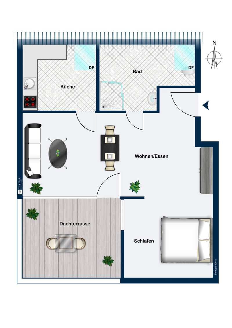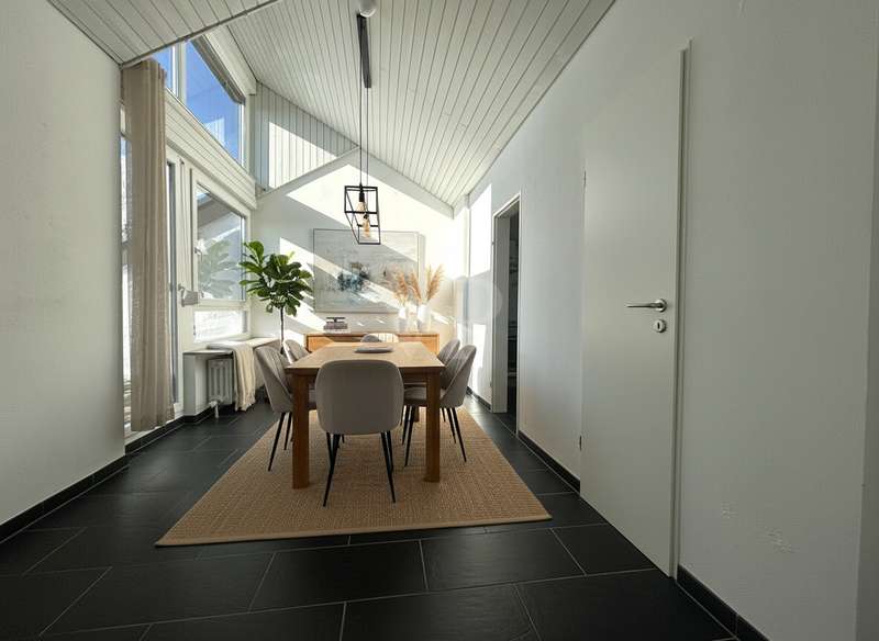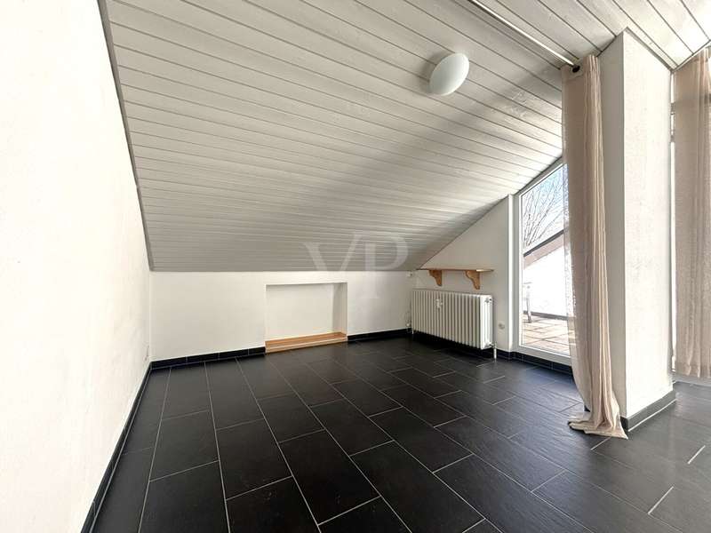 This well-kept top-floor apartment offers you a functional and well-designed floor plan on approx. 33.16 m² of living space, which is ideal for singles. The property is located in an apartment building that was completed in 1969 and has been regularly maintained and modernized since then. The central area of the apartment is the open-plan living, dining and sleeping area. Cleverly placed windows allow plenty of daylight into the room and create a pleasant living atmosphere. The fittings also include an electric roller shutter in the living area. The adjoining kitchen offers plenty of options and is equipped with a pantry kitchen. The daylight bathroom is also in a well-kept condition. White sanitary facilities and tiles lend a timeless and neat appearance. The highlight of the apartment is the beautiful, south-facing roof terrace. Here you can enjoy the magnificent view and cozy hours of sunshine in complete privacy. The most important modernization measures include the installation of a new heating system in 1996, the renewal of the roof in 2005 and the replacement of the windows and patio door in 2006. New tiles were laid in 2013 and the living space was upgraded both visually and practically. An outdoor parking space in front of the building rounds off the offer. The apartment is in a quiet location on the outskirts of the village. Shopping facilities, schools and service providers for daily needs are within easy reach. Whether as a compact primary residence, functional second home or as a home for commuters - this property offers a wide range of possible uses. We would be happy to provide you with further information and arrange a viewing appointment. Take the opportunity to see the benefits of this property for yourself.