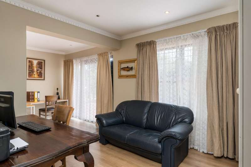 3 Bedroom house with a Flatlet in a Security Estate for sale With the Flatlet on the opposite side of the house, this is perfect if you need extra income or a stay in nurse. The property is on one level with a spacious kitchen which flows into the open plan lounge and dining room. From the lounge it flows into the braai room onto the stoep where you can enjoy the heated swimming pool and a low maintenance, private garden. All three bedrooms are spacious, with a sunny north facing main bedroom with an ensuite bathroom. On the opposite side of the property, you will find a spacious office with doors leading outside, perfect for working from home. Then there is a drywall separating the income generating flatlet from the rest of the house. The flatlet is a generous size with the kitchenette and extra storage cupboards separate from the spacious bedroom, it also have it's own outside area. This property is situated in a cul de sac, which means peace and no traffic but you also have very easy access to the roads leading to Stellenbosch & Cape Town International Airport.