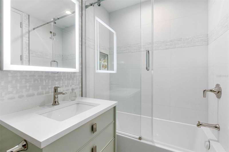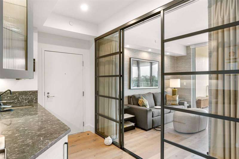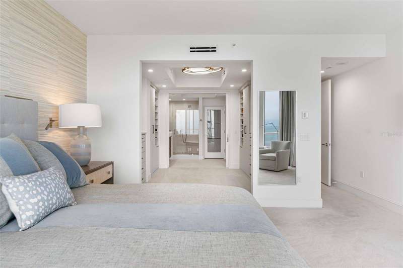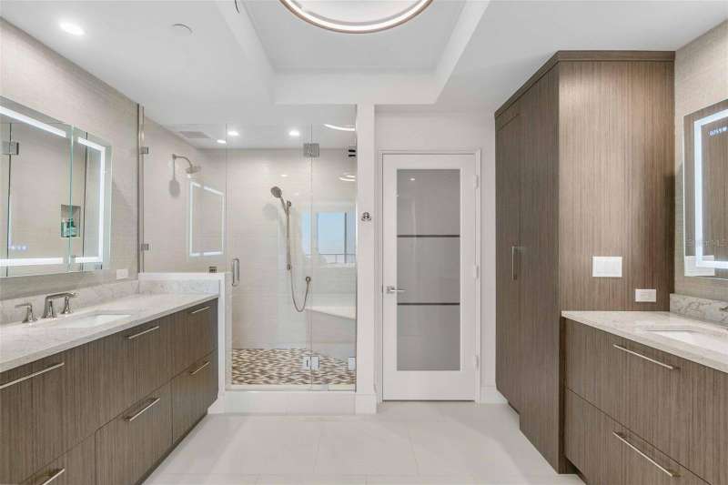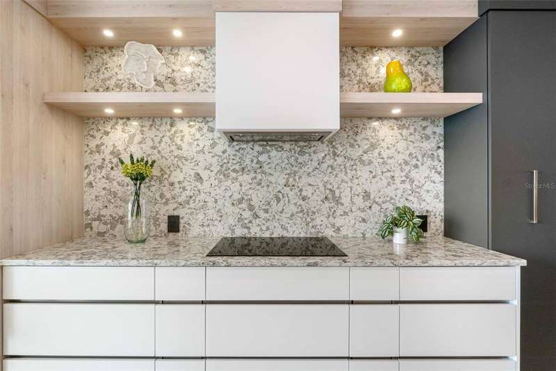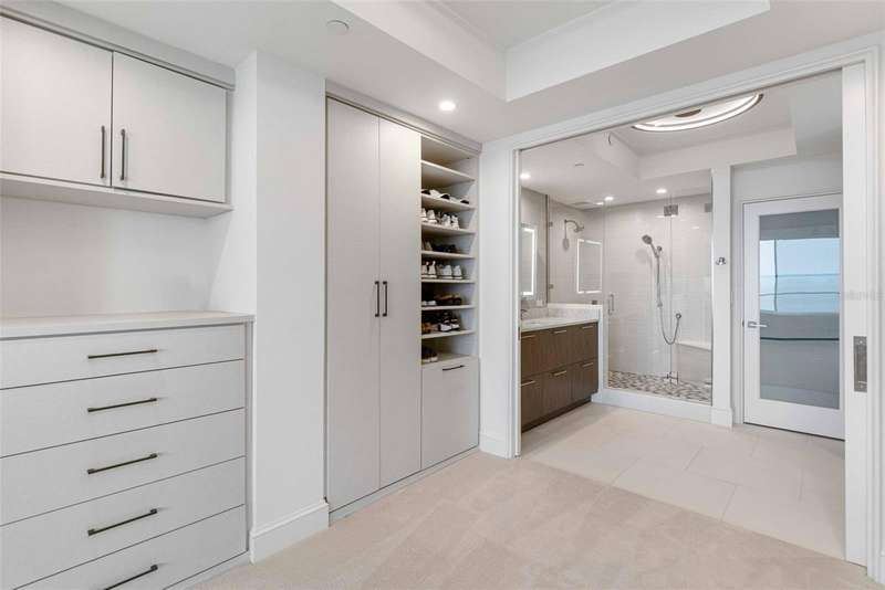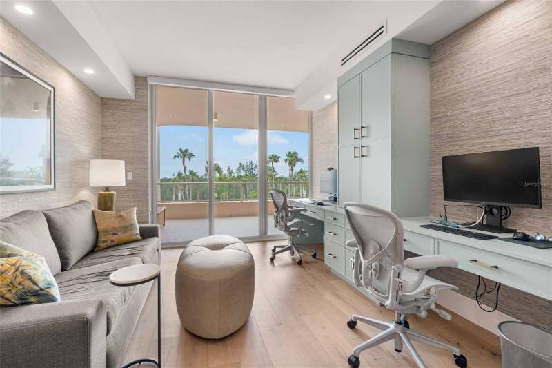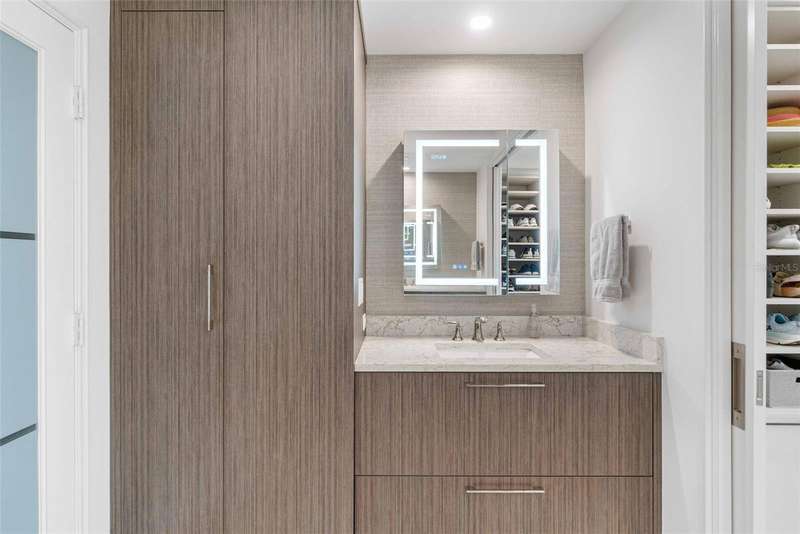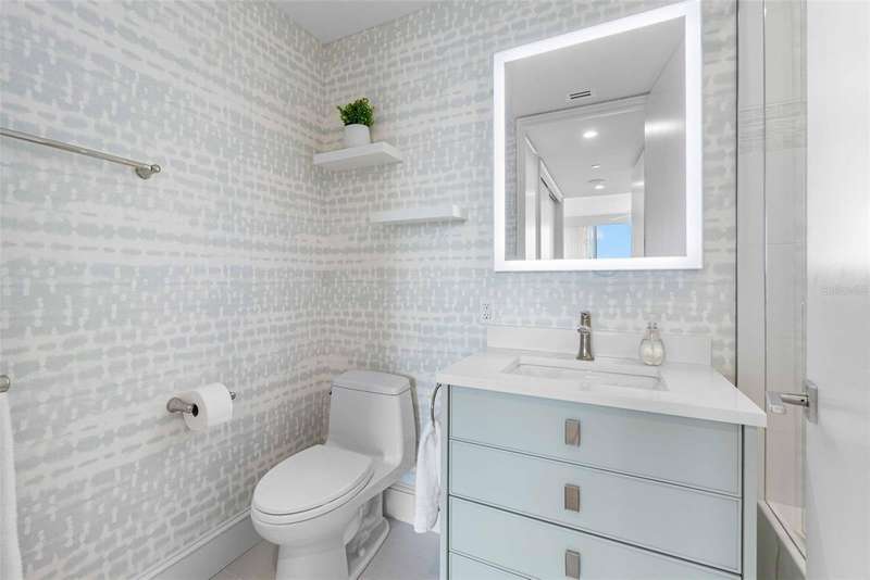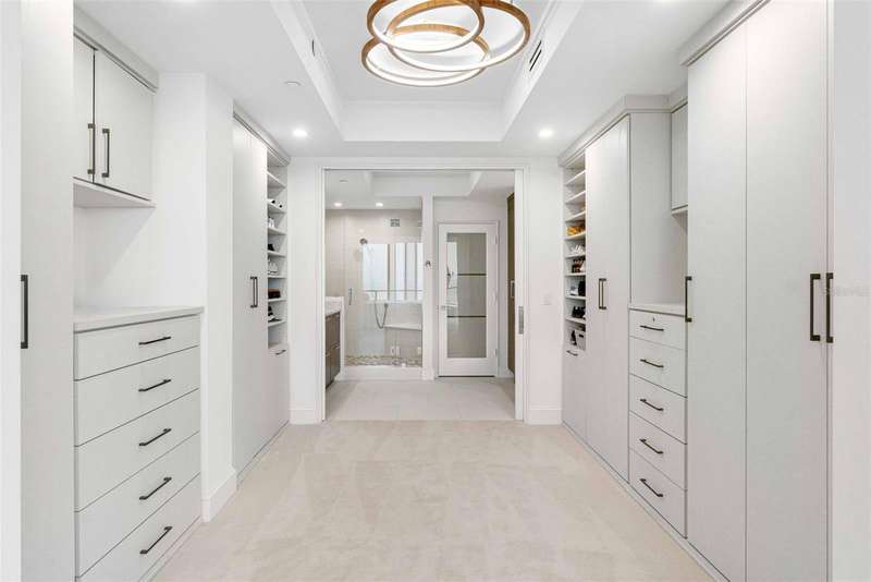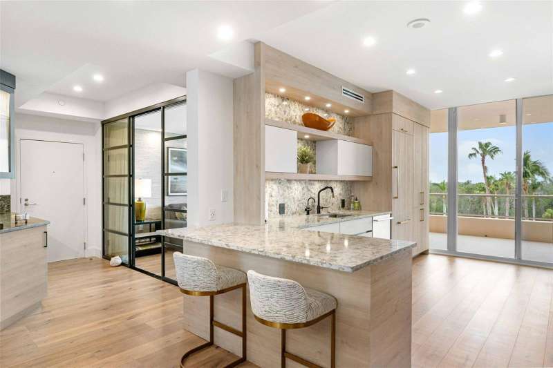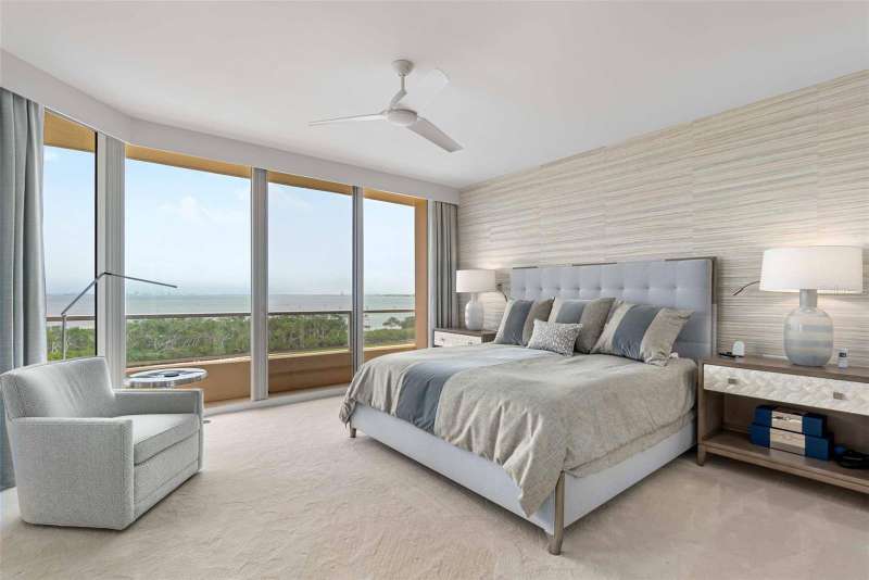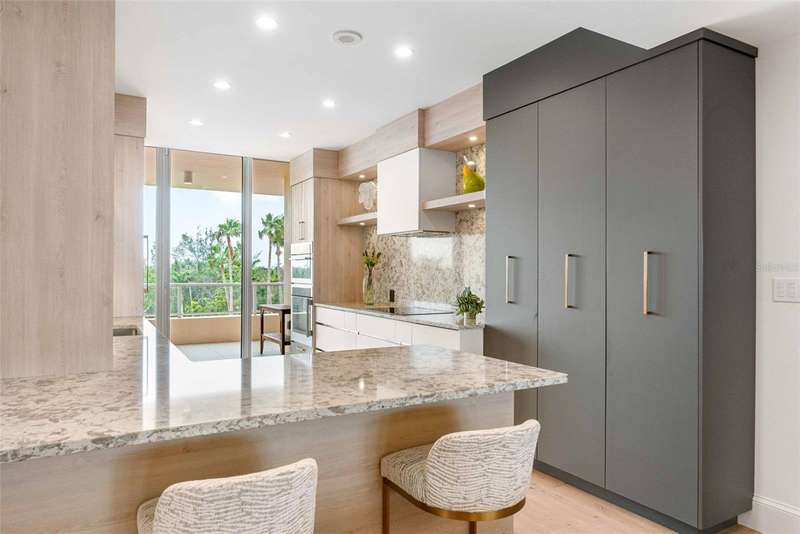Be wowed by the $800,000 renovation of this stunning Cayman unit in coveted building 3 of the desirable gated Grand Bay community in Bay Isles on Longboat Key. Savor the mesmerizing full Sarasota Bay views, highlighted by boats arriving in the Marina, the manicured grounds of the Longboat Key Club Blue course 9th hole, and downtown Sarasota in the distance. Discerning buyers will appreciate the quality, attention to detail and expense evident in this must-see renovation by Renovation SRQ. Demolished to the studs in 2021, this re-designed home offers an open floor plan, where kitchen and dining areas flowing seamlessly. The new design, coupled with artful use of captivating color choices, creates a wonderful, soothing space on trend with modern lifestyle. Included in the renovation are hardwood composite floors in all rooms (aside from bedrooms); a relocated kitchen with new cabinetry, counters, back splash, Thermador appliances, plumbing/piping/ and electric wiring; a new Wet Bar with sink/fridge and freezer; Lutron Caseta lighting with cove lighting in the dining room, gorgeous lighting fixtures and lighting scenes throughout. Lutron Shades on East side of the unit and black out shades in the primary bedroom provide privacy and comfort throughout the day. The stylish dressing area in the primary bedroom has been substantially enlarged and intelligently outfitted with new cabinetry, opening into a spacious bath, with dual vanities, shower and filtered outside light. Extra sound-absorbing insulation was installed in the walls abutting neighbors. The 3rd bedroom presently is used as the office/den with glass doors and privacy shades. Balcony doors were completely rebuilt with new screens that slide easily and seal tightly. New beautiful contemporary floor tiles were installed on both balconies. One parking space is conveniently located next to elevator access and has no neighboring car. This 2nd floor unit allows for easy access for pets and to the street. Residents of Grand Bay are invited to enjoy an exciting host of amenities, including 24/7 guard gates as you enter both Bay Isles and Grand Bay, a clubhouse, two community pools and spas, a large fitness center with saunas and Har-Tru tennis courts. Enjoy the conveniences of Bay Isles, with its miles of walking paths, and nearby shopping. And relax at the private, gated Bay Isles Beach Club directly on the Gulf of Mexico, with its locker rooms, barbecues, volleyball nets, covered picnic areas and an expanse of sandy white beach shared only with other Bay Isles owners. Do not miss this opportunity --begin your Longboat lifestyle today.