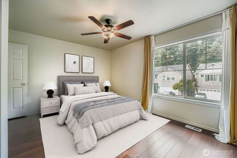 Newer 50-year roof and brand new furnace offer peace of mind in this spacious 5-bedroom, 3.75-bath home! Hardwood floors throughout, upgraded stainless steel appliances, and a pantry add comfort and style. Perfect for multi-generational living with a main-floor bedroom and 3/4 bath. Enjoy a large bonus room upstairs, a generous primary suite with a 5-piece en suite, and plenty of space for everyone. Fully fenced yard, 2-car garage, and located on a quiet dead-end street near a community park, trails, shopping, and dining. A true gem with room to grow!