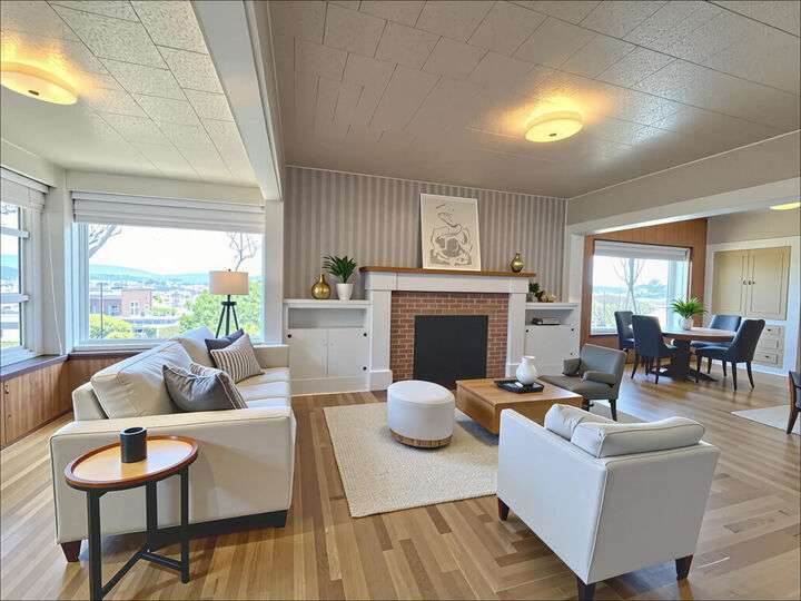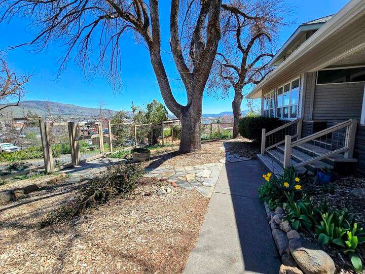 Charming Craftsman-style home with Lake Ewauna views and a possible separate apartment, home office or bonus room. Built in 1900, this lovingly maintained residence exudes timeless charm, featuring original architectural details combined with contemporary updates that enhance its appeal. Featuring 2 bedrooms, 1 bath, and an updated sun-filled kitchen that preserved it's vintage charm. Fully fenced yard that has been beautifully landscaped with a variety of fruit trees, berries and raised bed planters. Also features a large deck off the kitchen for outdoor entertaining. An original carriage house/garage offers a separate space above for a possible apartment or home office. This home offers a unique blend of historic elegance and modern convenience, making it an exceptional choice for those who appreciate the beauty of the past while enjoying the comforts of the present. Don't miss the opportunity to own a piece of history. House: 1,267sf, Basement: 1,080sf, ADU: 528sf
