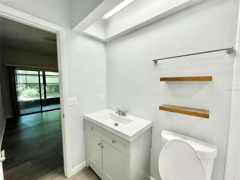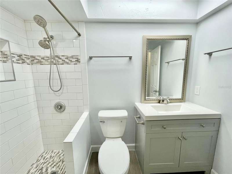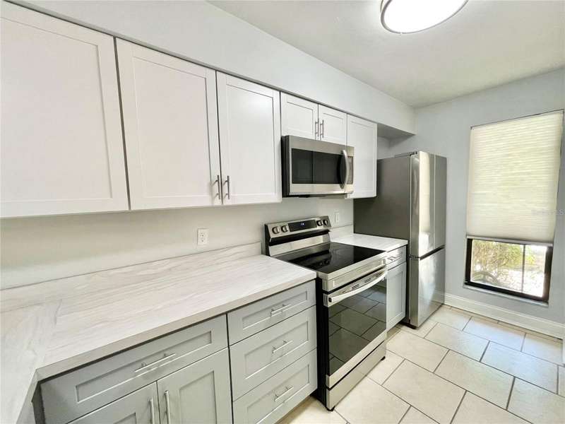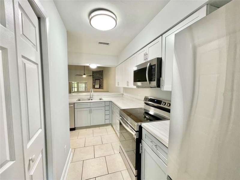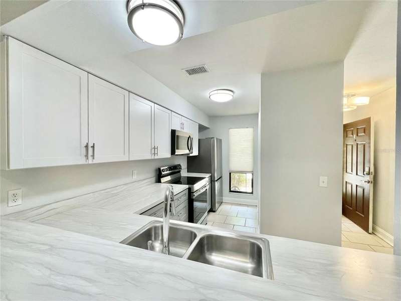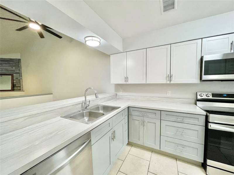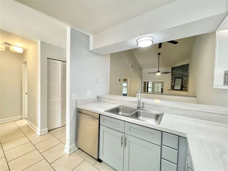 Cleaned and ready to move in! Ground floor, corner unit available now in Pebble Creek Villas! Take a look at this one story end unit with 2 bedrooms and 2 baths that was remodeled top to bottom. Updates include luxury vinyl plank flooring, interior paint, new bathroom vanities, new tile shower in guest bathroom, new kitchen cabinets and counter tops, stainless steel appliances and more! Rear porch has screens and vinyl windows for all weather use. HOA fee of $415 per month includes exterior maintenance (roof), community pool, pavilion and maintenance of common areas. Unit comes with two parking spots and in conveniently located across from visitor parking spots, the pavilion, pool and mail center. This single family attached unit can be financed with FHA, VA and conventional loans. Great location walking distance to Publix, medical offices, banks and all kinds of shopping and dining in Thornebrooke Village. Currently zoned for Littlewood Elementary, Westwood Middle school and Bucholtz high school. Quick closing and occupancy available.