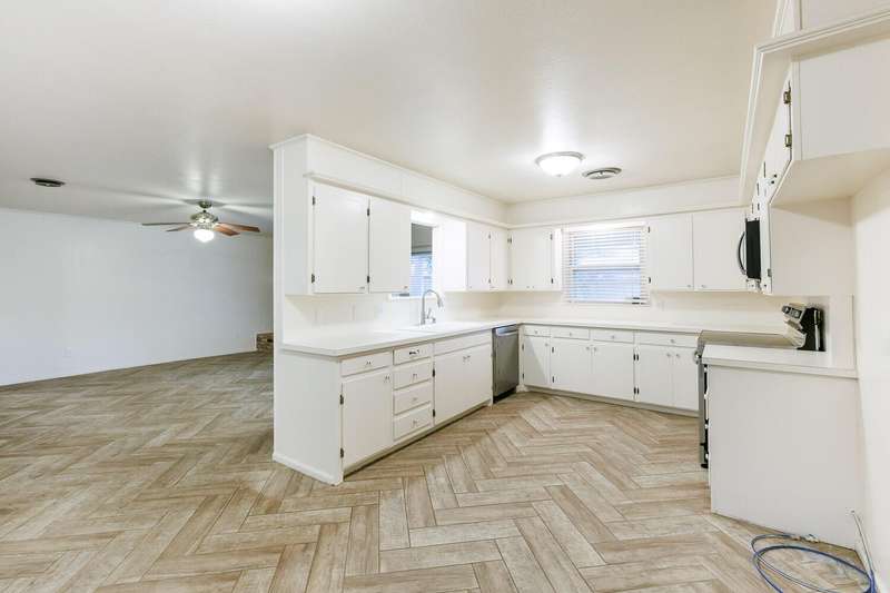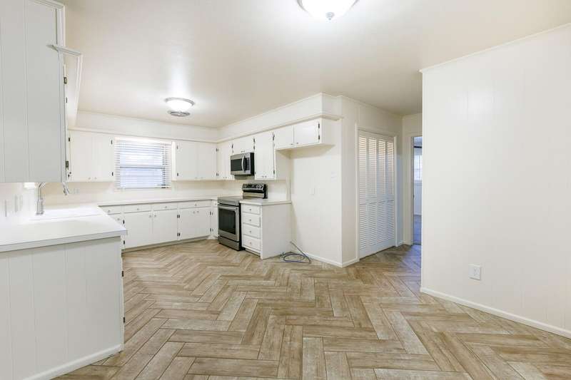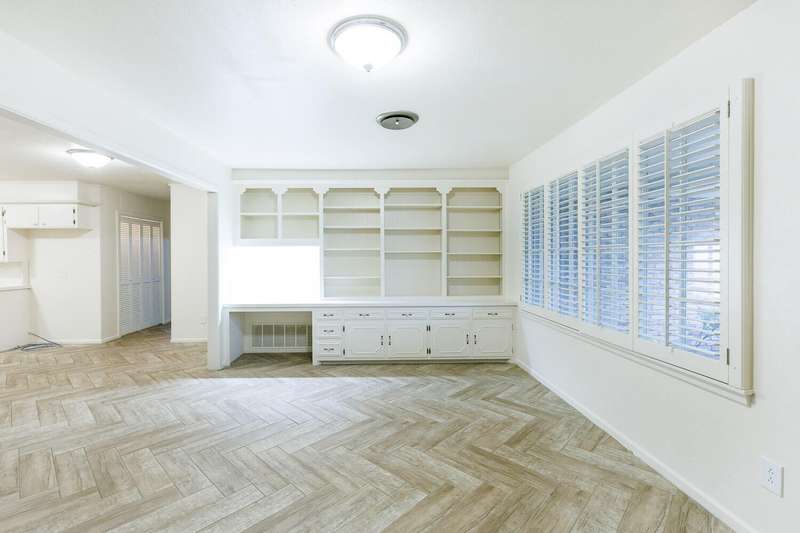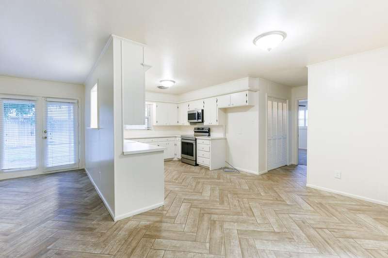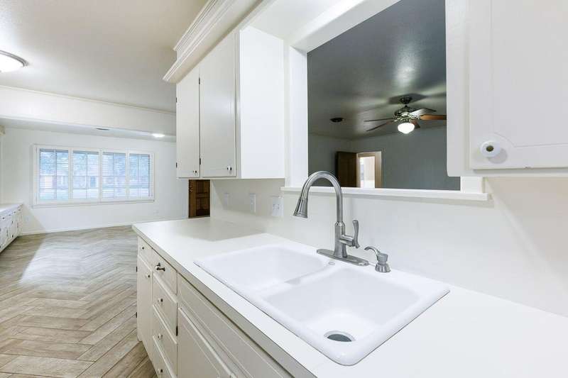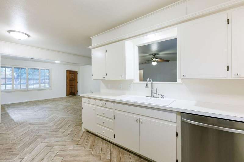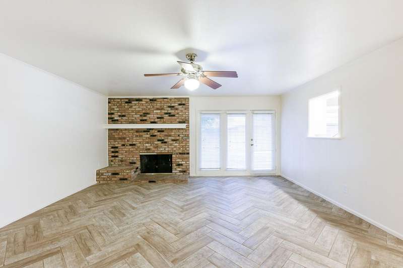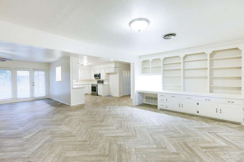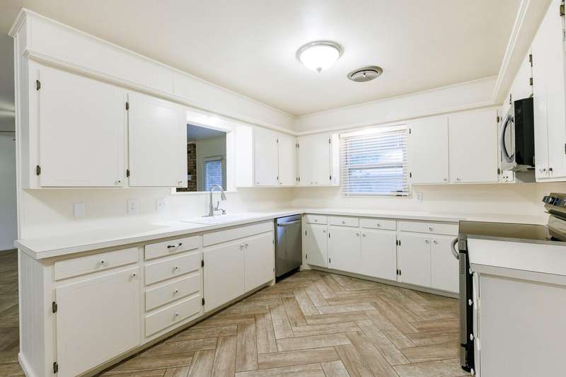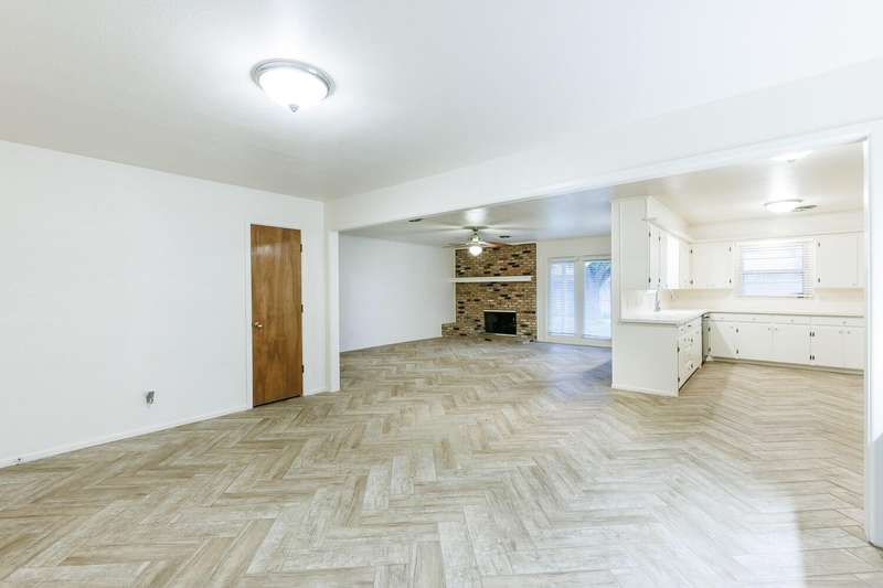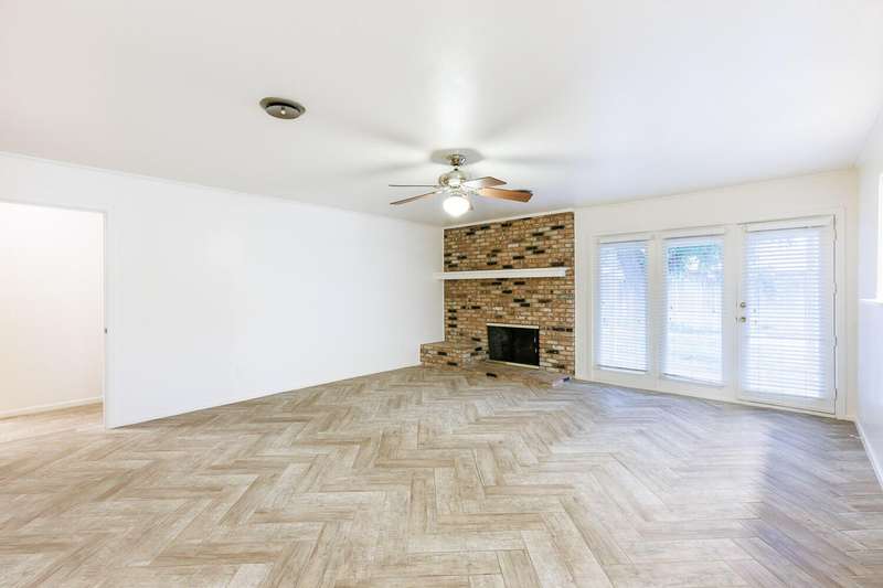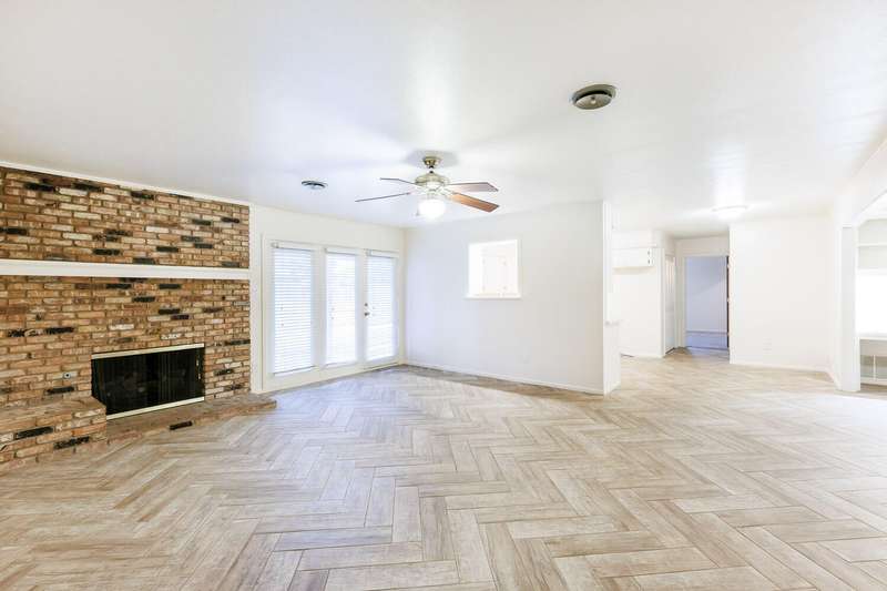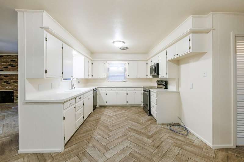 Melonie Park Find! This delightful home sits on a corner lot with side-entry garage~ Clean and Move-In Ready with Fresh Paint! Open and inviting...spacious living area with fireplace, gas logs~ Large dining space with expansive built-in...perfect for storage and displaying your favorites~ Kitchen offers abundant cabinet and counter space, stainless appliances...and a little nook that would make the best coffee bar! Stylish tile flooring in living spaces and NEW CARPET in bedrooms~ Shutters Throughout! Primary bedroom is isolated with ensuite bath, separate shower~ Two additional bedrooms and nice second bath, tub/shower combination~ Great storage in every room! Enjoy outdoor living with covered patio and nice trees front and back...SHADE! Garage with handy storage/workshop area~ Melonie Park features the highly rated Miller Elementary plus super green spaces~ Enjoy peace of mind with this home...seller will provide $550 credit for one year home warranty...plus plumbing has been inspected, report available! This is a find...in a one-of-a-kind neighborhood...Welcome HOME!