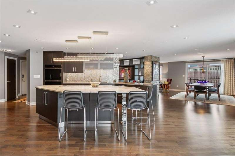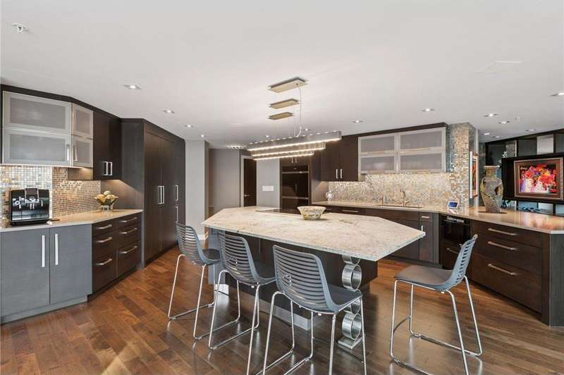What an incredible property! 2 properties were combined and taken down to the studs in a top-to-bottom renovation that created one amazing property. This 3200 sq. ft condo has stunning city and skyline views from every window and deck! From sunrise to sunset this property stuns with the panoramic views. This property features 3 bedrooms, 4 baths and a 3 car heated, underground, secured parking with storage, a teen suite or guest wing of the home which has 2 bedrooms (one with ensuite bath, plus another bath, a family room, and a custom glass door to close off this area for privacy or quiet. This is the perfect teen suite wired with gaming consoles). The main area of this home is finished with walnut flooring and eucalyptus woods, a full laundry room complete with built-ins, and the kitchen features high end Wolf, Meile and Sub-zero appliances! Luxury Primary suite with STUNNING bath, walk-in closet and built-ins galore. This million dollar property is priced well below replacement cost because these sellers are motivated and READY TO SELL and close by the end of October. All reasonable offers considered. Substantial discount at listing price for your discerning buyer. 24 hour security building, all common areas and front entry recently renovated, Automated shades, temperature controlled shower system, plus an amazing sound system, zoned heating and AC, 1 gig speed internet, art lighting and so much more. Qualified buyers only please.