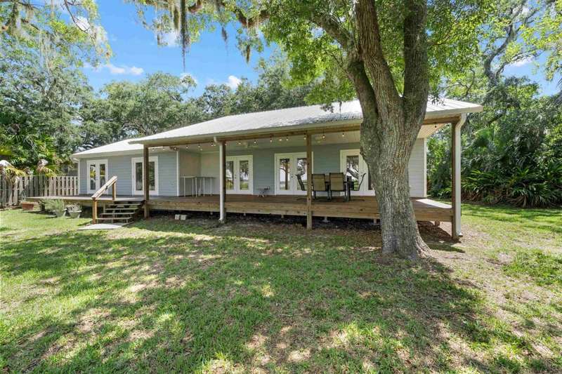 Discover an exceptional opportunity on Crescent Beach. Ideally situated along the scenic Intracoastal Waterway, this rare 1.4 acre property has been thoughtfully preserved in its natural state. Boasting 110 feet of premier water frontage and deep-water access, it???s perfectly suited for your custom dock and vessel. The property features two or more buildable lots, offering flexibility for a variety of development options. Experience the best of Florida living in this charming, well-built waterfront cottage. Set on a sturdy pier and beam foundation, it features an open-concept design and is also ideal for multigenerational living. Embrace the outdoors in your own backyard???unwind on the covered porch, lounge by the water, or hop on your boat for a day on the water. Perfectly situated, this home offers convenient access to both the beach and the Intracoastal Waterway. Notable upgrades include impact-resistant windows, a modernized kitchen and bathrooms, durable LVT flooring, a 50-year galvanized metal roof, dual Carrier HVAC systems, and updated plumbing and electrical throughout. The property also features a solidly constructed open-span garage/workshop, an outdoor shower, full RV hookup, a tankless gas water heater, and gas appliances including a range and dryer. Both structures have remained flood-free through every storm, thanks to the property???s elevated position above surrounding parcels. Enjoy breathtaking sunsets over the protected Moses Creek Preserve. Ideally situated near two boat ramps with easy access to deep water, the home is safely tucked away on a non-ICW channel, offering both convenience and protection. Seize the opportunity to make this coastal gem your own!