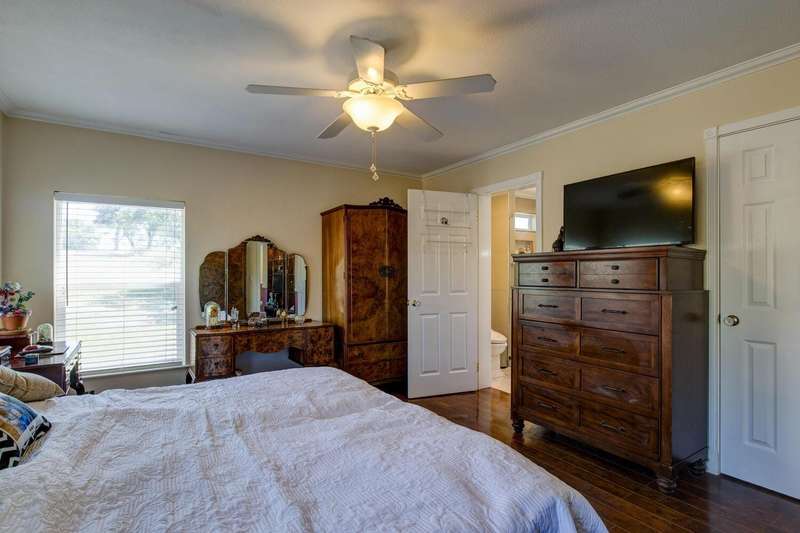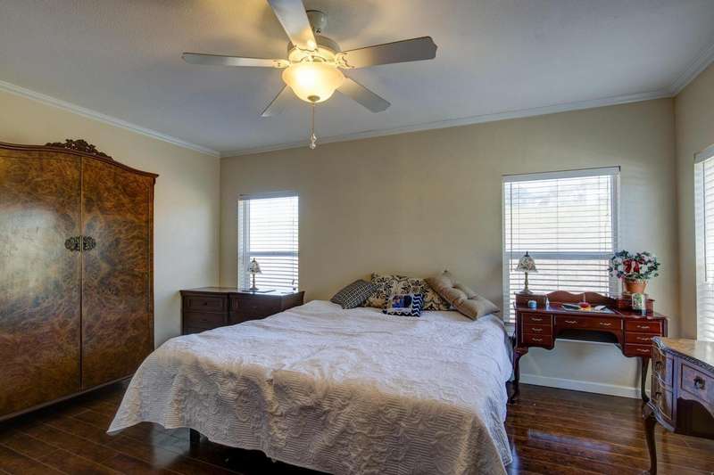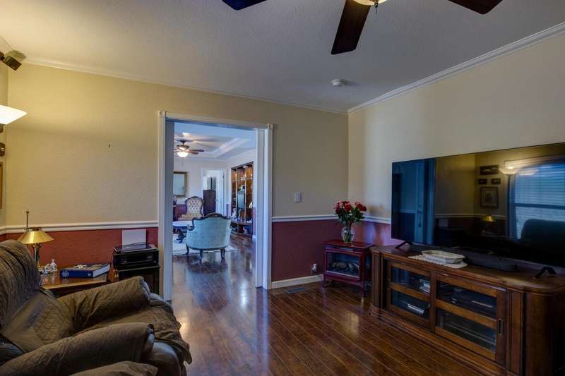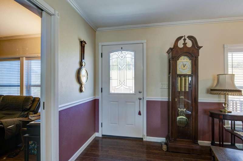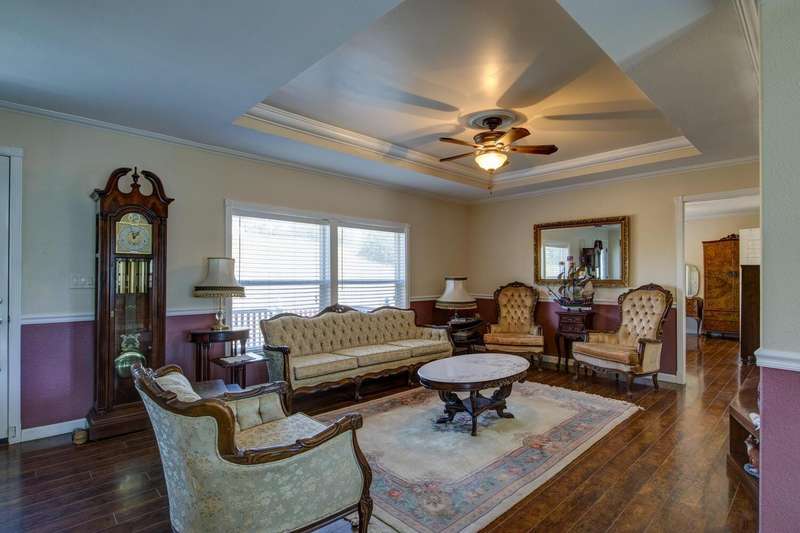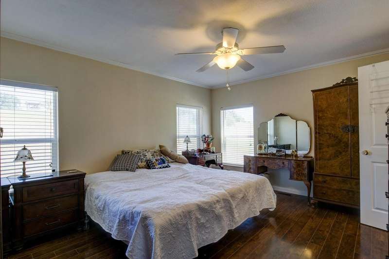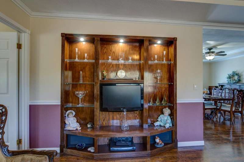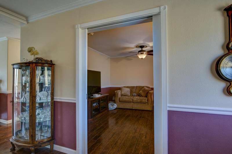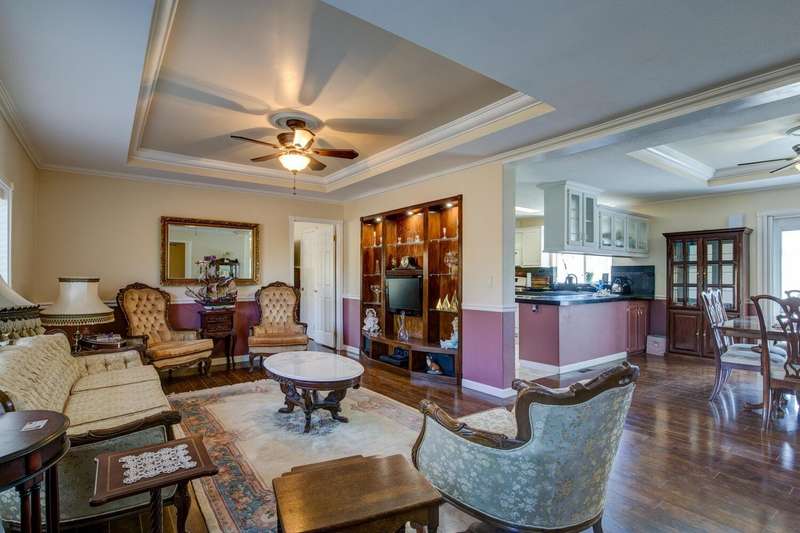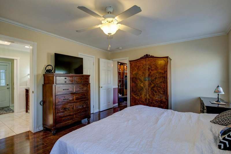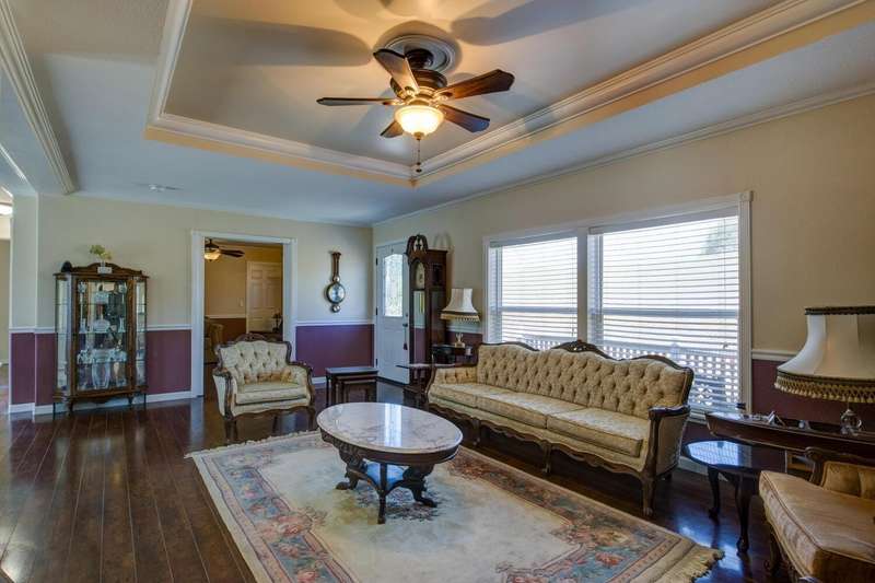 Elegant, stylish and well-kept home with numerous custom touches. Situated on 1.7 acres of land with a refreshed driveway. Beautiful seamless wood flooring, coffered ceilings as well as a spacious custom kitchen with open face uppers, dual fuel stove, a pull-out pantry cabinet and tile countertops. There is a formal dining room with French doors leading to the backyard. For comfort and functionality, we have a walk-in shower in the main bath, central heat/air, whole house fan, large closets and indoor laundry. A circular drive and two storage sheds complete the package. Community features fishing ponds, parks, a playground, swimming pool/exercise room/library/rec room at the HOA facility as well as miles of equestrian/pedestrian trails to use. Two lakes nearby for your recreational pleasure!