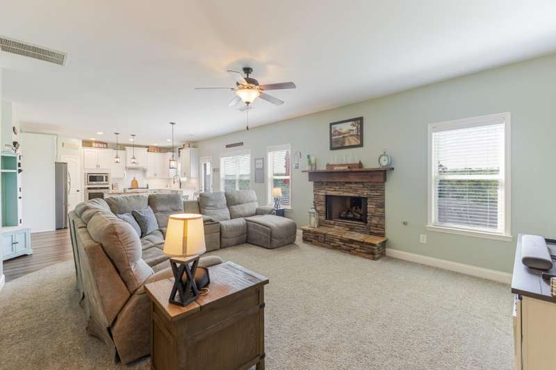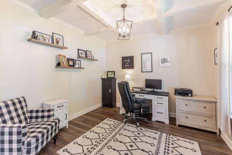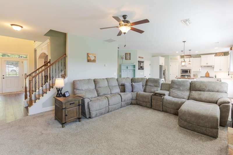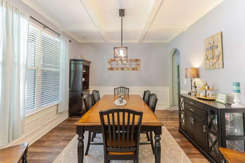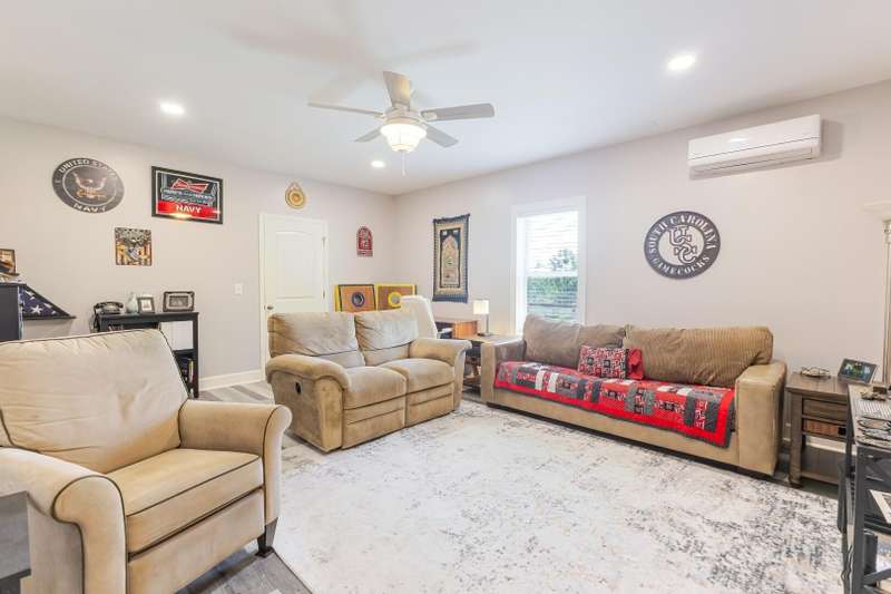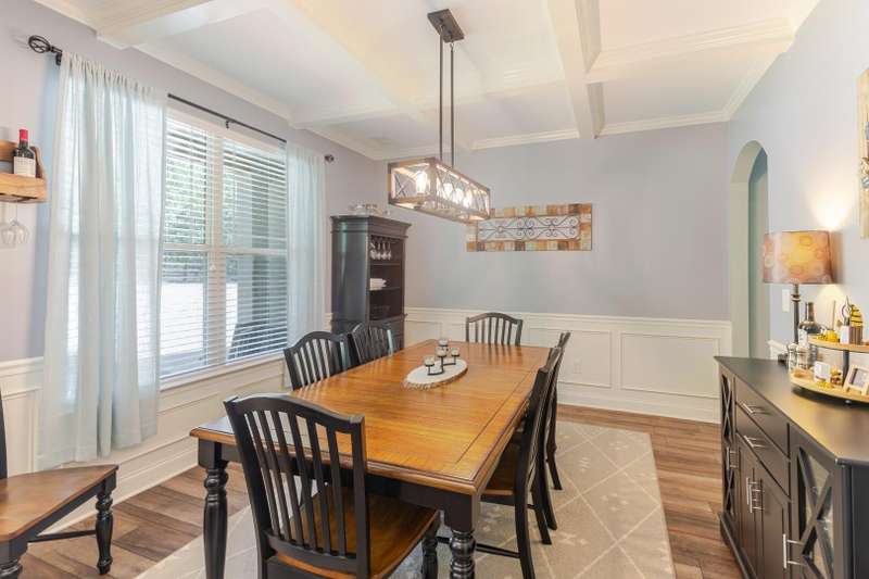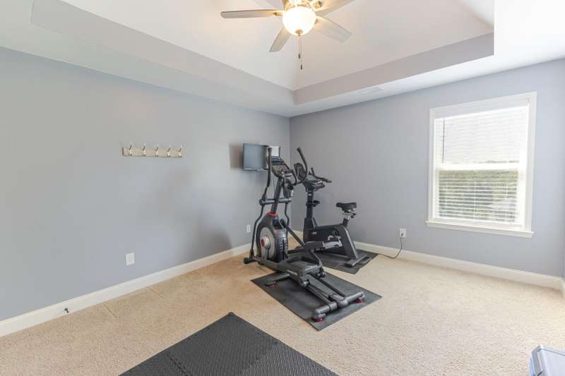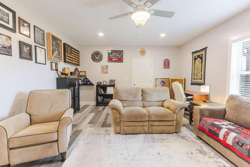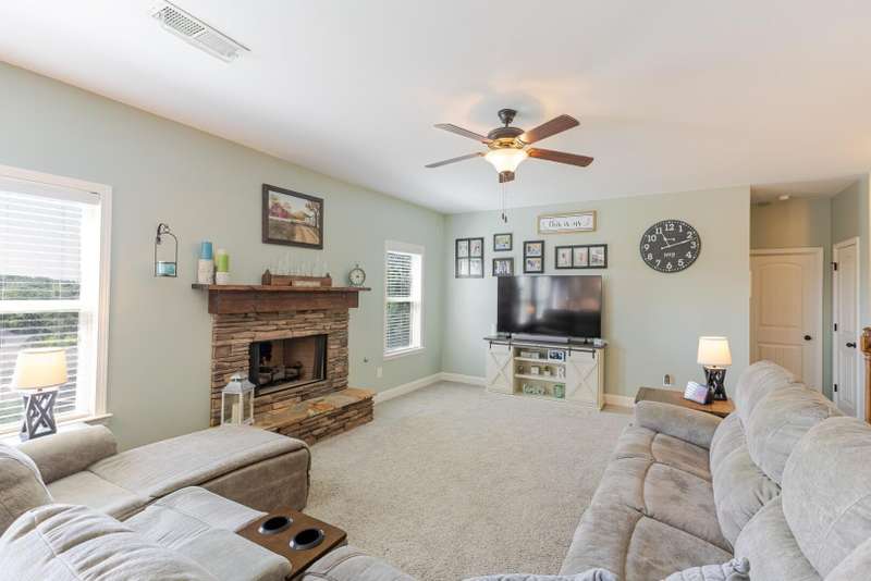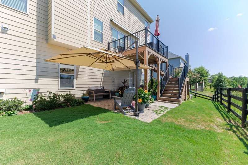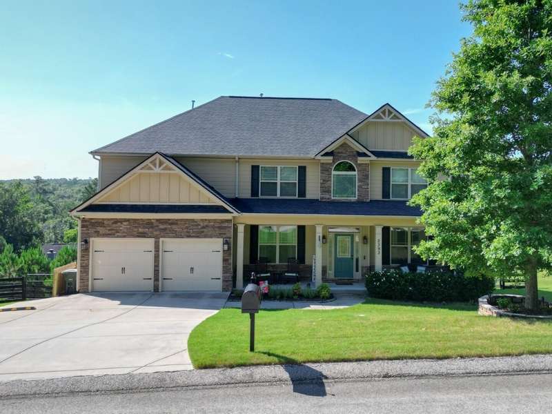 Welcome to 2393 Chukker Creek Rd in Aiken, SC, a beautifully upgraded 5-bedroom, 4-bath home with a finished walk-out basement offering versatile space for families, entertaining, or multi-generational living. From the moment you arrive, the inviting front porch sets the tone, a perfect spot to relax with sweet tea while greeting neighbors. Step inside to find a formal dining room and flexible front room with coffered ceilings, adding both elegance and functionality. The spacious family room features a gas fireplace with a custom mantel, while the adjacent eat-in kitchen is a showstopper with upgraded white quartz countertops, farmhouse sink, butcher block island, subway tile backsplash, and premium KitchenAid appliances including a gas cooktop, oven, and dishwasher. Just off the kitchen, step outside to the upgraded Trex deck with aluminum rails and a retractable awning, offering peaceful treetop views perfect for dining, entertaining, or relaxing. A guest bedroom and full bath on the main level make hosting easy. Upstairs, the primary suite includes a spacious sitting area ideal for a nursery, office, or workout space, a custom closet system, and a spa-like bath with soaking tub and tiled shower with frameless glass. Two additional bedrooms, a loft, and a centrally located laundry room complete the level. Every bedroom includes ceiling fans and upgraded closet systems for comfort and organization. The finished basement expands your living options with a large rec room, private bedroom and bath, wet bar, and a dedicated workshop featuring a utility sink, shelving, and 20-amp circuits, perfect for tools, hobbies, or projects. The walk-out level opens to a private patio with a built-in umbrella stand and a landscaped yard. A new basement HVAC system and whole-house water softener add peace of mind. Additional highlights include an extended driveway, sprinkler system, and active termite and pest monitoring. Enjoy neighborhood amenities including a clubhouse, community pool, gym, walking trails, and a catch-and-release fishing lake. Zoned for Chukker Creek Elementary, Kennedy Middle, and South Aiken High. Conveniently located near shopping, dining, and only 20 minutes from the SRS Main Entrance. This move-in-ready home truly checks all the boxes for comfort, style, functionality, and location