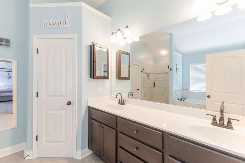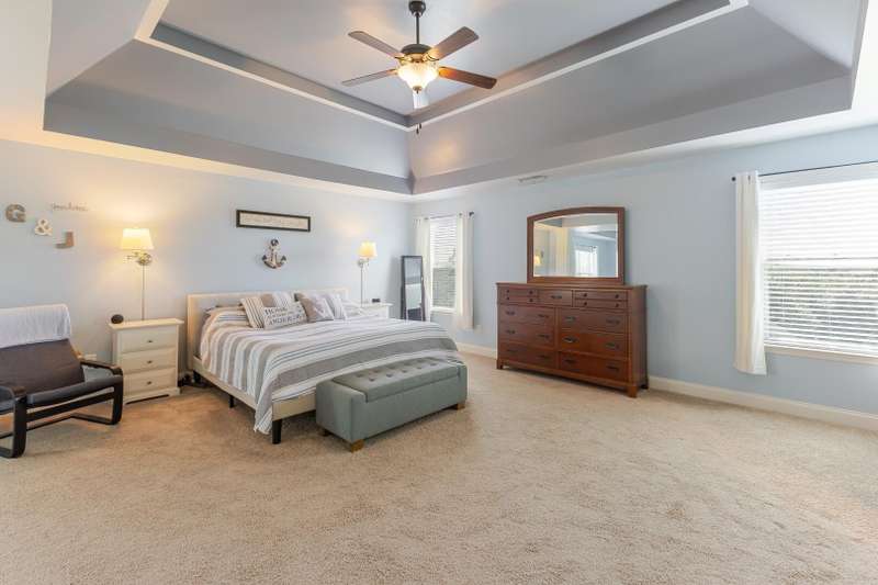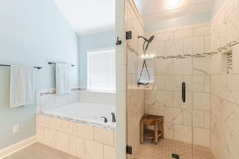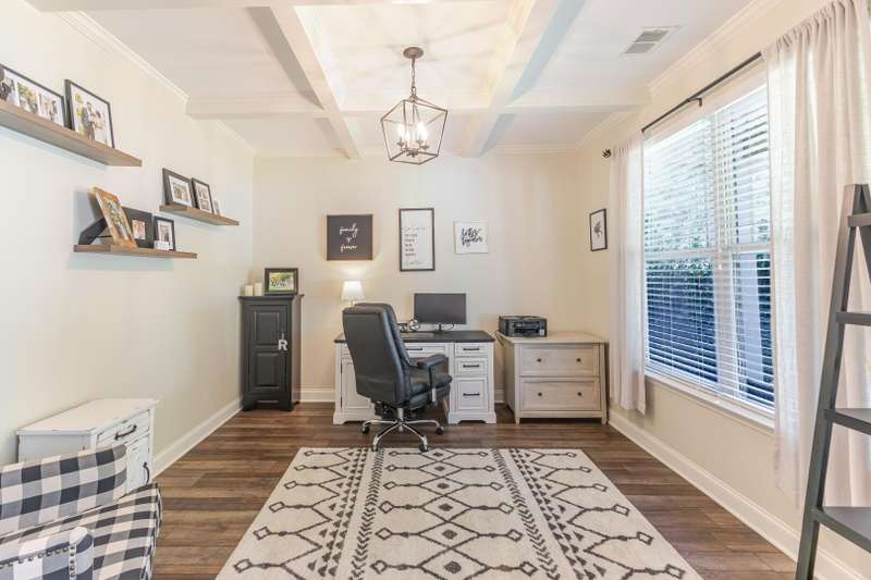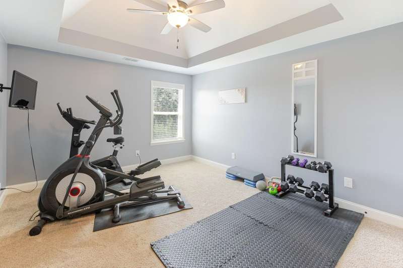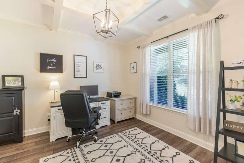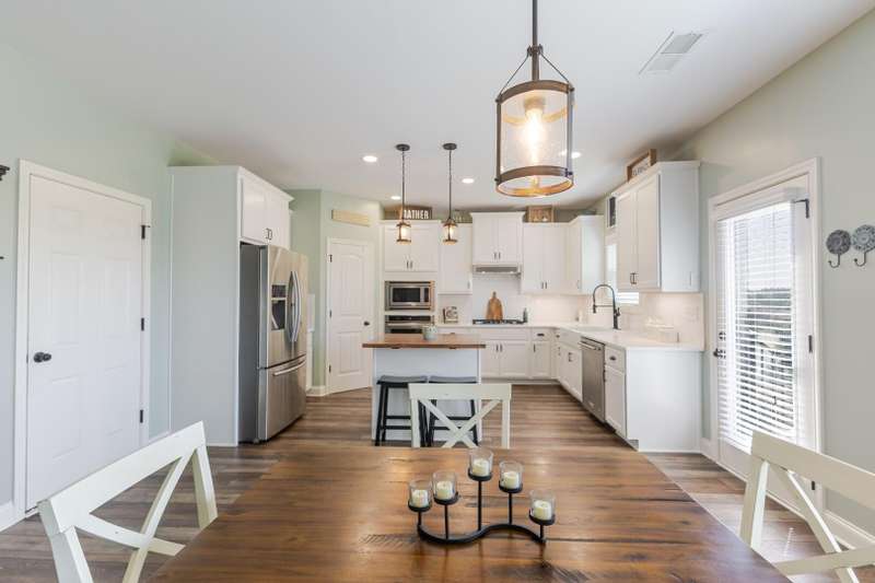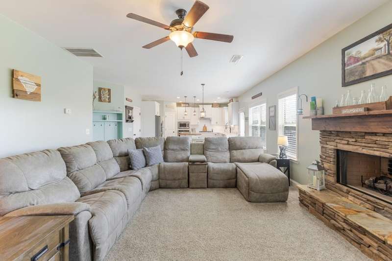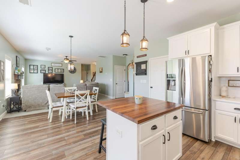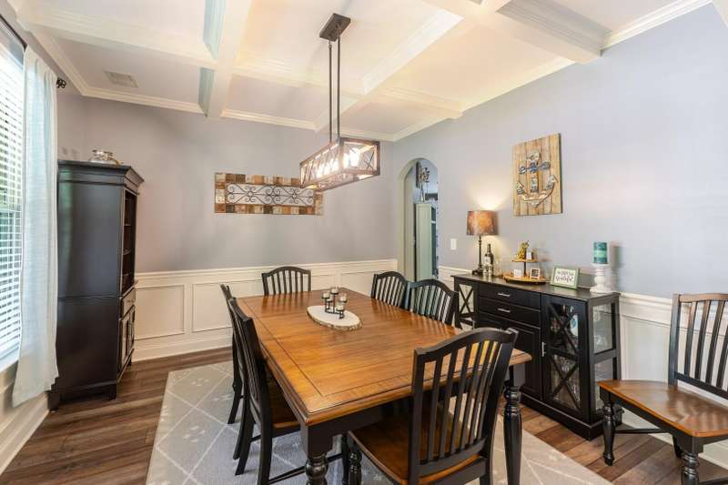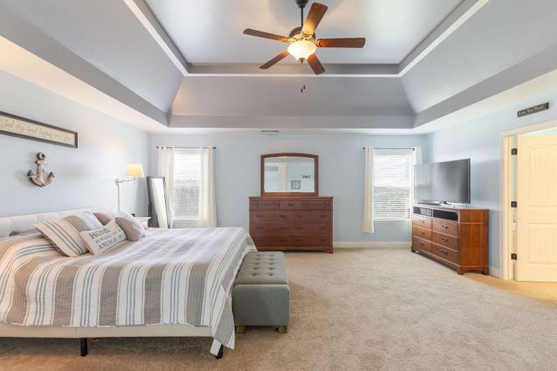 Welcome to 2393 Chukker Creek Rd in Aiken, SC, a beautifully upgraded 5-bedroom, 4-bath home with a finished walk-out basement offering versatile space for families, entertaining, or multi-generational living. From the moment you arrive, the inviting front porch sets the tone, a perfect spot to relax with sweet tea while greeting neighbors. Step inside to find a formal dining room and flexible front room with coffered ceilings, adding both elegance and functionality. The spacious family room features a gas fireplace with a custom mantel, while the adjacent eat-in kitchen is a showstopper with upgraded white quartz countertops, farmhouse sink, butcher block island, subway tile backsplash, and premium KitchenAid appliances including a gas cooktop, oven, and dishwasher. Just off the kitchen, step outside to the upgraded Trex deck with aluminum rails and a retractable awning, offering peaceful treetop views perfect for dining, entertaining, or relaxing. A guest bedroom and full bath on the main level make hosting easy. Upstairs, the primary suite includes a spacious sitting area ideal for a nursery, office, or workout space, a custom closet system, and a spa-like bath with soaking tub and tiled shower with frameless glass. Two additional bedrooms, a loft, and a centrally located laundry room complete the level. Every bedroom includes ceiling fans and upgraded closet systems for comfort and organization. The finished basement expands your living options with a large rec room, private bedroom and bath, wet bar, and a dedicated workshop featuring a utility sink, shelving, and 20-amp circuits, perfect for tools, hobbies, or projects. The walk-out level opens to a private patio with a built-in umbrella stand and a landscaped yard. A new basement HVAC system and whole-house water softener add peace of mind. Additional highlights include an extended driveway, sprinkler system, and active termite and pest monitoring. Enjoy neighborhood amenities including a clubhouse, community pool, gym, walking trails, and a catch-and-release fishing lake. Zoned for Chukker Creek Elementary, Kennedy Middle, and South Aiken High. Conveniently located near shopping, dining, and only 20 minutes from the SRS Main Entrance. This move-in-ready home truly checks all the boxes for comfort, style, functionality, and location