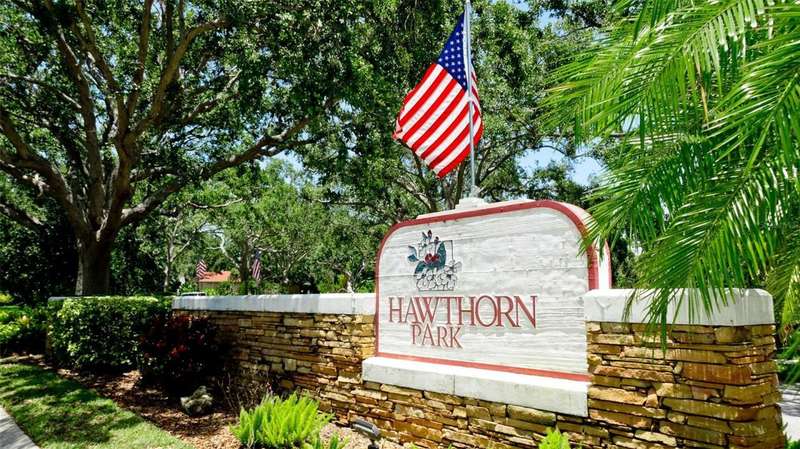 This house comes with a REDUCED RATE as low as 5.625% (APR 6.018%) as of 10/09/2025 through List & Lock. This is a seller paid rate-buydown that reduces the buyer's interest rate and monthly payment. Terms apply, see disclosures for more information.Welcome to your dream home in the well-established neighborhood of Hawthorn Park, where deed-restricted elegance meets modern comfort! This stunning 4-bedroom, 2.5-bath 2-story residence boasts incredible features, including an inviting 2-car garage and a solar-heated caged pool surrounded by a spacious, pavered patio deck-perfect for entertaining. Step inside to discover soaring 18' ceilings in the living room, enhanced by a cozy double-sided fireplace that gracefully separates the living and family rooms. The thoughtfully designed family room seamlessly connects to a chef's kitchen, featuring stainless steel appliances, gorgeous wood cabinets, granite countertops, recessed and under-cabinet lighting, and a sunny breakfast nook for casual dining. Retreat to the primary bedroom on the first floor, complete with a generous walk-in closet and luxurious en suite bath, offering double sinks, a relaxing garden tub, and a separate shower. Upstairs, three additional bedrooms share a well-appointed full bath. Safety and comfort are paramount with impact windows and doors or shutters, zoned AC with a service agreement in place until May 2026, and a roof that's only 6 years old. Enjoy the convenience of a circular driveway and low HOA fees of just $850 semi-annually, covering basic cable, internet, street lighting, and the maintenance of lakes and common areas. All this, just minutes away from the beautiful beaches of Anna Maria Island, the serene Botanical Gardens, and the scenic Robinson Preserve. Don't miss out on this exceptional opportunity-schedule your viewing today!