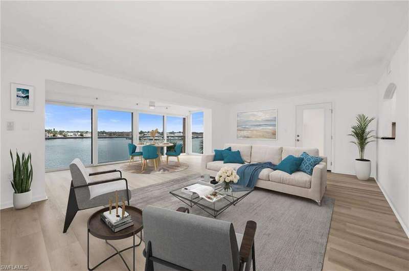A most superior viewscape, deep & wide across Moorings Bay plus a look at the Gulf from the primary bedroom ... a three bedroom in the preferred 02 stack with east, south & west orientation ... this condo has just been refreshed from the flooring to the ceiling fans ... direct access to the beach is right across Gulf Shore Blvd ... a very short walk takes you to the unique shops, galleries & restaurants on the waterfront at Villages on Venetian Bay ... Venetian Cove Club is a gem ... boat slips & kayak storage are available to lease ... lovely bayfront pool ... grilling area ... sundeck on the bay ... Park Shore Beach Park membership is also available.