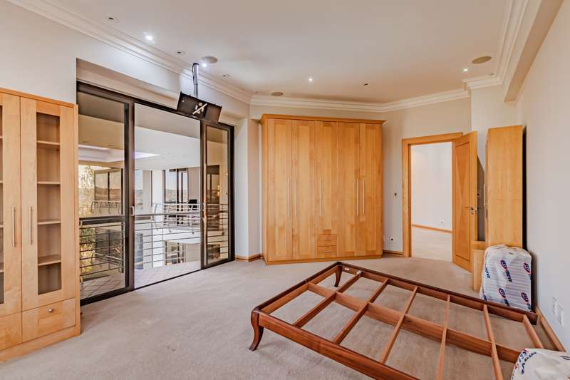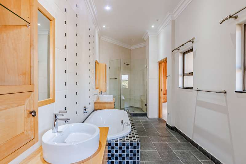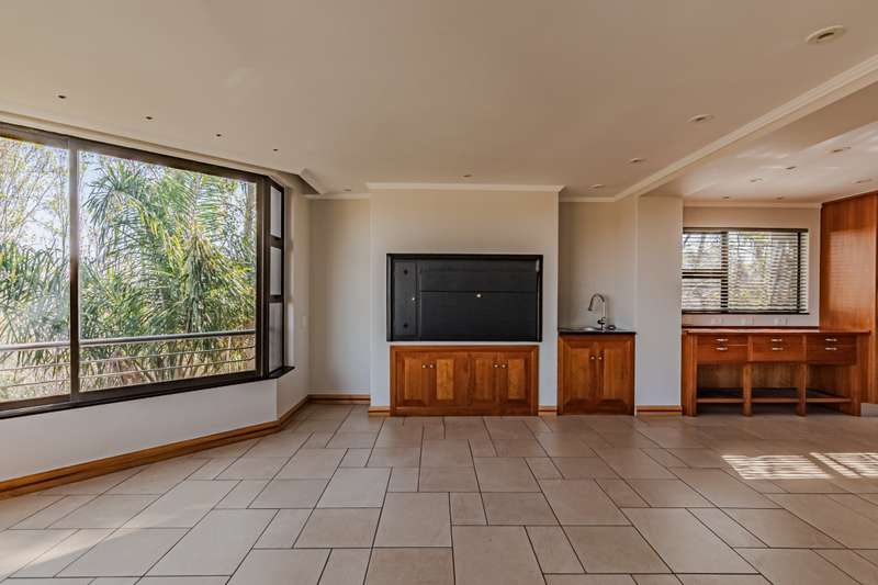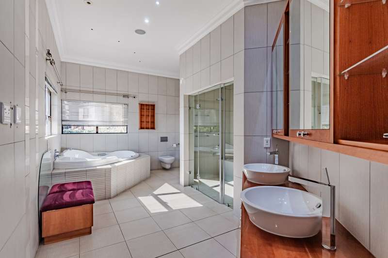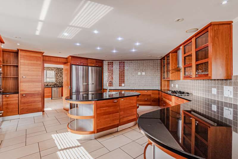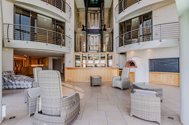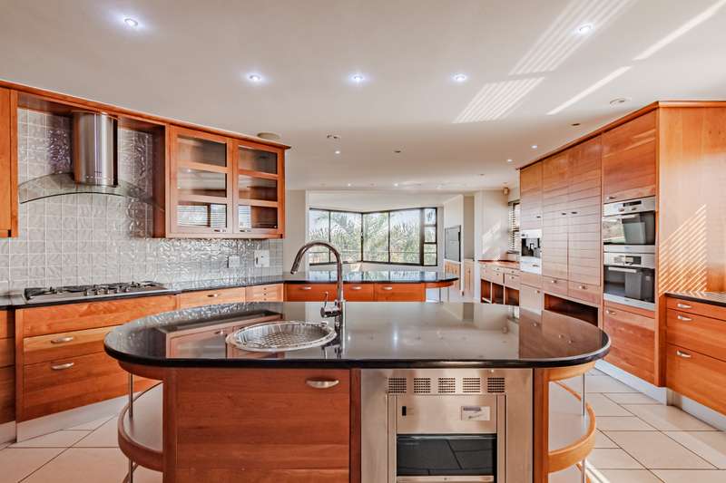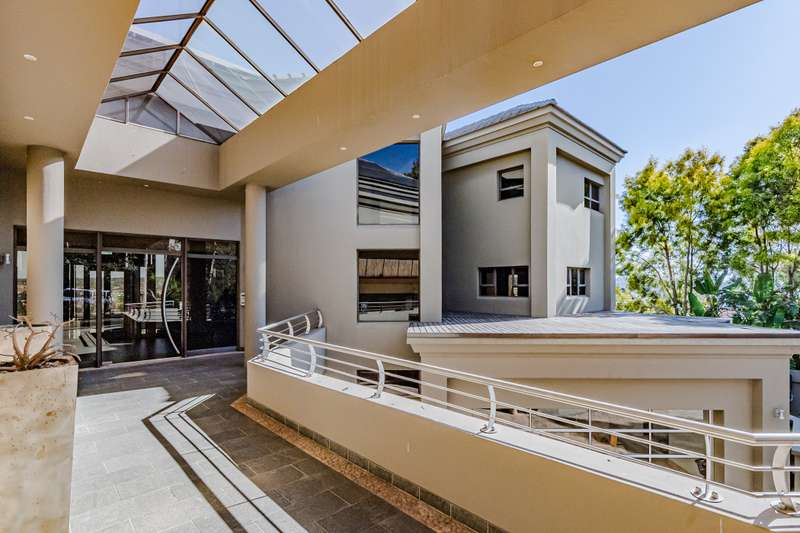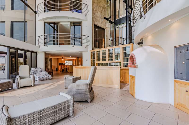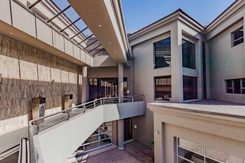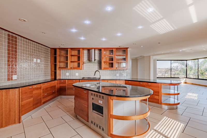 AN EAGLE’S NEST VIEW! LUXURY LIVING FOR A BIG FAMILY This extraordinary luxurious and sophisticated home tick all the boxes! The sophisticated home has panoramic views of the Woodhill golf course and surrounds. This multi-level house has a private wine cellar with an elevator taking you up to all four levels. Level 2 has a front door and direct access from the 3 automated lock up garages (parks 6 cars), gourmet kitchen equipped with Miele appliances and with a separate scullery, Jacuzzi room, triple volume entertainment area with a build in bar, pizza oven, build in braai, stack doors that opens to the sparkling pool with a wooden deck with an eagle’s nest view. On this level is also a guest toilet, large bedroom with en suite bathroom. Level 3 also has a front door, large dining room with a build in fire place, gourmet main kitchen with ample cupboards and fully equipped with Miele appliances, build in coffee machine, microwave, double oven, ice maker, big stove with gas hob plus a separate scullery, on this level is also a large braai room with a build in braai, TV lounge, guest toilet and a large study with build in cupboards. Another bedroom with en suite bathroom. Level 4 has 4 bedrooms. Immaculate main bedroom with a private lounge with a fireplace, kitchenette, walk in cupboards and hotel standard en suite bathroom plus a walk in safe. Bedrooms 2 and 3 share a Jack and Jill full bathroom. Bedroom 4 has an en suite bathroom. Large linen cupboard. This house also offers: 3 staff rooms, 2 of the rooms has en suite bathrooms, plus a separate bathroom. EXTRAS: Surround sound in all the bedrooms and living rooms, air-conditioning units, comprehensive surveillance camera system and to ensure uninterrupted energy and power independence in the house it is fully off the grid supported by a solar power systems, central vacuum system, elevator to enjoy comport and easy living. VIEW NOW!
