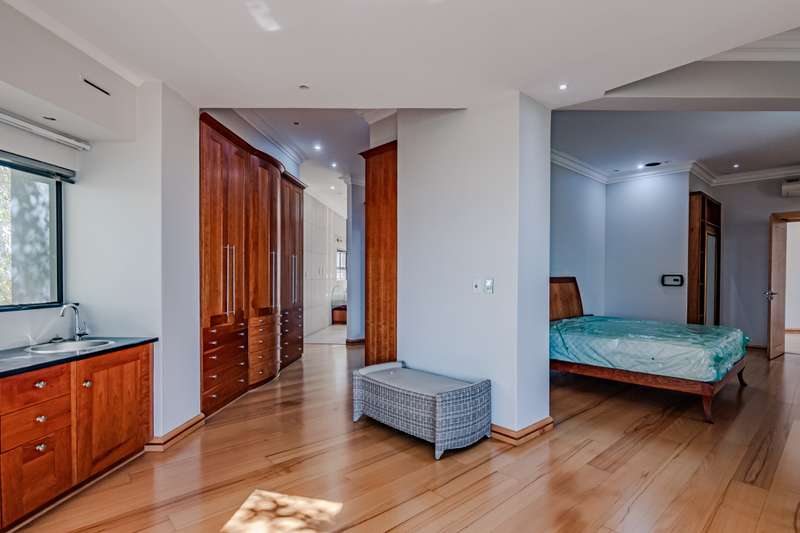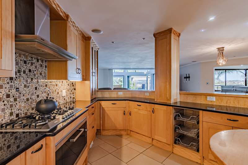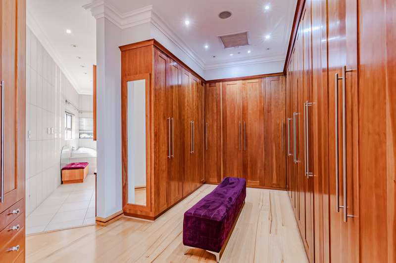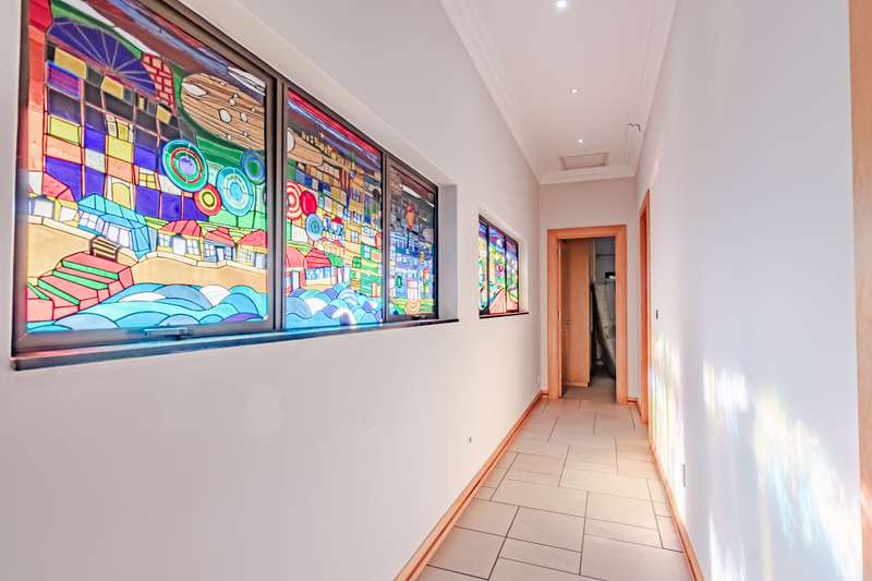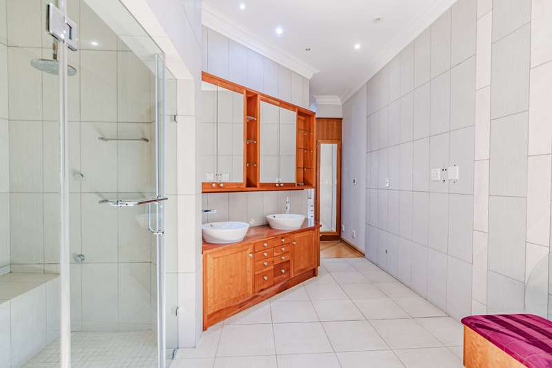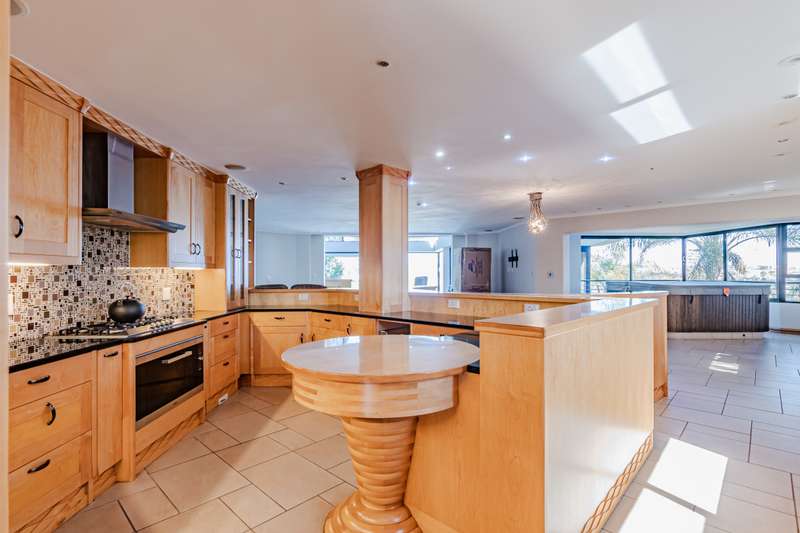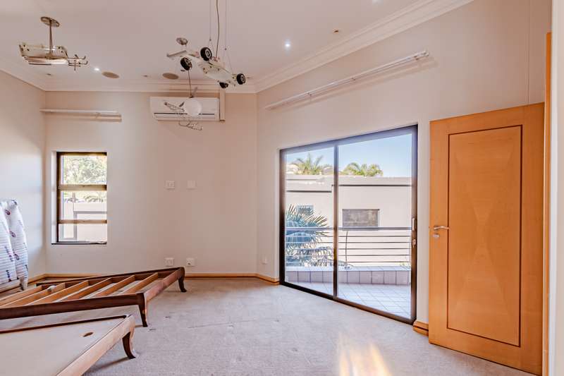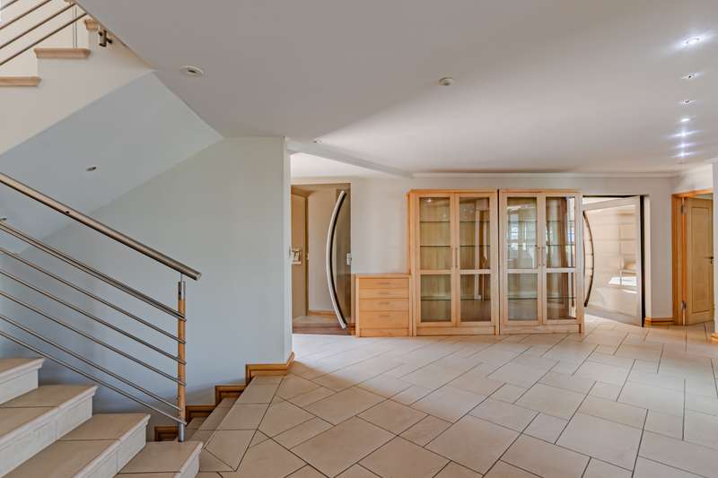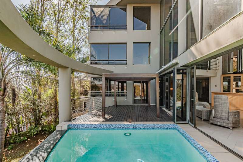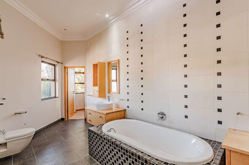 AN EAGLE’S NEST VIEW! LUXURY LIVING FOR A BIG FAMILY This extraordinary luxurious and sophisticated home tick all the boxes! The sophisticated home has panoramic views of the Woodhill golf course and surrounds. This multi-level house has a private wine cellar with an elevator taking you up to all four levels. Level 2 has a front door and direct access from the 3 automated lock up garages (parks 6 cars), gourmet kitchen equipped with Miele appliances and with a separate scullery, Jacuzzi room, triple volume entertainment area with a build in bar, pizza oven, build in braai, stack doors that opens to the sparkling pool with a wooden deck with an eagle’s nest view. On this level is also a guest toilet, large bedroom with en suite bathroom. Level 3 also has a front door, large dining room with a build in fire place, gourmet main kitchen with ample cupboards and fully equipped with Miele appliances, build in coffee machine, microwave, double oven, ice maker, big stove with gas hob plus a separate scullery, on this level is also a large braai room with a build in braai, TV lounge, guest toilet and a large study with build in cupboards. Another bedroom with en suite bathroom. Level 4 has 4 bedrooms. Immaculate main bedroom with a private lounge with a fireplace, kitchenette, walk in cupboards and hotel standard en suite bathroom plus a walk in safe. Bedrooms 2 and 3 share a Jack and Jill full bathroom. Bedroom 4 has an en suite bathroom. Large linen cupboard. This house also offers: 3 staff rooms, 2 of the rooms has en suite bathrooms, plus a separate bathroom. EXTRAS: Surround sound in all the bedrooms and living rooms, air-conditioning units, comprehensive surveillance camera system and to ensure uninterrupted energy and power independence in the house it is fully off the grid supported by a solar power systems, central vacuum system, elevator to enjoy comport and easy living. VIEW NOW!