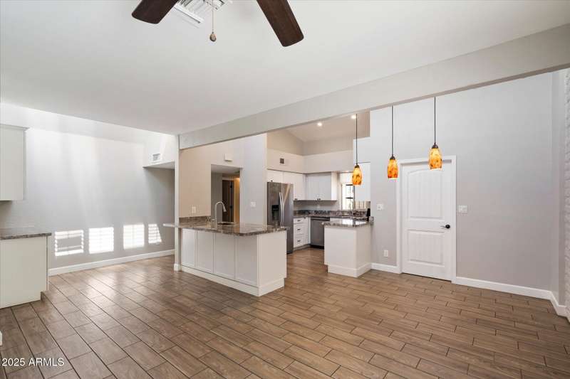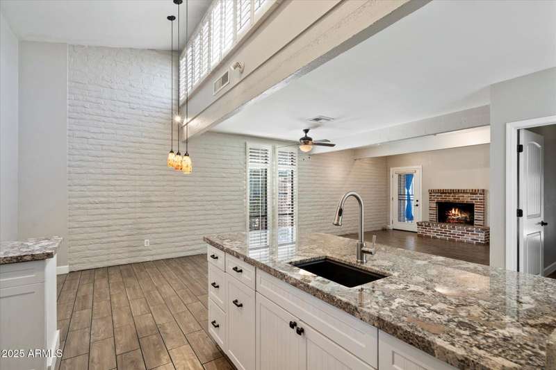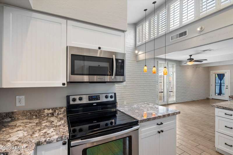 Don't miss this beautifully updated 3-bedroom, 2-bath townhome in one of North Central Phoenix's most sought-after neighborhoods. This light-filled home features an open layout designed for both comfort and entertaining. The spacious kitchen boasts vaulted ceilings, granite countertops, crisp white cabinetry with a custom spice rack, a secondary prep sink, and sleek stainless steel appliances perfect for the home chef. A large separate coffee bar with granite counter tops